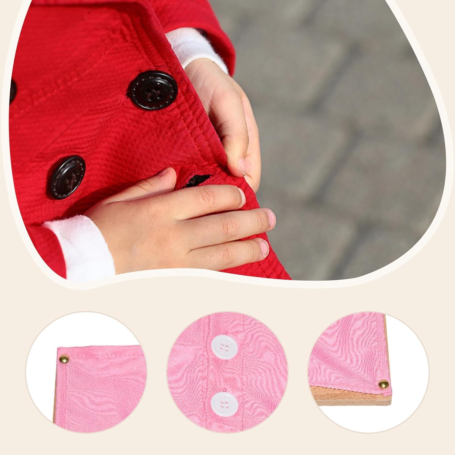 【Materiale】: questa tavola pratica per travestimenti realizzata è progettata per l'uso quotidiano a casa, all'asilo o in classe. 【Confezione pronta per l'uso e pronta per il regalo】: viene fornita completamente assemblata con una guida rapida. Spedito in una confezione ecologica: un regalo educativo ideale per compleanni o vacanze per bambini dai 3 anni in su. La robusta struttura in legno supporta la coordinazione occhio-mano, la destrezza e la sicurezza quando ci si veste. 【Strumento pratico essenziale per l'apprendimento】: il giocattolo appendiabiti misura 9,84 x 9,84 pollici, dimensione perfetta per le mani dei più piccoli, garantendo il successo per principianti e bambini con bisogni speciali. Genitori e insegnanti possono dimostrare passo dopo passo come sviluppare pazienza, concentrazione e capacità di risoluzione dei problemi.