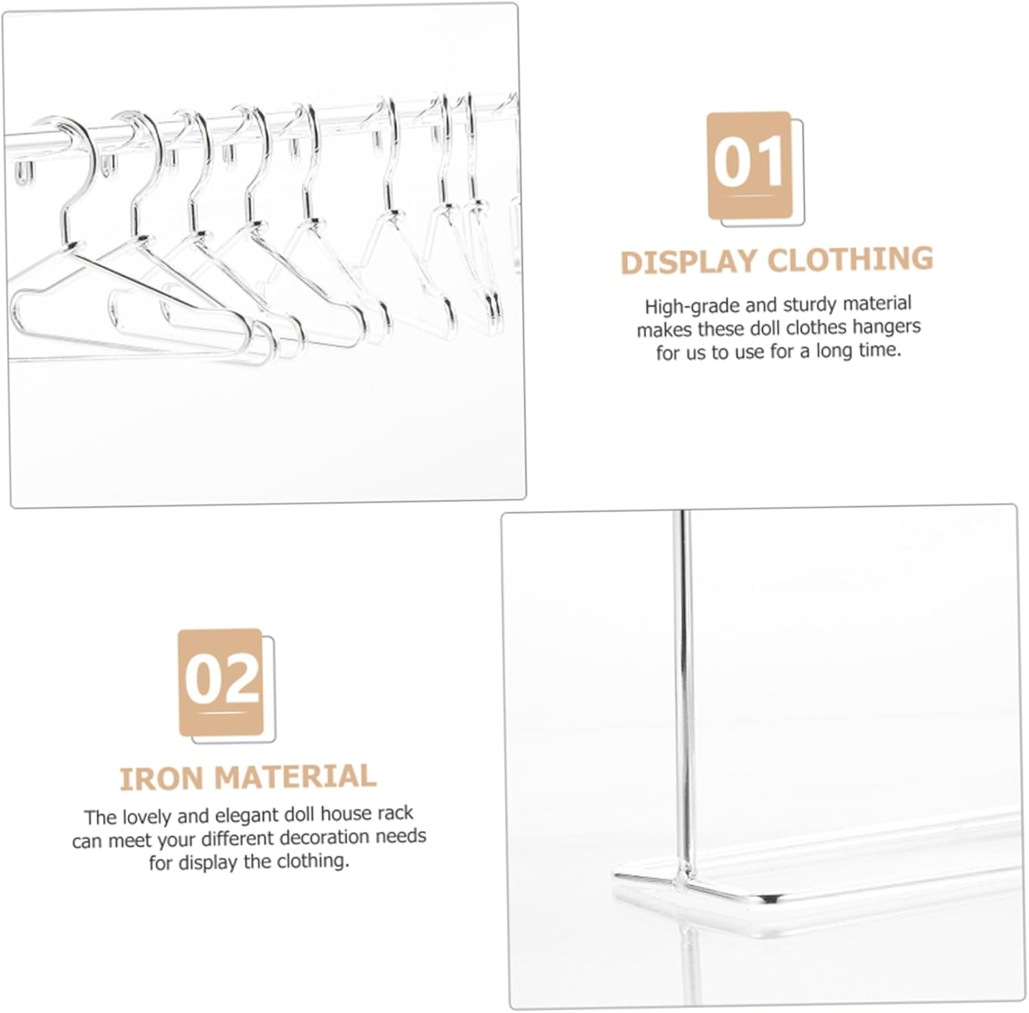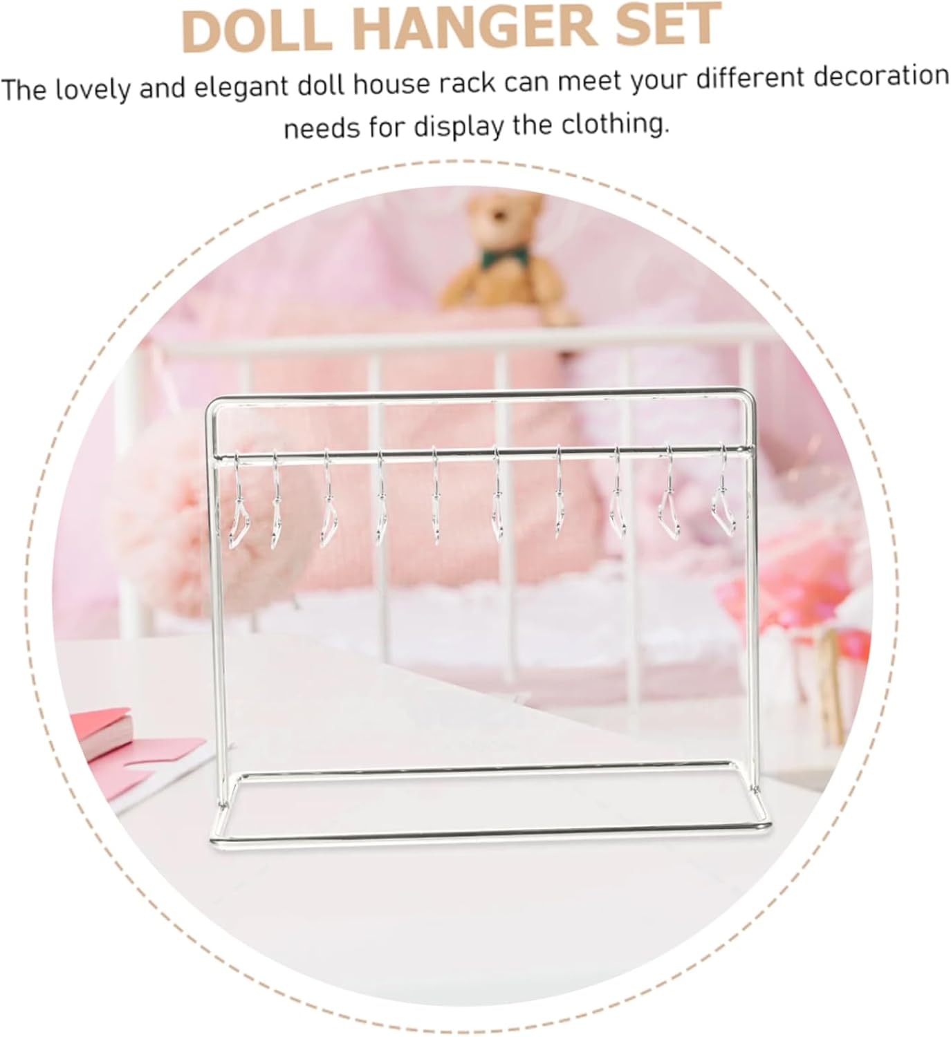 Design compatto e realistico: con una dimensione di 5,9x4,7 pollici, questo guardaroba in miniatura replica perfettamente una vera portapacchi, rendendolo una aggiunta alle case delle bambole e finta il gioco. Include mini ganci da 10 pezzi: viene fornito con impantamenti di bambole da 10 % da 1,57 pollici, permettendoti di appendere e organizzare ordinatamente abiti per bambole, rendendo il tempo di gioco più divertente e realistico. Regalo perfetto per bambini e collezionisti: un ottimo regalo per gli amanti delle bambole, questo accessorio per mobili in miniatura migliora il gioco immaginativo mantenendo piccoli abiti in perfetto ordine. Materiale di ferro robusto: realizzato in ferro di qualità, questo mini portabicchieri è forte e stabile, garantendo l'uso a lungo termine senza piegatura o rottura. Ideale per le case delle bambole e display: utilizzata per decorazioni per la casa delle bambole, oggetti di fotografia o configurazioni del guardaroba per bambole fai -da -te, questo rack di abbigliamento in ferro aggiunge fascino a qualsiasi collezione.