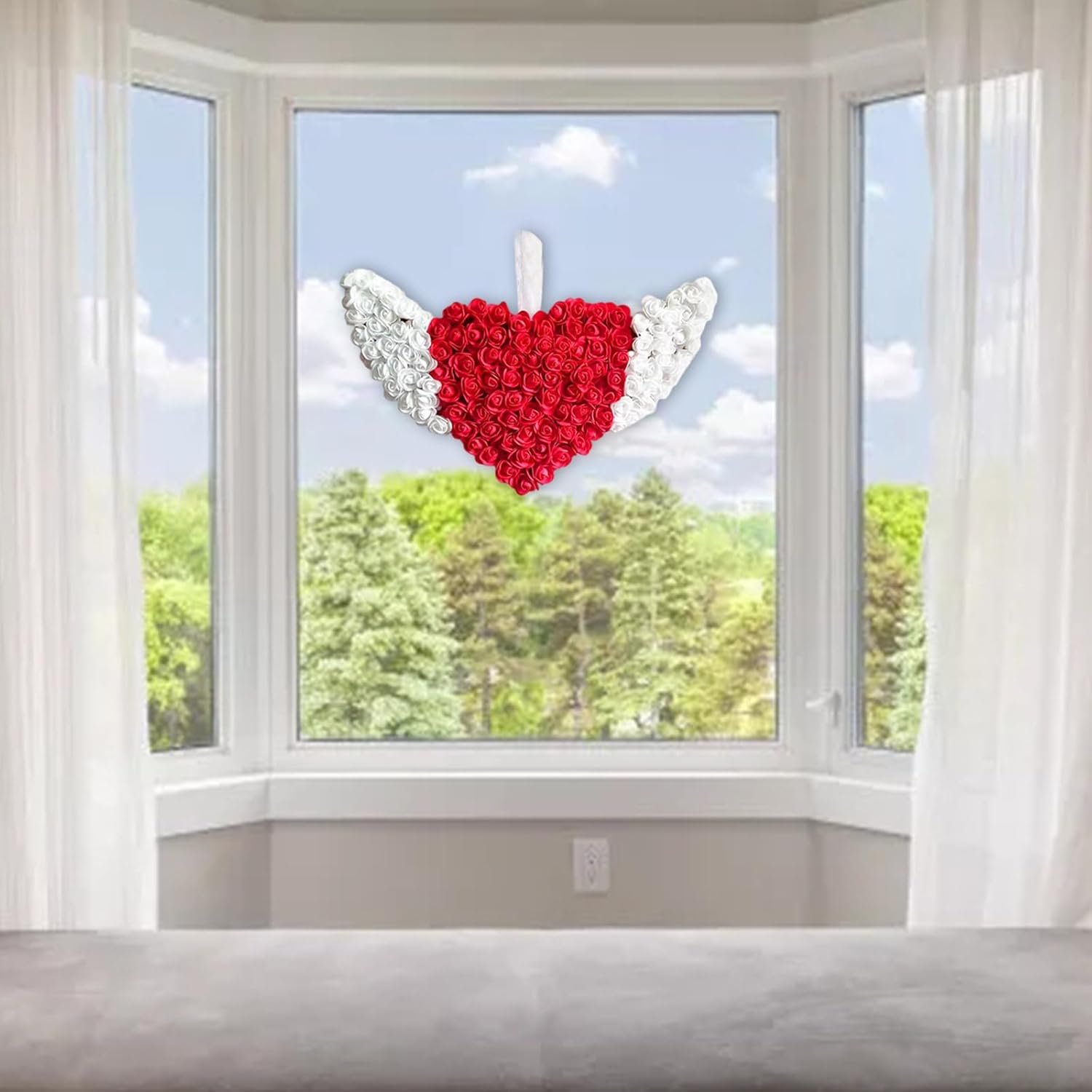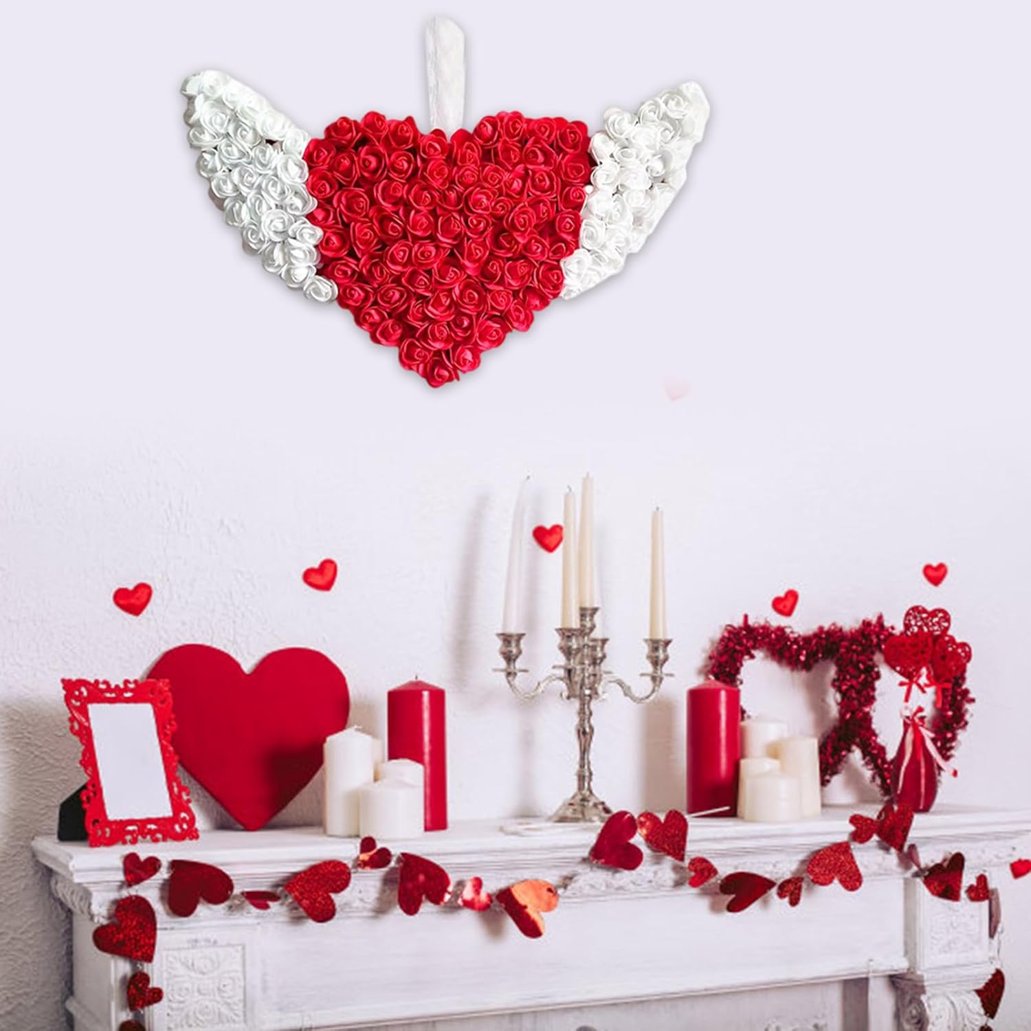 Adatto per coppie e coniugi che cercano di esprimere il loro amore per San Valentino, casalinghe che cercano di migliorare il loro spazio vitale e organizzatori di eventi che mirano a decorazioni distintive Festeggia l'amore con la nostra ghirlanda di San Valentino a forma di cuore lunare, una combinazione unica di simboli di luna e cuore che aggiunge un tocco romantico a qualsiasi ambiente, per migliorare le atmosfere di San Valentino Ogni ghirlanda è meticolosamente realizzata a mano, mostrando squisiti dettagli che riflettono un valore artistico unico, migliorando l'eleganza di qualsiasi ambiente con i suoi design sofisticati per la festa di San Valentino, decorazione della casa in salotti o camere da letto, allestimenti di nozze e occasioni di festa, elevando istantaneamente l'atmosfera Realizzata in schiuma e tessuto, questa ghirlanda garantisce una bellezza duratura senza sbiadire o deformarsi, rendendola ideale per la decorazione della casa
