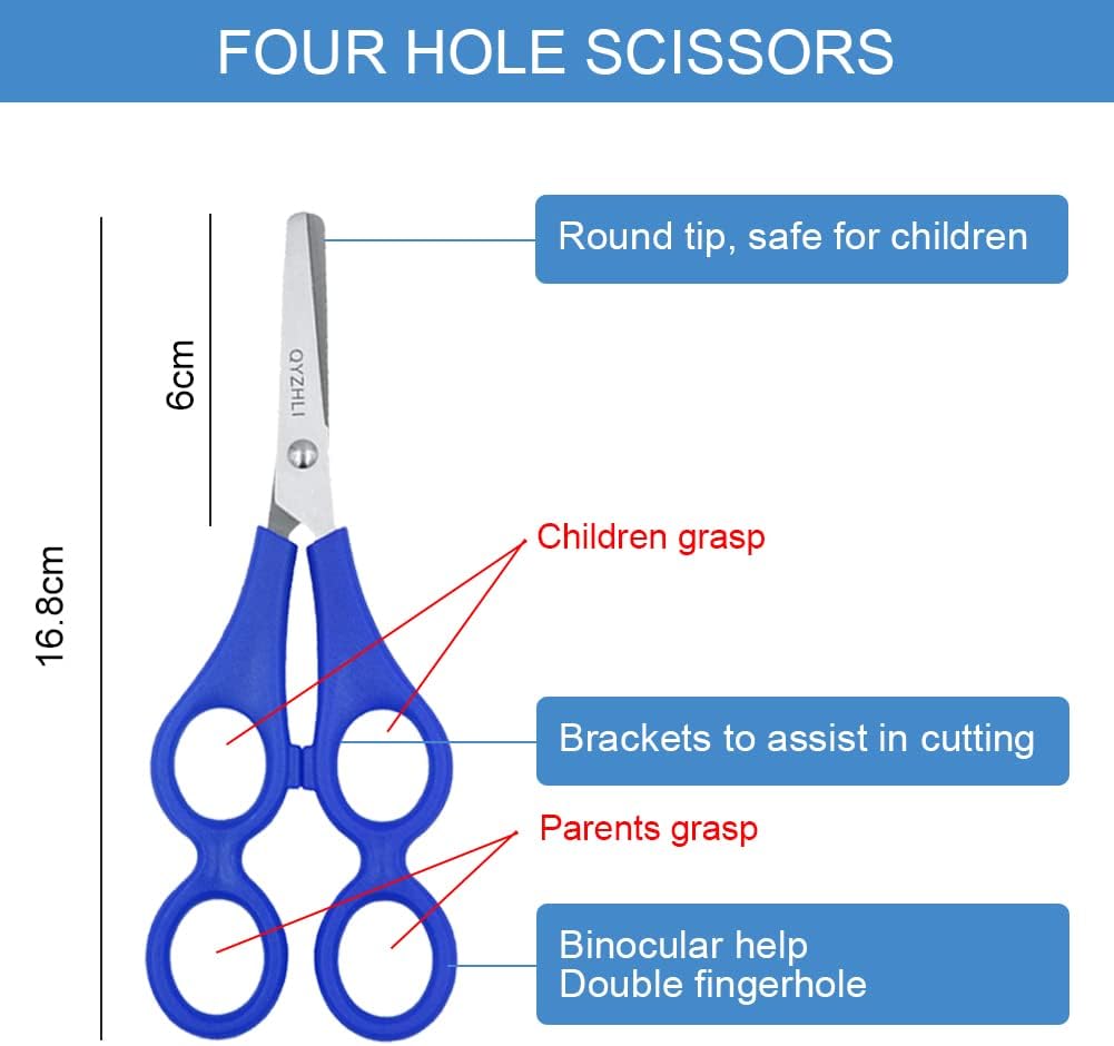 * Forbici rotonde in acciaio inossidabile * È dotato di due prese di plastica per l'apprendimento e forbici genitore-bambino, in modo che i bambini possano imparare meglio ad usare e promuovere la relazione genitore-bambino! *Lunghezza 16,8 cm * Forbici di apprendimento per bambini con doppie maniglie e lame del righello *Materiale (acciaio inossidabile)