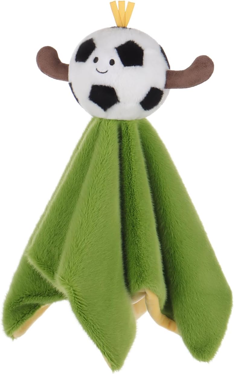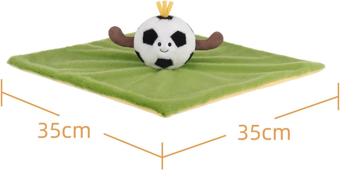 Compagno perfetto: la coperta di sicurezza da calcio è un compagno ideale per i bambini per giocare e coccolare. Misura 35 x 35 cm, il che lo rende la dimensione perfetta per il tuo bambino da afferrare, stimola lo sviluppo tattile e allena la forza della mano. Materiale premium: giocattolo fatto a mano al 100% con materiali morbidi e soffici di alta qualità. Il design speciale e l'artigianato prestano sempre attenzione alla sicurezza e alla salute. Facile da pulire: il nostro giocattolo per il panno lenitivo è realizzato in materiale lavabile, facile da pulire mettendo la coperta in lavatrice e seguendo le semplici istruzioni sull'etichetta. Adatto per l'uso dalla nascita: se hai solo bisogno di preparare un regalo per il neonato, questa sarà una buona scelta. Non è solo un simpatico compagno, ma ha anche il potere di calmare i bambini, coltivare la loro consapevolezza sensoriale. Regali speciali: questo asciugamano di alta qualità è il regalo perfetto per un neonato per la doccia o può anche essere utilizzato per decorare la cameretta dei bambini.