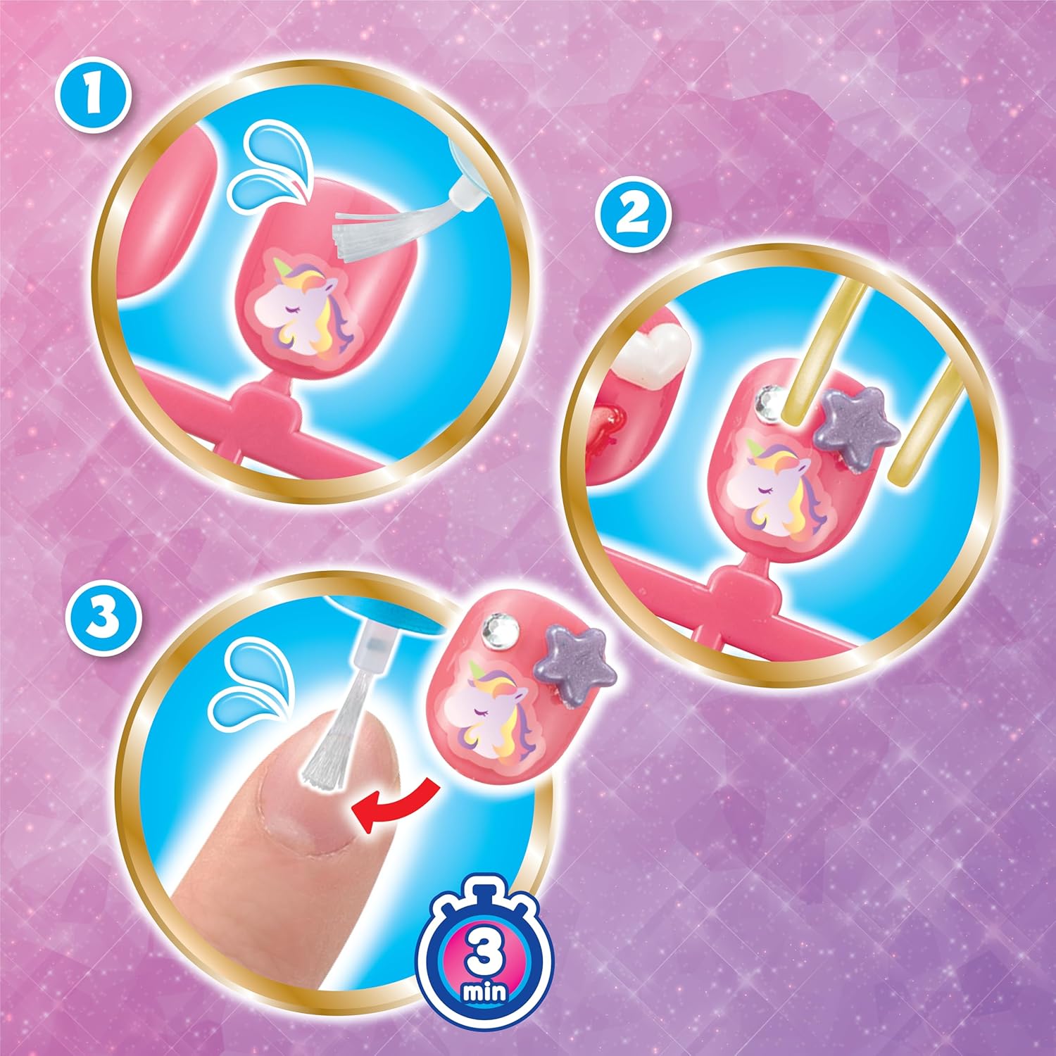 Questo set completo per la decorazione delle unghie comprende 60 unghie Aquabeads con decorazioni in 12 colori, piano di lavoro, pinzette in plastica, applicatore d'acqua con pennello, adesivi, espositore, foglio di progettazione e istruzioni. Realizza graziosi disegni per unghie con motivi come stelle, nastri, animali, frutta, fiori e molto altro ancora, che possono essere realizzati assemblando le unghie e le decorazioni Aquabeads incluse con l'acqua del rubinetto Il design delle unghie finito può essere visualizzato sull' espositore incluso Include unghie e decorazioni Aquabeads, comprese le unghie dai colori brillanti con effetto glitter. Crea più disegni con perline con le ricariche Aquabeads Nail Studio vendute separatamente Aquabeads e Aquabeads Nail Studio sono adatti a bambini dai 4 anni in su. Non adatto a bambini di età inferiore a 3 anni a causa delle piccole parti
