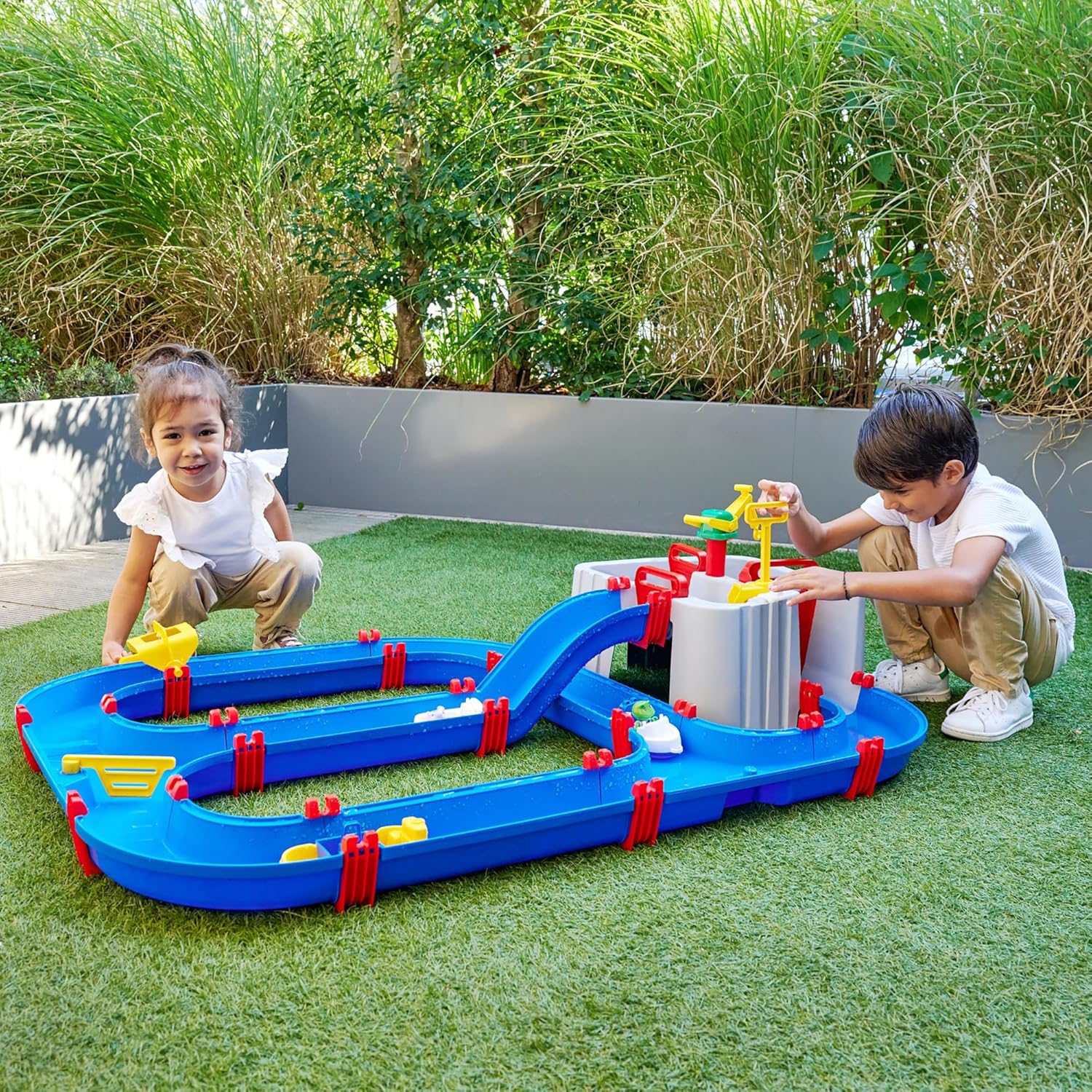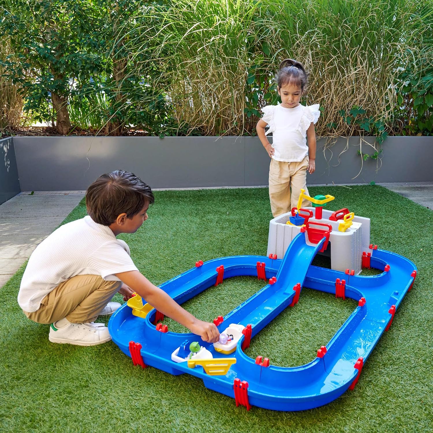 Emozionante stazione dell'acqua – La pista d'acqua del porto con dettagli giocosi come una gru, una pompa dell'acqua e resistente all'acqua e le serrature tipiche AquaPlay entusiasma ragazzi e ragazze a partire dai 3 anni. Semplice sistema a incastro: grazie alle clip di fissaggio e alle guarnizioni in gomma autoadesive, la stazione per giochi d'acqua si monta rapidamente e può essere completata da altri binari AquaPlay Giocattolo ad acqua con accessori: le barche progettate per la pista Harbour, nonché Frosch Nils e Ippopotamo Wilma offrono innumerevoli idee di gioco creative ai bambini curiosi Perfetto per esterni – Grazie all'elevata resistenza ai raggi UV e alla stabilità, il canale d'acqua in plastica è adatto per giocare in giardino, sulla terrazza o sul balcone. AquaPlay Dal 1977 – I giochi con l'affascinante elemento dell'acqua entusiasmano i bambini di Klein. I nostri giochi d'acqua sono prodotti in Germania e testati regolarmente per qualità e sicurezza.