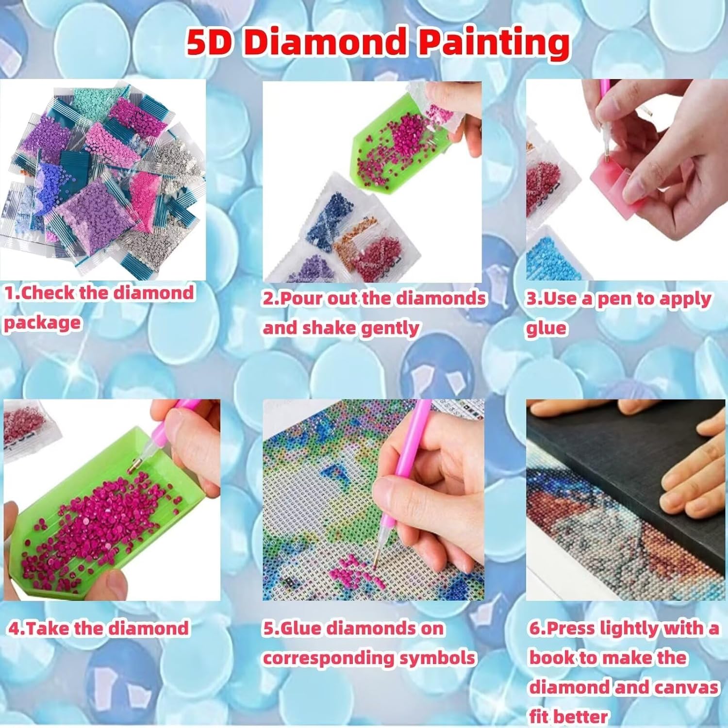 【DIAMOND PAINTING】Gli strumenti del kit Diamond painting includono tutti gli strumenti: 1 tela per pittura HD, 1 penna per diamanti, 1 pinzetta, 1 vassoio, 2 colle, sacchetti autosigillanti, punte di ricambio porose, diamanti colorati quadrati, quindi non è necessario acquistare altri strumenti per iniziare a dipingere 【EXCELLENT QUALITY】The high-viscosity canvas is waterproof and wear-resistant, and the clear symbols and numbers can effectively prevent eye fatigue. Our diamond art kits adults is equipped with 30% extra diamonds, so don't worry about not being able to complete the painting because of losing a few diamonds 【DIY DIAMOND PAINTING ADULTI】: Diamond painting kits is easy to use by adults, beginners. Diy diamond painting kits can experience a sense of achievement, learn to reduce stress, emotional adjustment, enhance your hands-on ability, self-confidence and perseverance cultivate patience and Keep you and enjoy family time your kids away from electronic products 【HOME DECOR】: You get a piece of artwork when you're done with it,and simply hung it onto the wall,it will make your room and your world more beautiful. Diamond painting are also unique gifts for family, friends and colleagues during various festivals such as New Year, Christmas, Halloween, etc 【DIAMOND PAINTING KIT SERVICE】If you have any problems, such as missing diamonds or tools, please contact us by email immediately, we will solve the problem for you as soon as possible, Thank you for your visit and wish you a happy life
