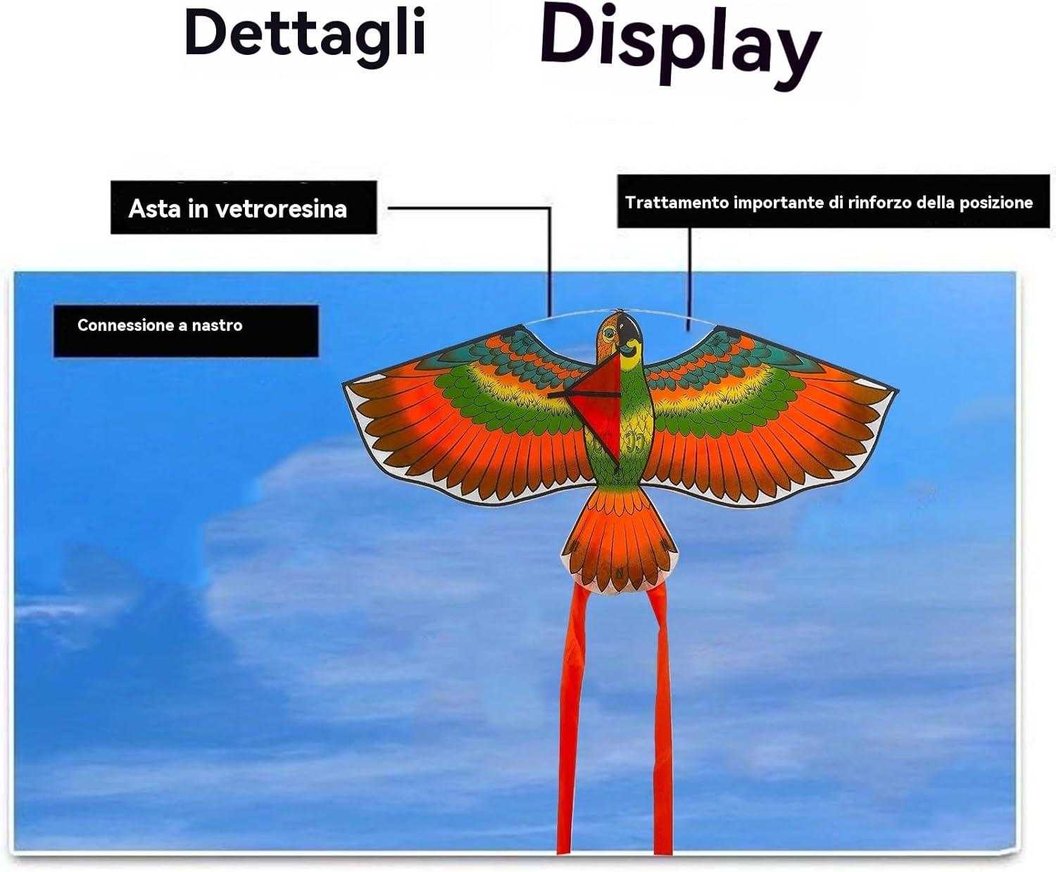 Semplice gioia all'aria aperta: realizzato con materiali leggeri e design aerodinamico, questo aquilone è facile da far volare per tutte le età, generando momenti di felicità con leggeri e migliorando senza sforzo le esperienze all'aria aperta. Struttura affidabile: combinando un tessuto di qualità con un in fibra di vetro resistente, questo aquilone garantisce prestazioni di volo stabili, riducendo le possibilità di ribaltamento o caduta anche con imprevedibili. Goditi ore di divertimento all'aria aperta grazie al suo design accurato e alla sua comprovata durata. Comfort di viaggio: appositamente progettato per vari ambienti come parchi e spiagge, questo aquilone è realizzato in materiale resistente all'abrasione per un uso duraturo. Si piega ordinatamente per un facile trasporto e stoccaggio, mantenendo una buona stabilità in volo. Una scelta ideale per gli appassionati di outdoor che amano esplorare luoghi diversi con la propria attrezzatura. Montaggio semplificato: Grazie al collegamento rapido delle linee e al montaggio senza attrezzi, questo kite garantisce un'installazione diretta e accessibile. Il design intuitivo lo rende facile da usare per tutti, rendendo ogni sessione di volo piacevole e senza problemi. Ideale per goderti appieno le tue attività all'aria aperta. Rafforzamento del genitore-figlio: design ergonomico che garantisce una presa comoda e antiscivolo per un controllo sicuro 'aquilone durante le attività all'aperto, migliorando le interazioni genitore-figlio grazie alla reattività equilibrata della coda