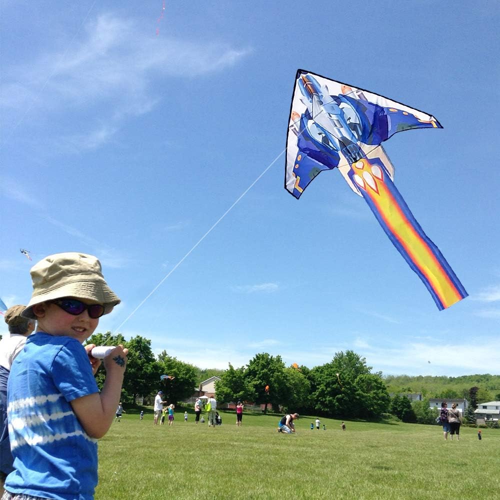 Design fantascientifico adatto agli amanti dei draghi di tutte le età. Ispirato agli anime, questo design futuristico presenta un'accattivante coda di fuoco per effetti visivi sorprendenti e maggiore stabilità. Il suo telaio triangolare garantisce una manovrabilità senza sforzo e lo rende particolarmente adatto ai principianti per chi è nuovo al deltaplano. Ideale per i bambini che scoprono gli aquiloni, offre anche un divertimento immenso per i volantini adulti esperti. Un'esperienza di volo incomparabile. La struttura ottimizzata del telaio, le semplici istruzioni per l'uso e la struttura ridotta dell'asta da kite rendono il montaggio un gioco da ragazzi. La linea dell'aquilone da 300 piedi inclusa collega l'aquilone tramite un connettore una volta assemblato. L'aquilone vola meglio con una velocità del vento compresa tra 5 e 20 mph. Se il vento è forza 3 o superiore, non è necessario correre: basta lasciare andare le mani e l'aquilone decollerà. Facile da installare, più divertente: l'aquilone è preassemblato con barre laterali caricate a molla che si bloccano in posizione con una leggera trazione. Grazie alle dettagliate istruzioni di montaggio, il kite è pronto in un minuto, lasciandoti più tempo per goderti la gioia del volo. Materiali migliorati e lavorazione esperta garantiscono la qualità del kite. Crediamo fermamente che gli aquiloni non dovrebbero mai essere usa e getta. Il tessuto in nylon 210T offre una durata eccezionale ed è resistente agli strappi anche in caso di vento forte. La stampa a trasferimento termico garantisce colori vivaci e duraturi. Inoltre, ogni aquilone viene sottoposto a controllo di qualità e ispezione degli accessori prima dell'imballaggio per garantire un'esperienza ottimale. Compatto e portatile. L'aquilone triangolare misura 60 x 30 pollici e presenta un palo centrale pieghevole che riduce la lunghezza dello zaino a soli 17 pollici. Può essere facilmente infilato in uno zaino o in una valigia, rendendolo il compagno perfetto per le vacanze al mare e i viaggi in famiglia. Metti via il tuo laptop e telefono: è ora di divertirsi all'aria aperta! Cosa stai aspettando?