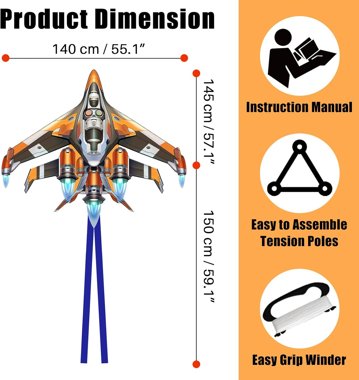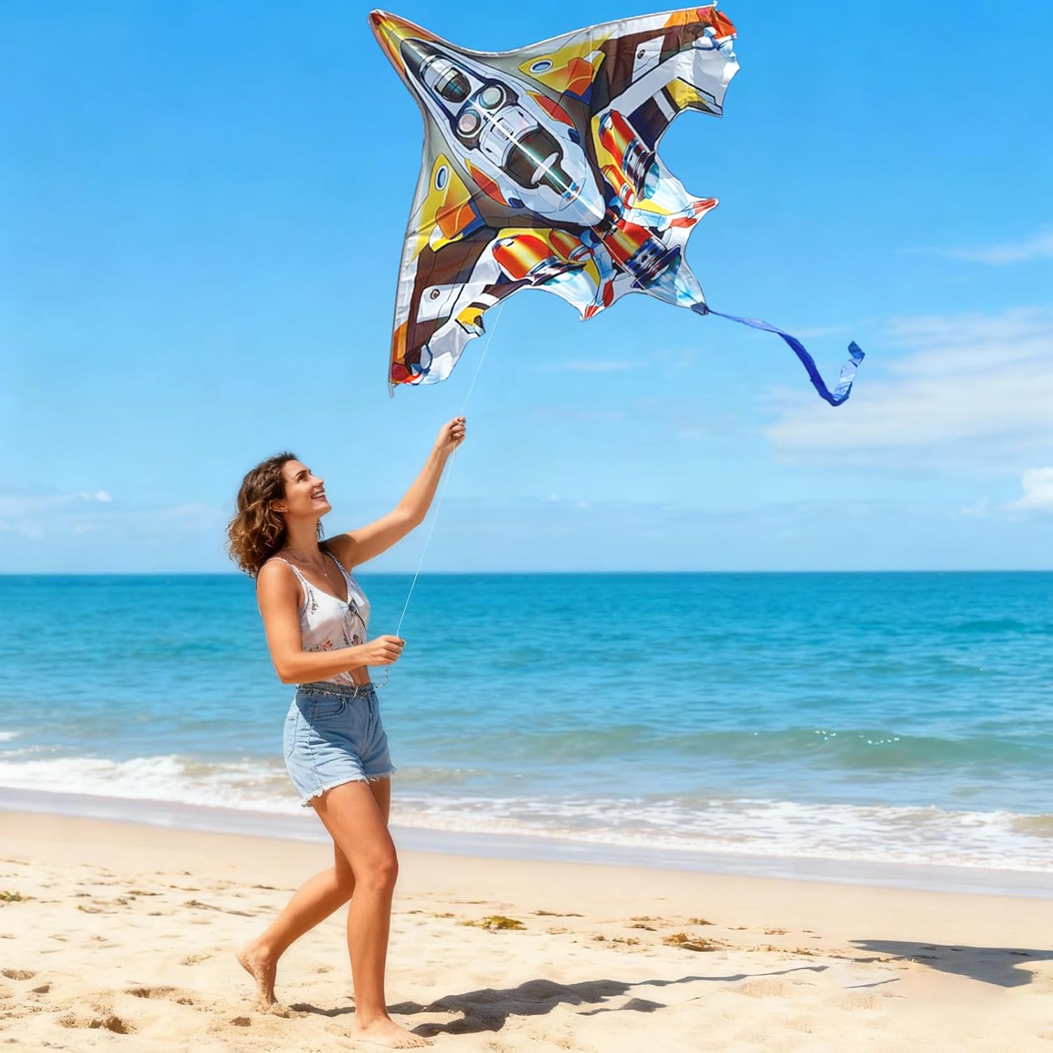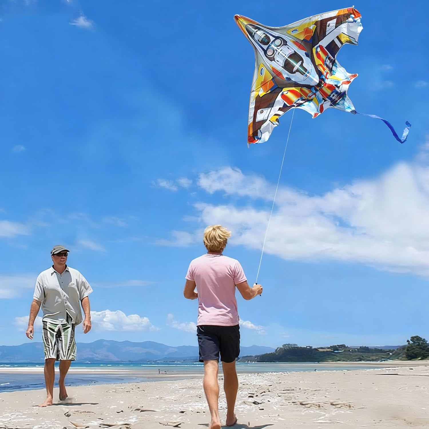 Aggiornamento dell'aquilone pieghevole: realizzato in tessuto di poliestere resistente agli strappi, il nostro aquilone da aereo si piega facilmente nella sua borsa per il trasporto. Le aste in fibra di vetro leggere, robuste e flessibili garantiscono un'elevata resilienza. Basta far scorrere le aste di supporto nelle tasche prefabbricate: il montaggio rapido garantisce divertimento senza problemi. Grazie al suo peso ridotto è il compagno ideale in viaggio, sia in spiaggia, al parco o in viaggio. Divertimento senza fine: far volare gli aquiloni non solo promuove la salute fisica, ma solleva anche il tuo umore. Migliora la coordinazione, la forma fisica, il pensiero creativo e la concentrazione nei bambini: una combinazione perfetta di gioco e sviluppo! Il grande aquilone è ideale per attività all'aperto come gite in spiaggia o visite al parco ed è anche un ottimo regalo per bambini e amici. Cartoon Airplane Design: l'aquilone a linea singola delizia gli appassionati di aerei di tutte le età e riunisce tutta la famiglia. I colori vivaci e il design elegante assicurano che l'aquilone gigante si stacchi sicuramente nel cielo. Per bambini e adulti – principianti o anche professionisti – questo aquilone è adatto a tutti. È il partner perfetto per viaggi spontanei, vacanze o avventure nel fine settimana. Un ottimo modo per godersi l'aria fresca insieme e approfondire i rapporti reciproci. Facile da far volare: il kite da spiaggia vola in modo affidabile con una velocità del vento di 8-32 km/h (5-20 mph). Due lunghi traini aumentano l'equilibrio e garantiscono un volo stabile, anche con forti raffiche di vento.