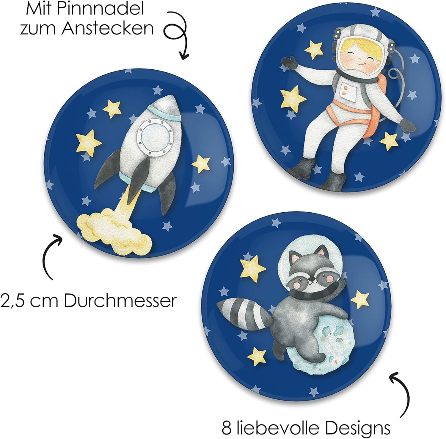 REGALO PERFETTO: Che si tratti di un compleanno, dell'inizio della scuola o di Natale, i bottoni sono molto trendy e sono ideali come regalo per ogni occasione. PROGETTATO CON AMORE: i bottoni sono disegnati con motivi dolci e giocosi per i bambini. Sono disponibili diversi modelli: ce n'è per tutti i gusti. BORSE DA FESTA PER I COMPLEANNI DEI BAMBINI: ideali come regalo per gli ospiti, così sarai sicuro di rendere felici i bambini. Il set contiene otto bottoni: puoi aggiungere un bottone a ogni regalo come sacchetto per le feste. IDEA DI DECORAZIONE: I bottoni hanno un diametro di 25 mm e con la spilla puoi attaccarli ad astucci, zaini, giacche, magliette, cappelli o borse, ad esempio, per abbellirli. VASTA SELEZIONE: Molti altri motivi e altri prodotti legati a compleanni, celebrazioni e idee regalo possono essere trovati nel nostro negozio di aquiloni di carta!
