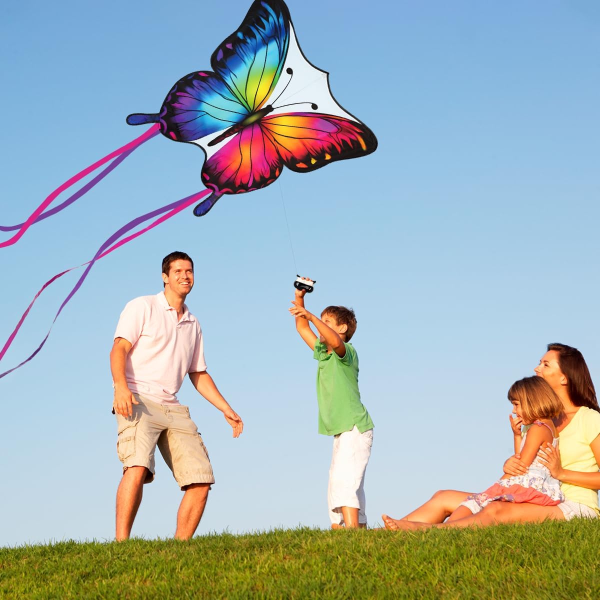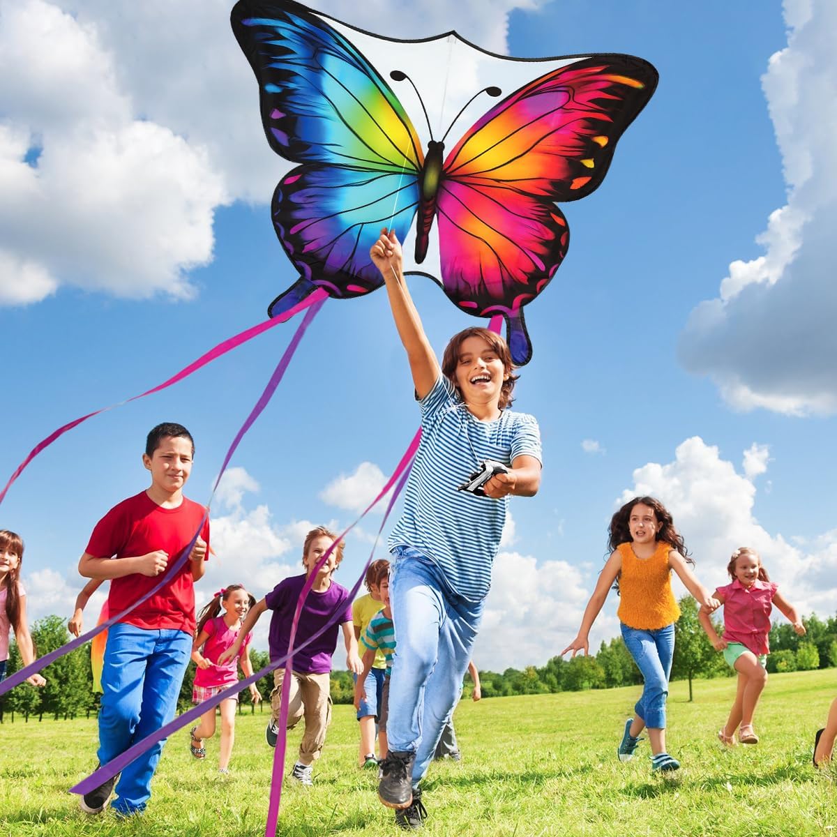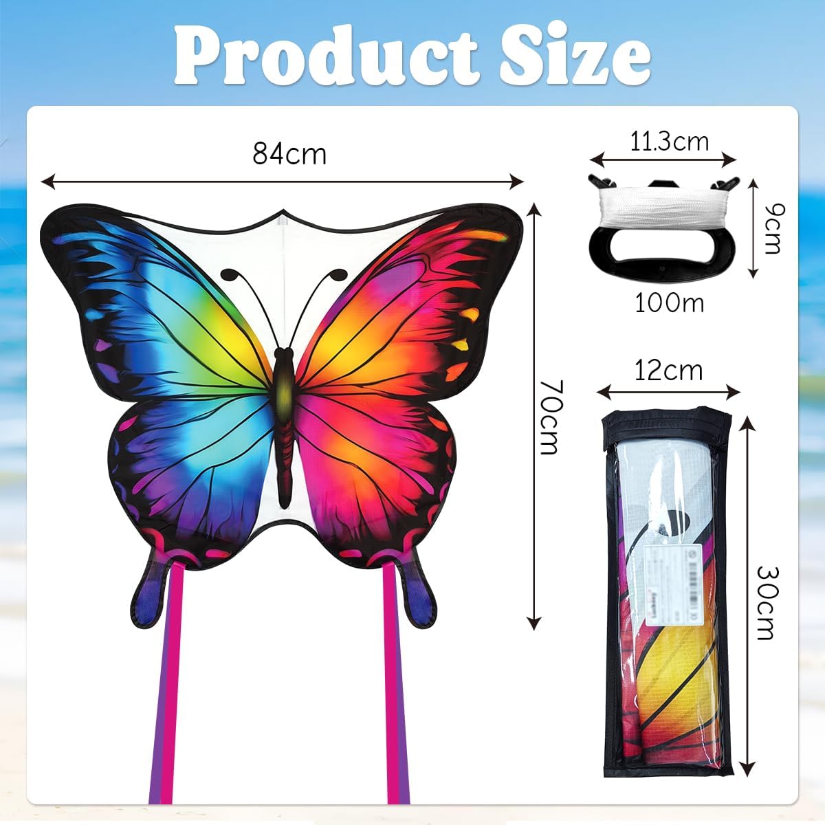 AQUILONE BAMBINI/ADULTI: Il set di aquiloni contiene un colorato e bellissimo aquilone a farfalla (84*70 cm), una corda da aquilone lunga 100 metri, una maniglia ergonomica e una pratica custodia. VIBRANTE DESIGN A FARFALLA: questo aquilone è stato originariamente progettato da Luckeey. Il colorato motivo a farfalla lo rende vivace e particolarmente accattivante, rendendo il volo dell'aquilone ancora più divertente. Perfetto per la fresca primavera e le soleggiate giornate autunnali! MATERIALI DI ALTA QUALITÀ: Realizzato in tessuto di poliestere resistente agli strappi e aste flessibili in fibra di vetro, il nostro aquilone può resistere a forti venti pur rimanendo abbastanza leggero per voli fluidi. I materiali di alta qualità garantiscono una lunga durata e innumerevoli avventure di volo! FACILE DA ASSEMBLARE E VOLARE: questa farfalla da aquilone ha una struttura semplice e stabile ed è facile da montare semplicemente collegando alcuni pali dell'aquilone. Che si tratti di una leggera brezza o di un forte vento, puoi facilmente volare in cielo. Adatto a principianti e adulti. PERFETTO PER LE ATTIVITÀ ALL'APERTO: al parco, in spiaggia o su un grande prato, questo aquilone a farfalla garantisce divertimento ed esercizio nella natura. Goditi preziosi momenti in famiglia e crea ricordi indimenticabili facendo volare insieme gli aquiloni.