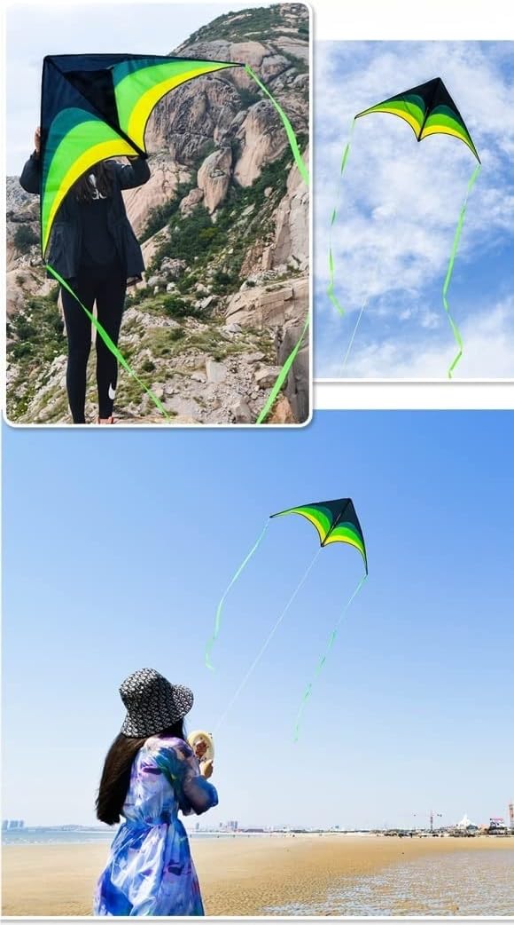 Un grande piano per creare un'estate indimenticabile; Stupisci innumerevoli generazioni con Fun Beach Kites e costruisci ricordi inestimabili con gli aquiloni; mantenerli attivi e sani all'esterno. Aquilone della prateria triangolare: l'aquilone ha una struttura stabile e può volare facilmente. Nei parchi e nelle spiagge basta puntare il vento e si può volare. Facile da volare: colori vivaci e forme vivaci sono le caratteristiche principali e i principianti possono volare molto bene. Diventa attivo: il volo con l'aquilone è senza dubbio un'attività ricreativa. Dalla spiaggia al parco, puoi utilizzarlo in qualsiasi spazio all'aperto per trascorrere del tempo di qualità con la tua famiglia. Ore di divertimento all'aria aperta: incoraggia i tuoi bambini a rilassarsi e godersi l'aria fresca con una classica esperienza di deltaplano che porterà gioia e risate.
