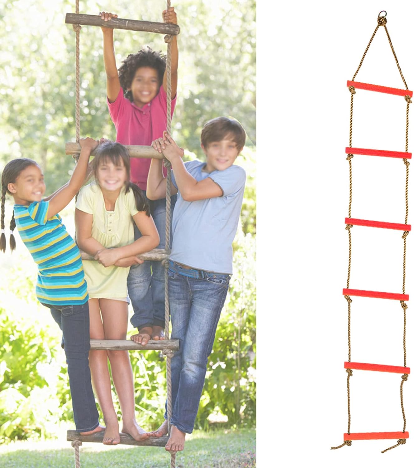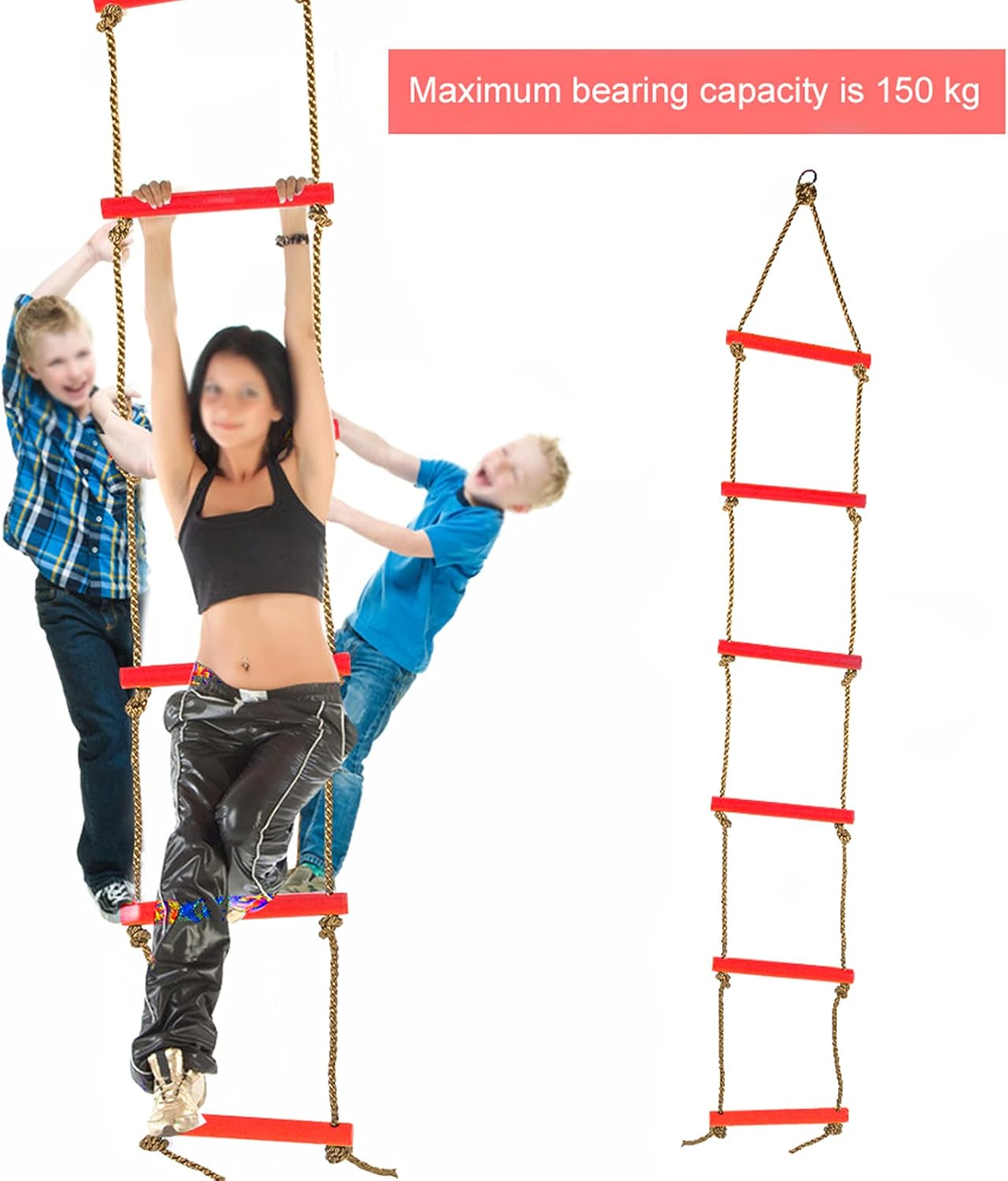 Materiali durevoli: realizzato in robusta corda di plastica e nylon, questa scala è costruita per durare, offrendo una resistenza all'usura eccezionale e una struttura forte che può supportare fino a 150 kg per avventure di arrampicata senza preoccupazioni Design dinamico : Con un design a sei sezioni, questa scala si adatta sia a distanza che in altezza, fornendo a vostre esperienze diverse che i loro sensi e mantengono il loro arrampicata divertente e coinvolgente Sviluppo fisico: incoraggiare l'attività fisica poiché questa scala di arrampicata migliora la coordinazione, la flessibilità e la reattività dei tuoi figli, aiutandoli a costruire forza e fiducia con ogni salita Altezza regolabile: personalizzare facilmente l'altezza della scala regolando le corde per abbinare l'altezza dei tuoi figli, rendendo questa scala conveniente e accessibile per i bambini di età Uso versatile: per varie impostazioni tra cui Box/Cover, negozi di abbigliamento per bambini, strutture per il fitness e filiali all'aperto, questa scala è facile da installare e per il gioco versatile