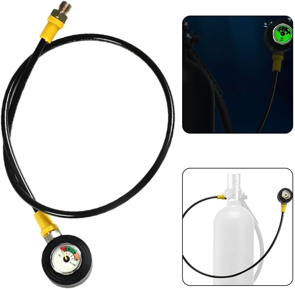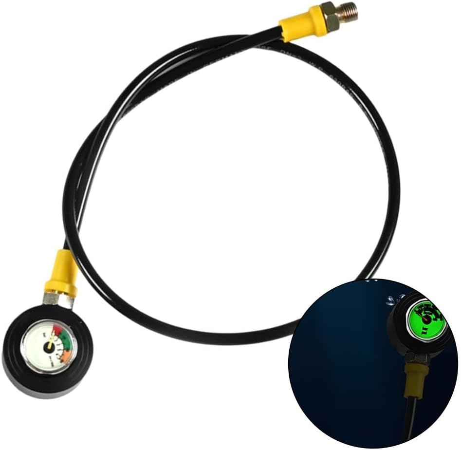 Manometro per immersioni subacquee: questo manometro luminoso fornisce letture chiare in condizioni di scarsa illuminazione sott'acqua, rispondendo alla necessità di una pressione affidabile durante le immersioni subacquee per garantire la sicurezza dei subacquei e guasti alle attrezzature Quadrante luminoso e per una facile lettura: dotato di un quadrante luminoso e luminoso, questo misuratore consente controlli della pressione senza sforzo a qualsiasi profondità, con una struttura in acciaio inossidabile durevole che resiste e prolunga la sua durata in ambienti di acqua salata Alta resistenza alla trazione e resistenza: costruito con materiali ad alta resistenza alla trazione, questo manometro resiste a forti pressioni subacquee e agli elementi corrosivi, offrendo prestazioni di lunga durata per l'uso frequente delle immersioni Compatibilità filettatura M10 x 1: progettato con una filettatura M10 x 1, questo manometro si collega facilmente alle valvole standard del serbatoio ARA, fornendo una vestibilità sicura e test di pressione accurati senza il rischio di perdite o malfunzionamenti Design compatto e leggero: misura circa 61 cm di lunghezza e pesa circa 170 g, questo manometro portatile è facile da trasportare e maneggiare, rendendolo adatto per i viaggi e la conservazione in borse per attrezzi da immersione