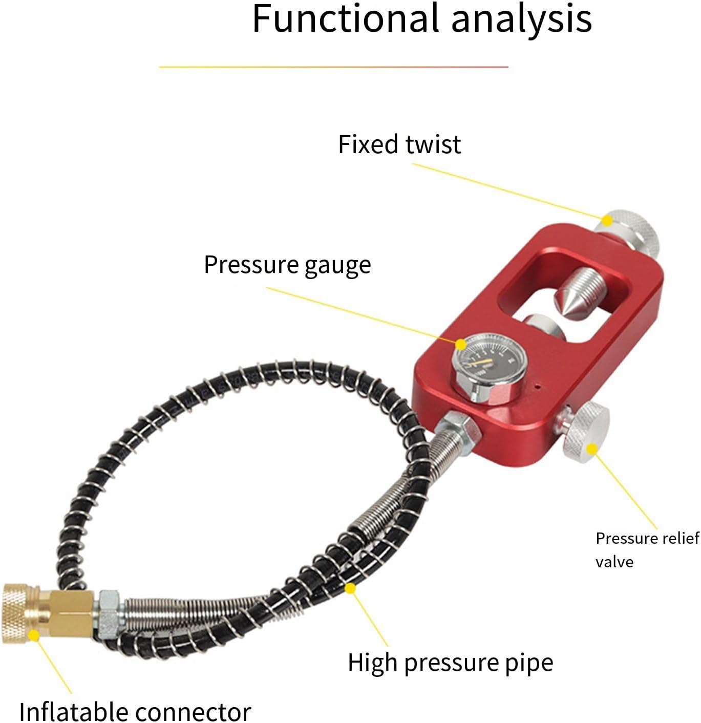 Realizzato in lega di alluminio ad alta resistenza, offrendo un equilibrio di resistenza e leggerezza. Dispone di un manometro per letture accurate della pressione durante le ricariche. Dotato di nipplo di riempimento da 8 mm/0,31 pollici si scollega rapidamente per rapidi e connessione sicura dei serbatoi. L'adattatore di ricarica subacquea vanta un design portatile, garantendo un facile processo di installazione e rimozione. Il pacchetto include: 1 adattatore di ricarica per serbatoi ARA