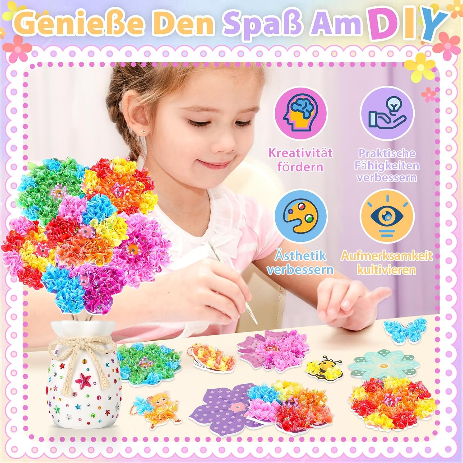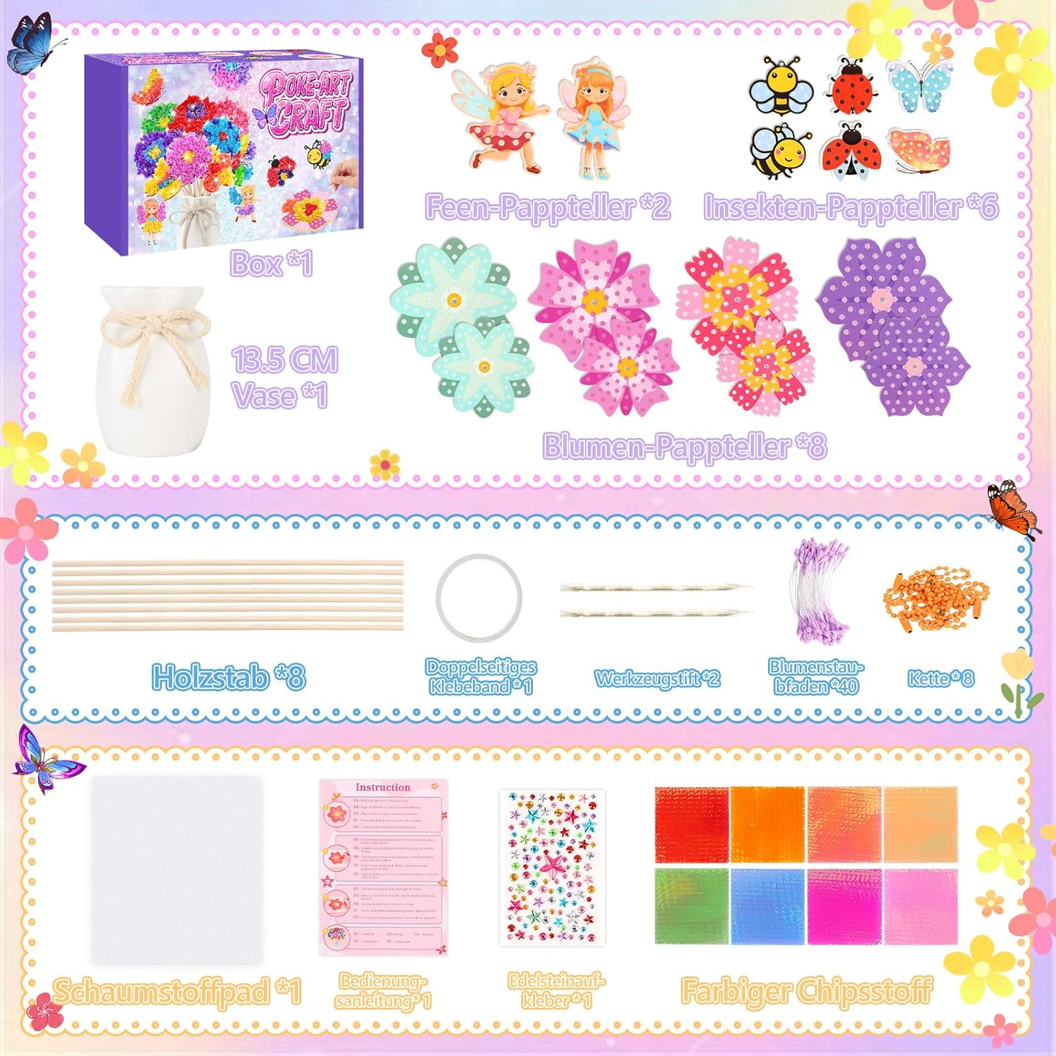 🌸🌸Set Creativo Fai Da Te per Bambini: Il kit fai da te Fabric Poke Flower viene fornito in una graziosa scatola che contiene 1 vaso, 8 fiori, 2 farfalle, 2 fate, 2 api e 2 insetti, oltre a istruzioni facili da seguire e numerosi accessori: tutto ciò che serve. Perfetto per i lavori manuali con bambine di 4, 5, 6, 7, 8, 9 e 10 anni, stimola la creatività dei bambini 🌸🌸Divertimento per I Bambini - Facile da Realizzare: I bambini devono solo inserire i pezzi di stoffa nei petali per formare dei graziosi fiori e poi fissarli su bastoncini di legno per creare bellissimi bouquet. I bouquet finiti possono essere messi in vasi per decorare camere e soggiorni o regalati ad amici e genitori. 🌸🌸Liberate La Creatività: Occuparsi di questo set per creare fiori distoglie l'attenzione del vostro bambino dai dispositivi digitali e la concentra su attività pratiche, stimolando la sua immaginazione, creatività e motricità fine. Potete anche completare insieme al vostro bambino un'opera d'arte fatta a mano e godervi il piacere di creare insieme alla famiglia. 🌸🌸Create I Vostri Fiori - Decorate Ogni Angolo: Questo set fai da te per creare composizioni floreali in tessuto è il regalo perfetto per i bambini dai 4 anni in su! Questi splendidi fiori fai da te possono essere disposti in un grazioso bouquet o messi in un vaso per decorare gli ambienti e dare loro un tocco personale, senza mai appassire. Potete decorare tutto ciò che desiderate, come chiavi, zaini, piante in vaso e decorazioni per l'albero di Natale o persino intere scene. 🌸🌸Regalo Ideale per Le Bambine: Questi fiori fai da te sono un regalo ideale per bambine di 5, 6, 7, 8, 9 e 10 anni, in particolare come regalo creativo perfetto per il compleanno, Halloween o Natale. Per le bambine creative che amano l'arte, questo giocattolo è la scelta perfetta per creare preziosi ricordi d'infanzia.
