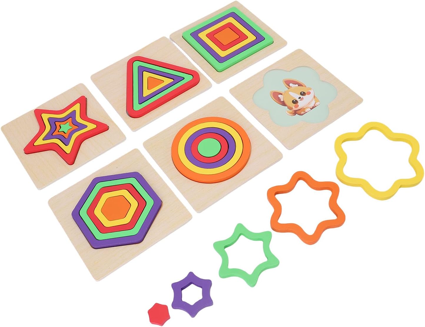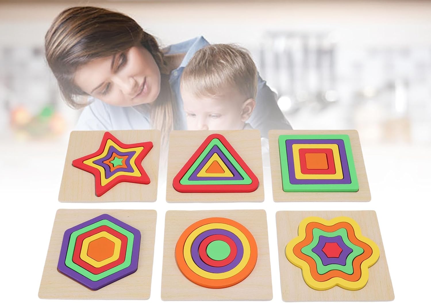[MATERIALI SICURI E ROBUSTI] - Realizzati in tiglio, questi puzzle a forma geometrica sono sicuri e durevoli per un divertimento senza fine. [APPRENDIMENTO DELLA FORMA E DEL COLORE] - Aiuta la percezione del colore e il riconoscimento della forma, stimolando le giovani menti in modi vibranti e coinvolgenti. [MIGLIORA LE ABILITÀ MOTORIE] - Migliora la coordinazione e la destrezza con i pezzi del puzzle 3D che sfidano i bambini ad abbinare e abbinare le forme. [MIGLIORARE LA RISOLUZIONE DEI PROBLEMI] - Coltiva le capacità di risoluzione dei problemi attraverso un divertente gioco di abbinamento, aiutando i bambini a imparare attraverso il gioco. [Giocattolo multiuso] - Versatile per la casa e la scuola materna, incoraggia l'interazione genitore-figlio e le esperienze di apprendimento collaborativo.