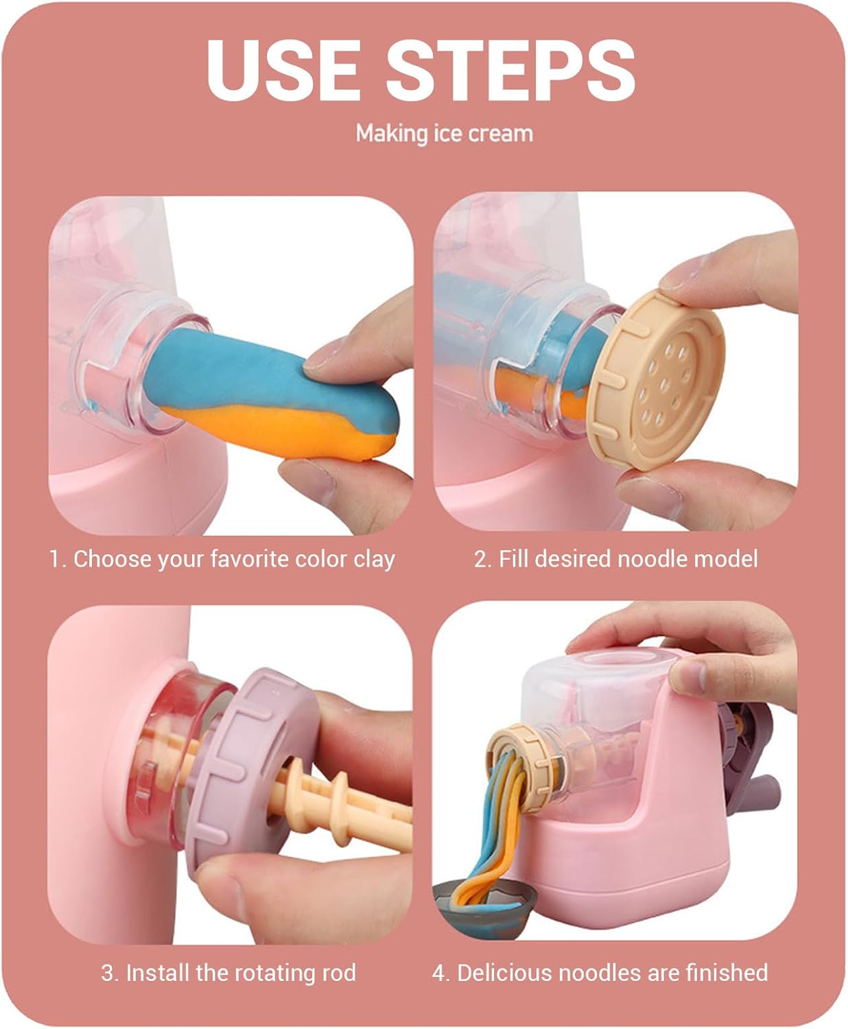 [ISPIRA LA CREATIVITÀ] Scatena l'immaginazione di tuo figlio con questo innovativo set per la produzione di noodle. Incoraggia il gioco per lo sviluppo cognitivo. [MESS- CLAY] Argilla leggera e morbida, facile da modellare e che riduce al minimo l'appiccicosità, per le manine dei più piccoli a casa o all'asilo. [FUN NOODLE MAKER] I bambini possono creare varie forme di noodles, migliorando le capacità motorie e aggiungendo entusiasmo al tempo di gioco. [MODELLI VERSATILI] Include una varietà di modelli creatività infinita: animali, fiori, edifici e altro ancora. [MATERIALI SICURI] Realizzati con materiali sicuri per il gioco preoccupante, ideali per Box/Cover e istituti scolastici.