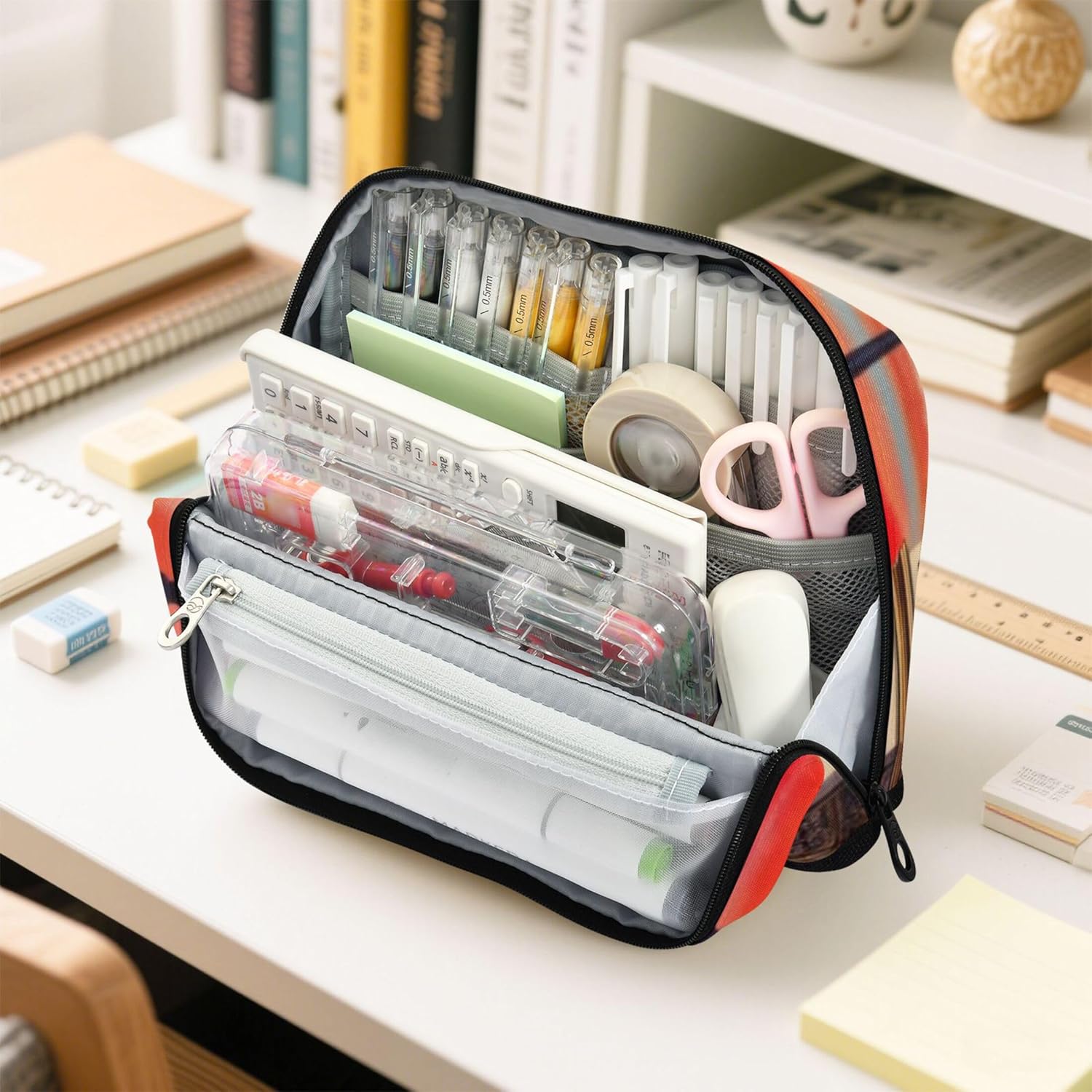Rimane in posizione verticale per un facile accesso: l'organizer si piega in una base stabile utilizzando pulsanti magnetici, trasformandosi in un portapenne verticale che mantiene i tuoi oggetti essenziali visibili e raggiungibili Finitura in nylon di alta qualità: l'astuccio con cerniera combina una consistenza morbida con un'elevata durata, resistendo all'usura preservando un aspetto lucido nel tempo Interni multiscomparti: con una spaziosa tasca principale, una tasca in rete con cerniera e una tasca extra, gli accessori per matite mantengono penne, appunti e strumenti ordinatamente ordinati e a portata di mano Ideale per varie impostazioni: utilizza un astuccio carino per riporre oggetti artistici, oggetti personali o strumenti da ufficio, ideale per studenti, pendolari, artisti o chiunque sia in viaggio Opzione regalo personalizzata: disponibile in stampe vivaci con testo personalizzabile o design fotografico, astuccio carino è un regalo unico per bambini, artisti o viaggiatori