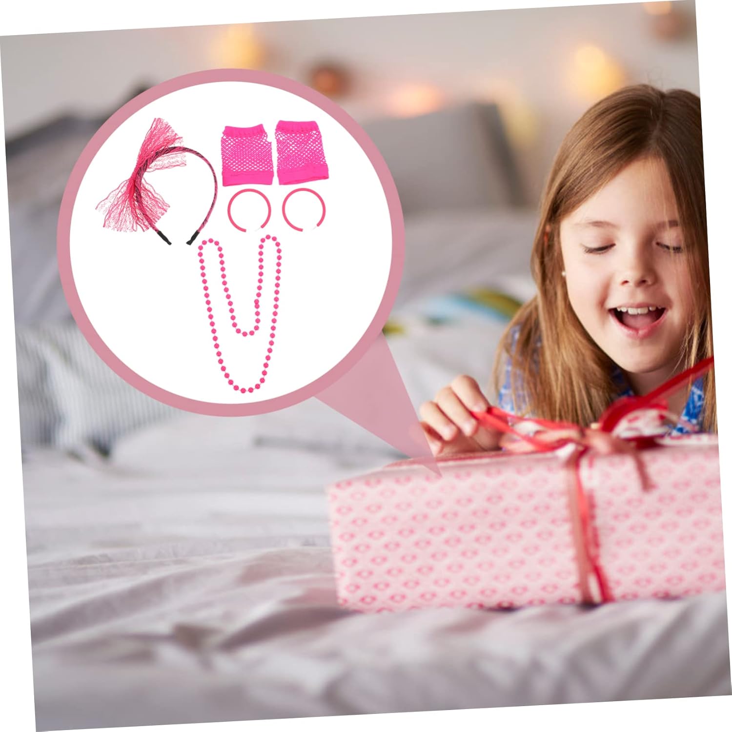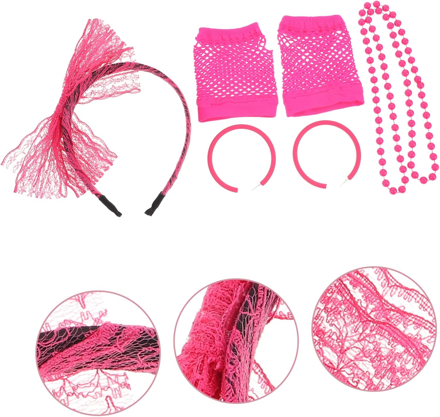 lista dei 1 x set di accessori per feste caratteristiche - mostra la tua bellezza durante la festa con i tuoi amici: accessori divertenti come bomboniere per una divertente ! fasce per in pizzo da donna - materiale: collana con fiocco in plastica, pizzo e raso. : gli accessori completi per feste a tema ti permettono di abbellire comodamente la collana di perline. - questi costumi da festa possono creare un aspetto elegante, birichino ma allo stesso tempo innocente e farti sembrare più misterioso per il costume da festa femminile. - per feste a tema, anniversari, ecc. Kit di gioielli molto chic e particolari. - realizzati in plastica di alta qualità, pizzo e materiale satinato per guanti da donna durevoli e duraturi. descrizione della merce accessori per costumi tutti realizzati in materiale resistente, sicuro e leggero. Il design decorativo alla moda degli orecchini a fiocco è super bello, non sbiadiscono facilmente. Guanti da donna adatti per feste a tema neon, ne riceverai alcuni foto e divertenti