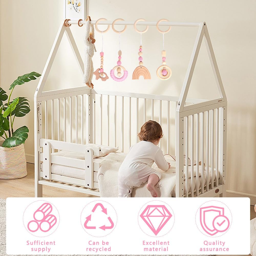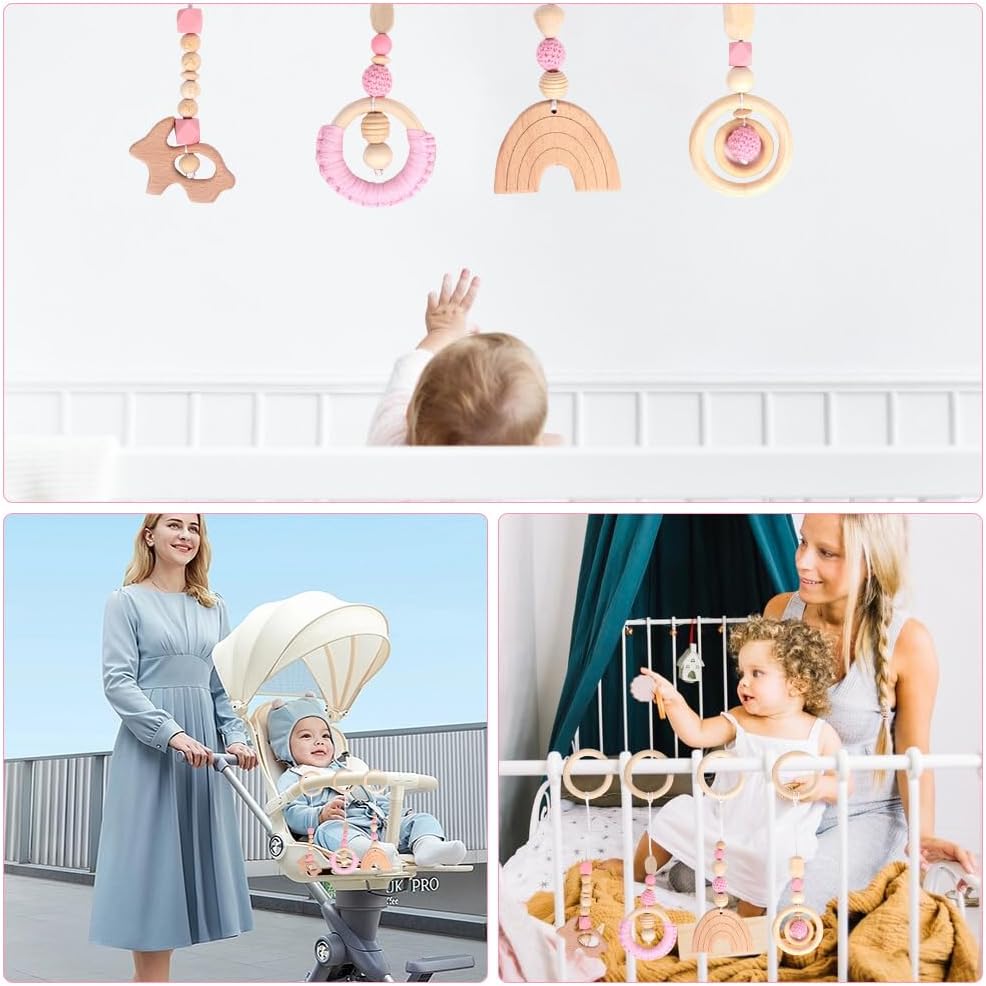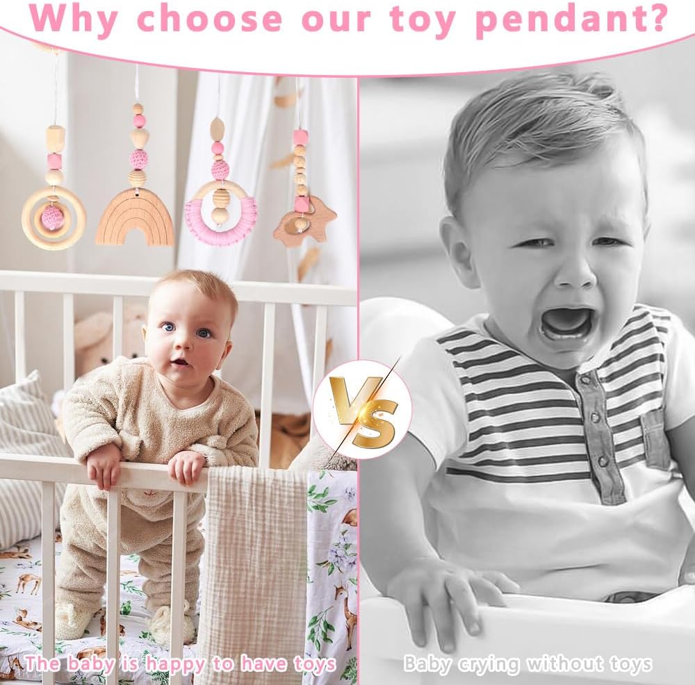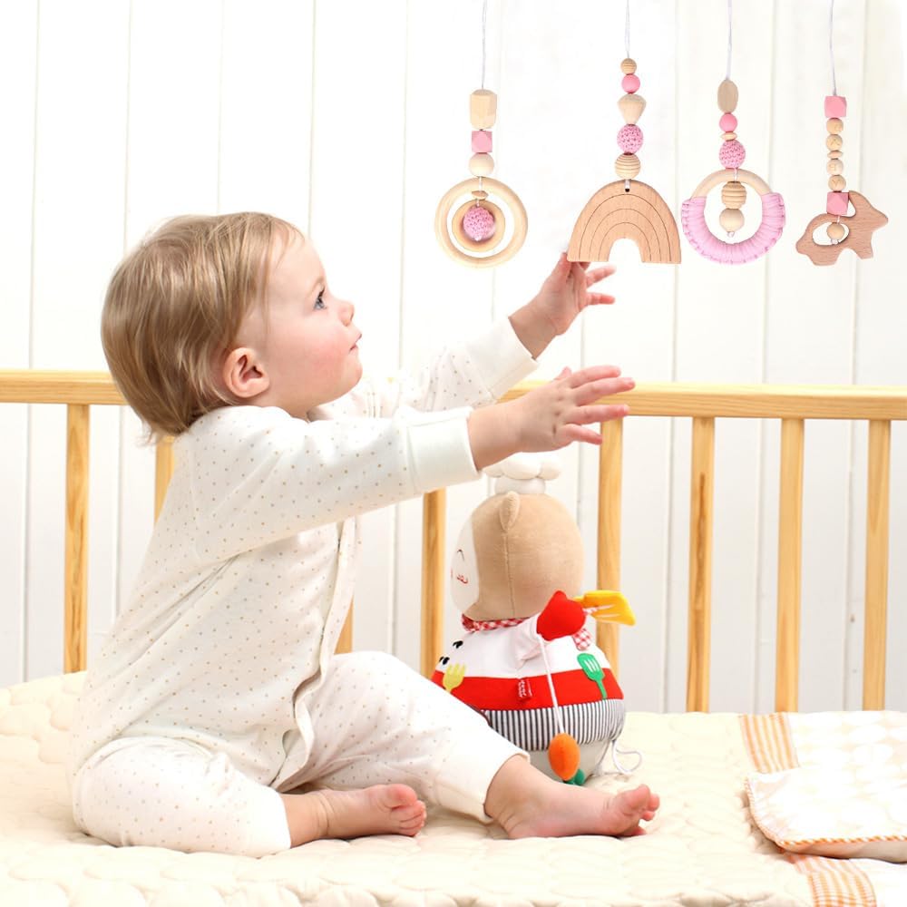 Sicuro e durevole: l'arco da gioco per bambini è realizzato in legno naturale, è lucido e liscio, con filo di cotone comodo e morbido, sicuro e inodore, ha angoli arrotondati, non si rompe e dispone di una forte chiusura. Questo ciondolo ad arco da gioco in legno è adatto per la camera di ragazzi e ragazze. Attira l'attenzione dei bambini: l'arco da gioco è composto da pony in legno e grafica irregolare, che entusiasmano sia i ragazzi che le ragazze. Risveglia la curiosità dei bambini e permette loro di scoprire il mondo. I bambini possono giocarci per distrarre la loro attenzione, sperimentare diversi tocchi e promuovere il loro sviluppo cerebrale. Versatile: l'arco da gioco può essere facilmente fissato al letto, all'auto o alla sedia a dondolo, per un maggiore divertimento e allo stesso tempo alleggerisce le mani dei genitori. Il ciondolo in legno si adatta perfettamente a qualsiasi stanza. Stimola le capacità motorie e sensoriali: il ciondolo per arco da gioco favorisce la presa delle dita dei bambini, stimola le capacità sensoriali toccando superfici lisce e irregolari, incoraggia i bambini a giocare, favorisce l'interazione con i bambini e calma le loro emozioni. Il ciondolo in legno è un giocattolo per l'educazione e l'educazione della prima infanzia. Regalo perfetto: l'arco da gioco per bambini è un regalo ideale per feste di compleanno, battesimi e baby shower e anche un regalo perfetto per la nascita per i futuri genitori. Il design unico è ideale per ragazzi e ragazze e per chiunque voglia arrivare un neonato.