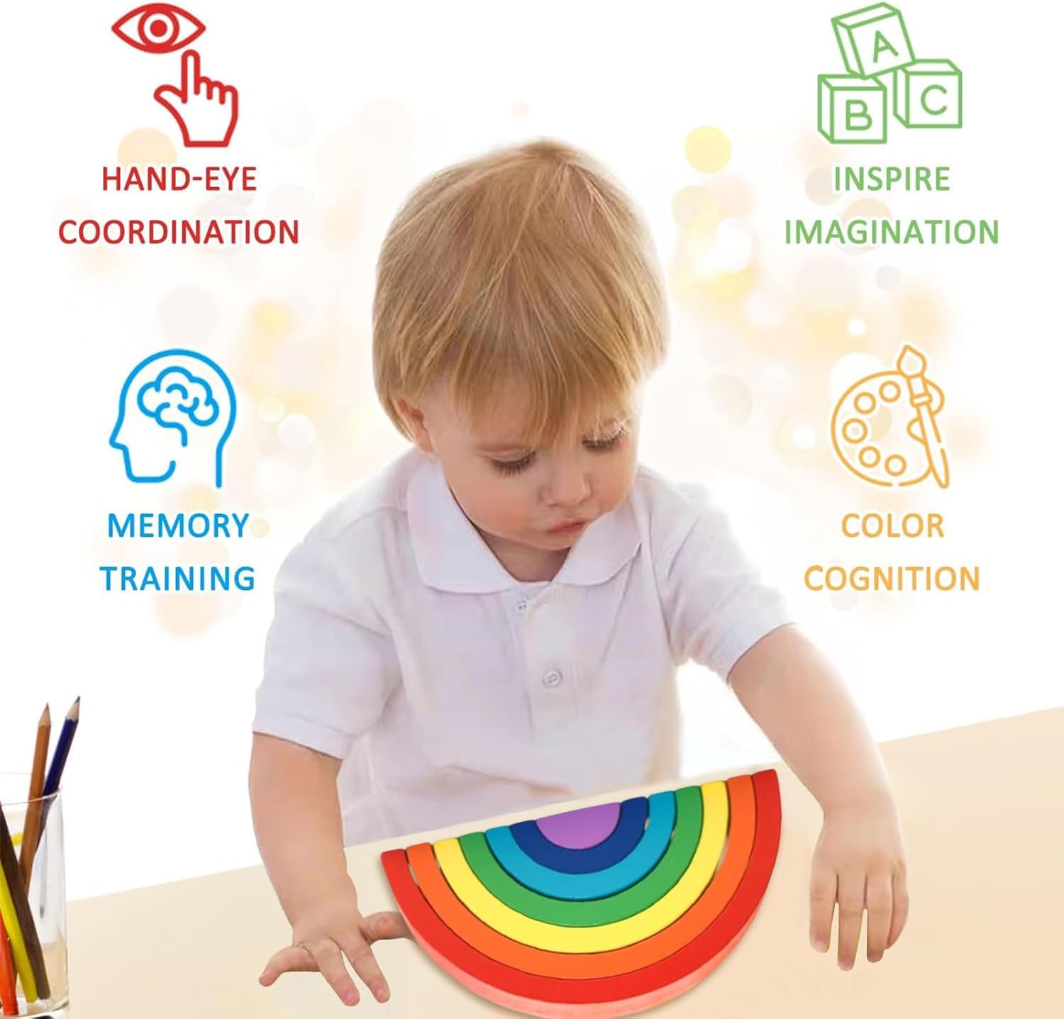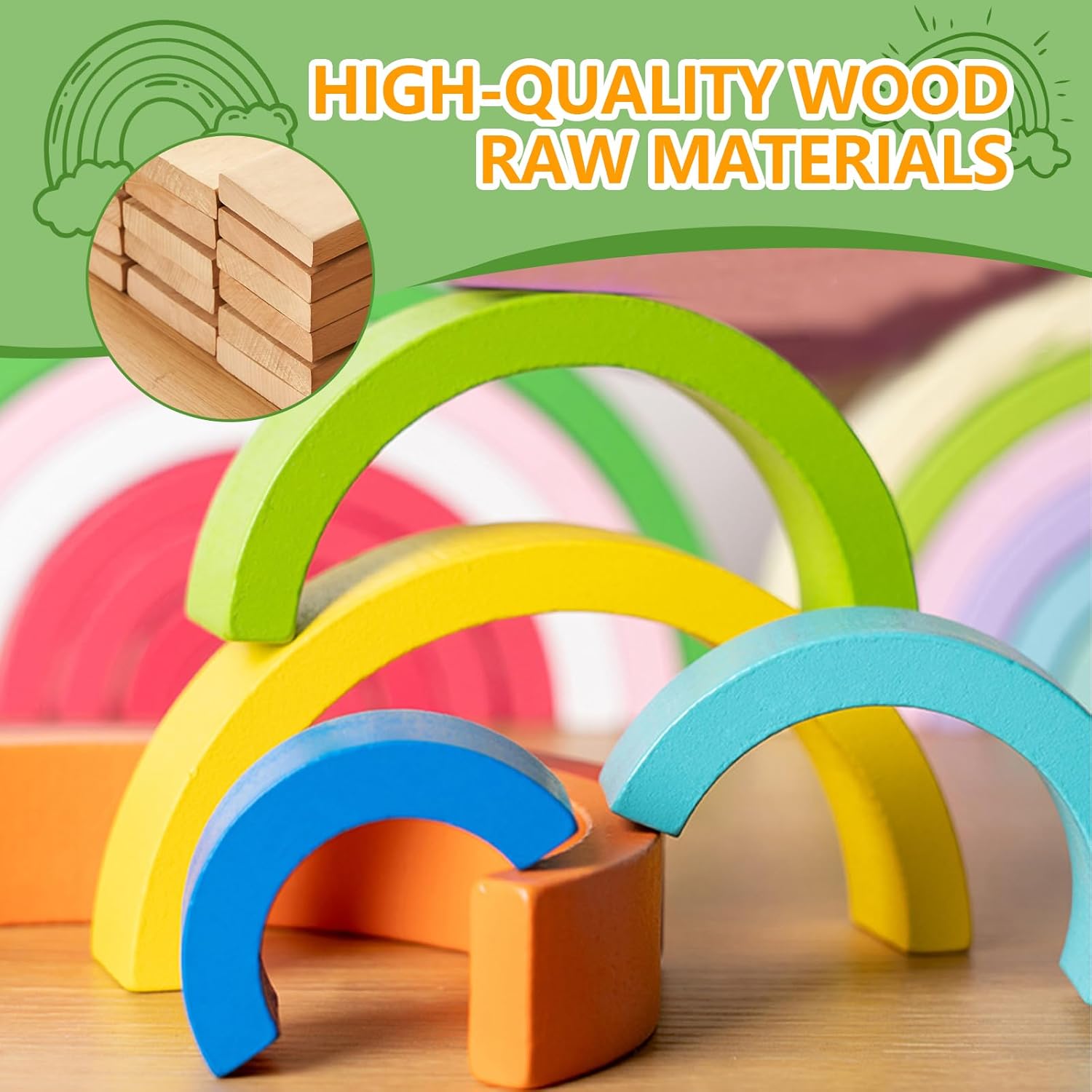 Materiale di Sicurezza Arcobaleno legno è realizzato in pannello di alta qualità e vernice ecologica a base d'acqua. È sicuro, atossico e inodore, durevole e non sbiadisce, e non danneggia la salute dei bambini. I bordi di color arcobaleno giocattolo sono stati accuratamente lucidati, lisci e privi di sbavature, resistenti e non facili da deformare, morbidi e arrotondati al tatto e proteggono sempre la pelle dei bambini Giocattoli Educativi Giochi montessori è un giocattolo educativo che contiene 7 blocchi da costruzione. I bambini possono progettare la forma secondo la loro immaginazione durante il gioco. Impilando little dutch giochi, le capacità pratiche, l'immaginazione spaziale, la creatività e la coordinazione occhio-mano dei bambini saranno efficacemente esercitate e migliorate Divertimento Educativo Giochi legno bambini 1 anno è un arco semicircolare standard con una superficie di contatto piatta. Supporta l'impilamento e la costruzione casuali e rimane sempre saldamente in posizione. Giochi legno è un morbido e moderno colore arcobaleno che protegge gli occhi. È molto adatto a bambini e bambine da 1 anno in su ed è il miglior compagno di gioco per i bambini Importanza Educativa Gioco di attività e sviluppo in legno colori pastello è un giocattolo multifunzionale che può essere utilizzato per l'insegnamento nella prima infanzia. Aiuta i bambini a riconoscere e identificare diversi edifici costruendo tunnel, case e altre forme. I colori dell'arcobaleno progettati da giochi in legno per bambini 1 anno possono anche essere utilizzati per allenare la capacità di percezione dei colori dei bambini e promuovere uno sviluppo a tutto tondo Regalo Perfetto Arco montessoriano per bambini è un giocattolo educativo adatto a tutti i bambini. Puoi giocare con i tuoi figli e trascorrere un momento caldo e felice con i genitori. Torre impilabile bambini è anche un regalo perfetto per parenti, amici, insegnanti d'asilo, ecc