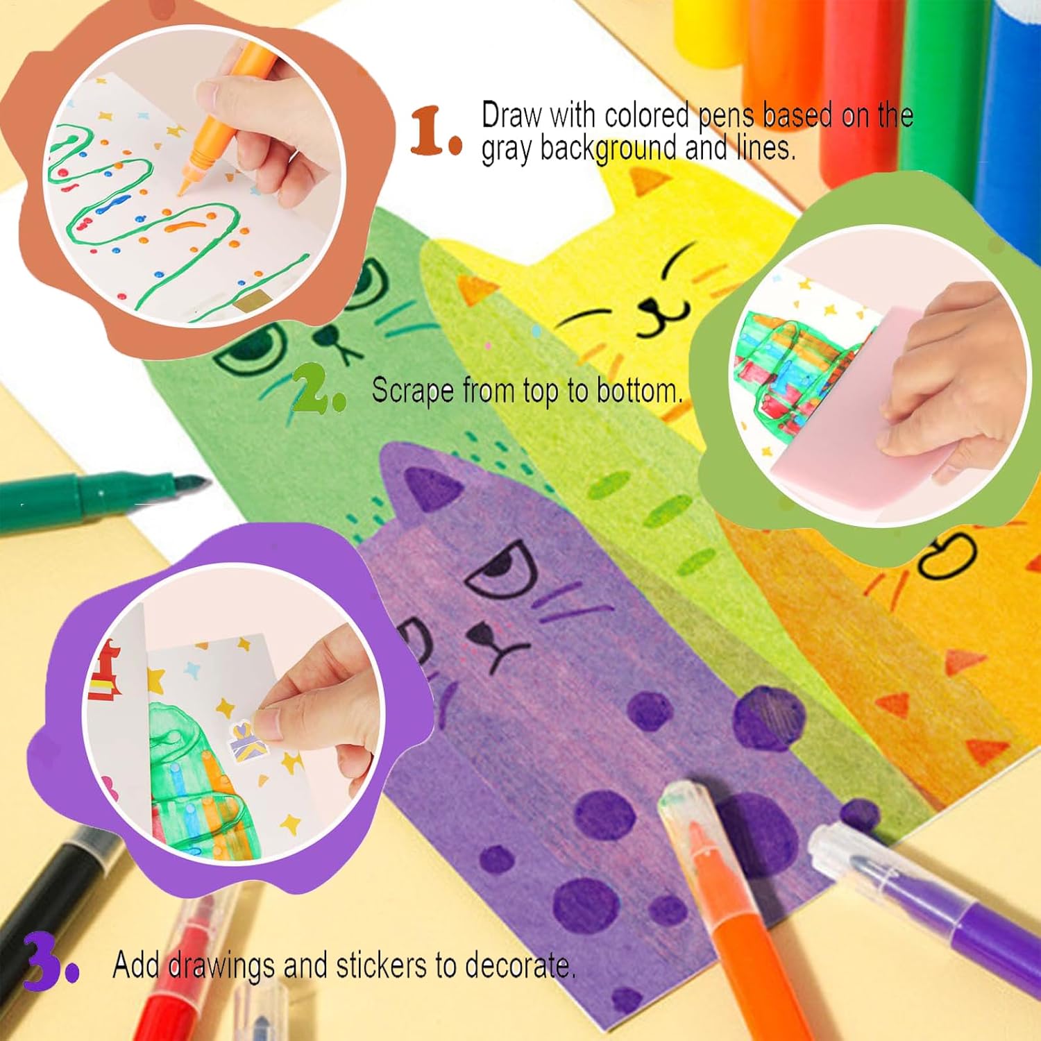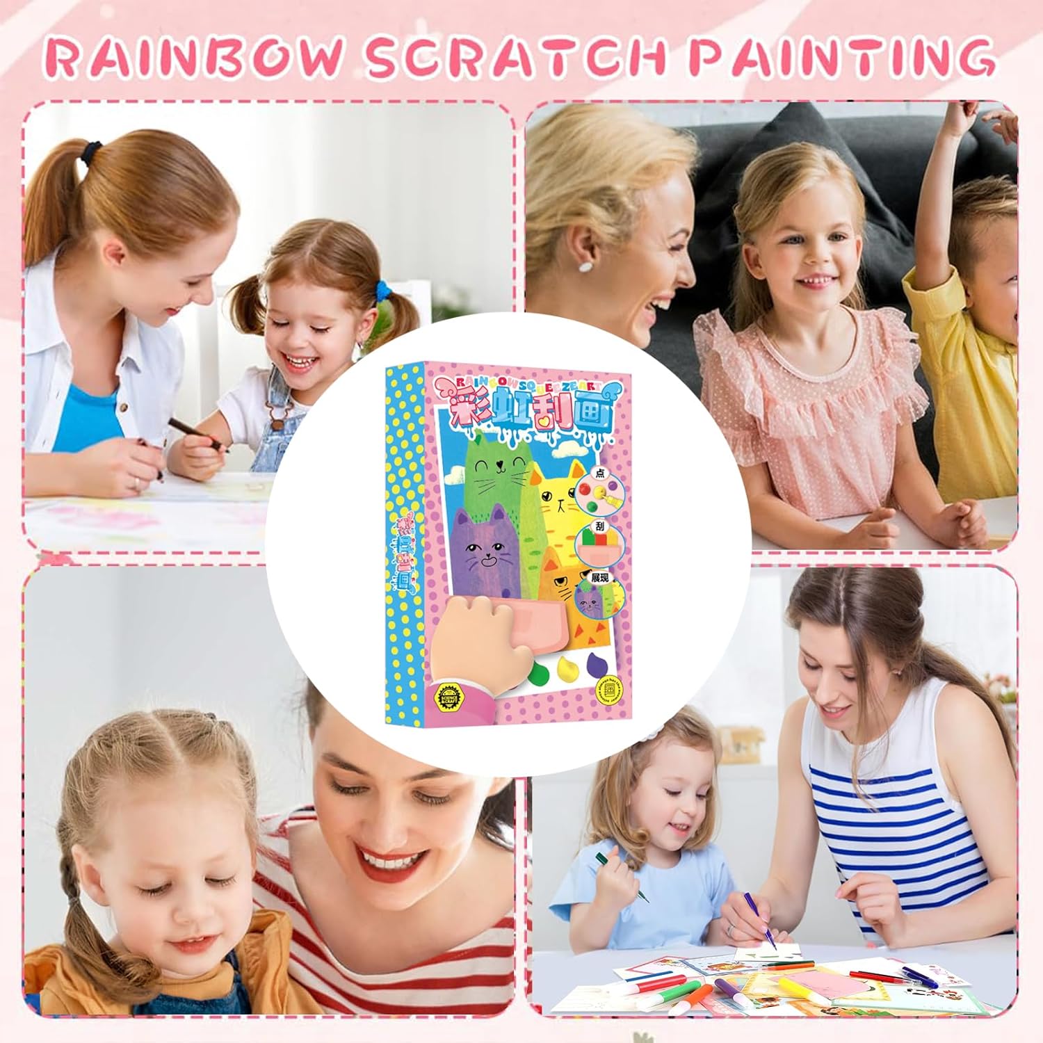 Scoperta magica: immergiti nell'arte antigraffio arcobaleno per bambini e lasciati incantare Ogni raschiatura con il nostro set da 35 pezzi è una nuova ed emozionante avventura. I piccoli artisti rivelano ad ogni tratto le affascinanti opere d'arte nascoste sulla superficie appositamente rivestita. Sul retro di ogni foglio c'è un design creativo della cartolina, ideale per condividere con orgoglio i capolavori finiti con amici e familiari. Creatività e sviluppo: l'arte antigraffio arcobaleno per bambini apre la porta a un'immaginazione senza limiti Questo set offre divertimento infinito e promuove abilità giocosamente importanti. L'Arte Arcobaleno per bambini allena pazienza, concentrazione e una mano calma, perfetta per lo sviluppo delle capacità motorie. Anche il pensiero artistico e l'immaginazione sono stimolati. È l'entrata ideale e creativa nel mondo dell'arte per ogni bambino. Fantasia grazie al colore: con l'arte antigraffio arcobaleno per bambini, la fantasia brilla nei colori più brillanti Ogni graffio sulle superfici speciali presenta sfumature mozzafiato e motivi luminosi. sorprendenti combinazioni di colori fanno risplendere il potenziale artistico del tuo bambino. Quando si lavora con questo set di tiragraffi arcobaleno per bambini, il vostro bambino amplia naturalmente la sua percezione dei colori e sviluppa una sensazione di composizioni armoniose. Regalo perfetto: siete alla ricerca di un regalo creativo ed emozionante? L'arte antigraffio arcobaleno per bambini è la scelta perfetta! regala non solo materiale, ma soprattutto creatività, gioia e orgogliose esperienze di realizzazione. Non importa se per compleanno, Natale, Capodanno o per la festa dei bambini, i giovani artisti saranno entusiasti e impegnati a lungo. È il modo ideale per incoraggiare i bambini a creare la propria arte e presentarla con orgoglio. Facile da usare, successo immediato: è semplicissimo! L'applicazione del set di Arcobaleno per bambini è semplice e garantisce risultati fantastici senza frustrazione. Basta prendere il motivo desiderato e raschiare la superficie nera a piacimento con lo strumento di raschiatura incluso, l'opera d'arte colorata sottostante sarà visibile e vivace. Questa semplice tecnica garantisce risultati istantanei e impressionanti che entusiasmano e motivano i bambini.