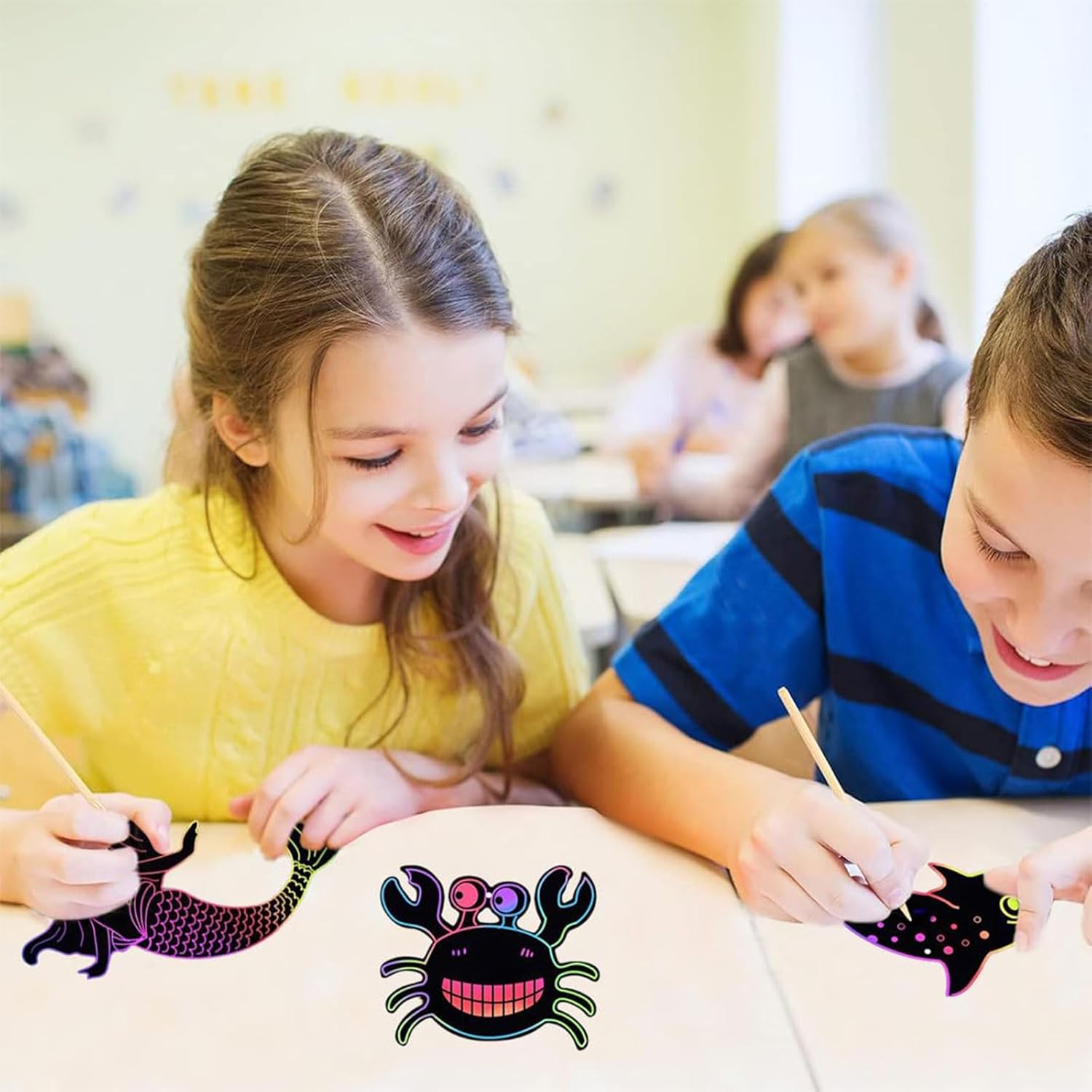 Contenuto della confezione: riceverai 12 dipinti da grattare con animali marini in 12 diversi disegni, con 4 penne in bambù e 12 corde colorate, fornitura sufficiente, animali marini di diverse dimensioni e forme in grado di soddisfare le tue diverse esigenze di artigianato fai da te. Materiale sicuro: i biglietti da grattare a forma di animale marino sono realizzati principalmente in robusta carta con un rivestimento nero sulla superficie, i bastoncini sono realizzati in legno, robusti e durevoli e lo stilo in legno naturale è progettato per essere smussato per prevenire potenziali pericoli. Come usare: questi regali per feste con animali marini sono facili da usare, basta usare un bastoncino di legno per raschiare via la pellicola nera sulla superficie per rivelare un bel colore arcobaleno e i nastri colorati possono appendere i tuoi dipinti per completare un nuovo segnalibro artistico. Goditi il divertimento del fai da te: questi set di carta da grattare per bambini sono progettati con una combinazione di colori arcobaleno e forme di animali marini, carini e attraenti. È possibile utilizzare questi bastoncini per graffiare e attaccare questi adesivi lucidi per ottenere bellissimi motivi e godere di un divertimento senza fine. Regalo perfetto: questi divertenti e nuovi biglietti da gratta e vinci con motivo di animali marini sono un ottimo kit per i bambini per trascorrere momenti felici, pieni di colori ed eccitazione, puoi usarli come premi o ricompense di buon comportamento a casa o a scuola, o come bomboniere per feste a farfalla per scambi in classe e molto altro ancora.