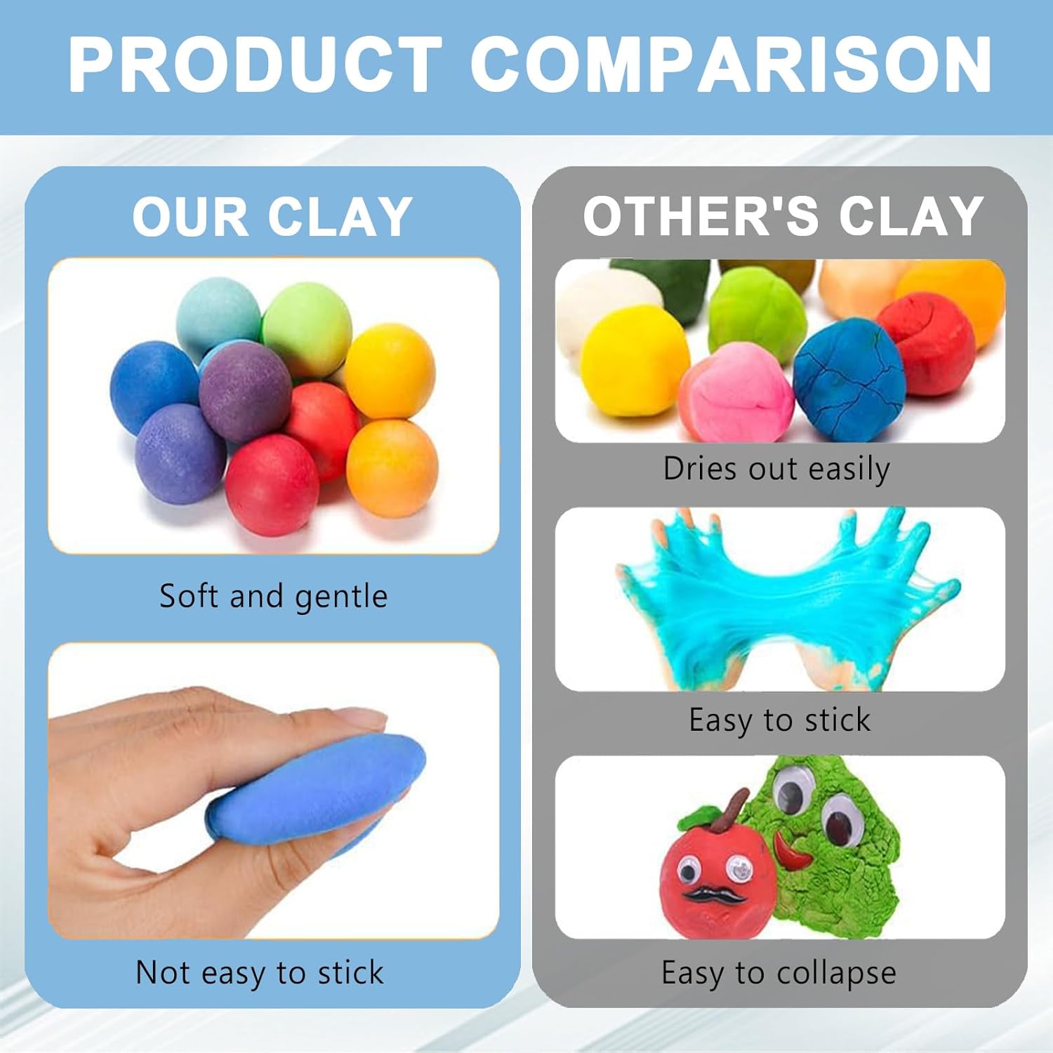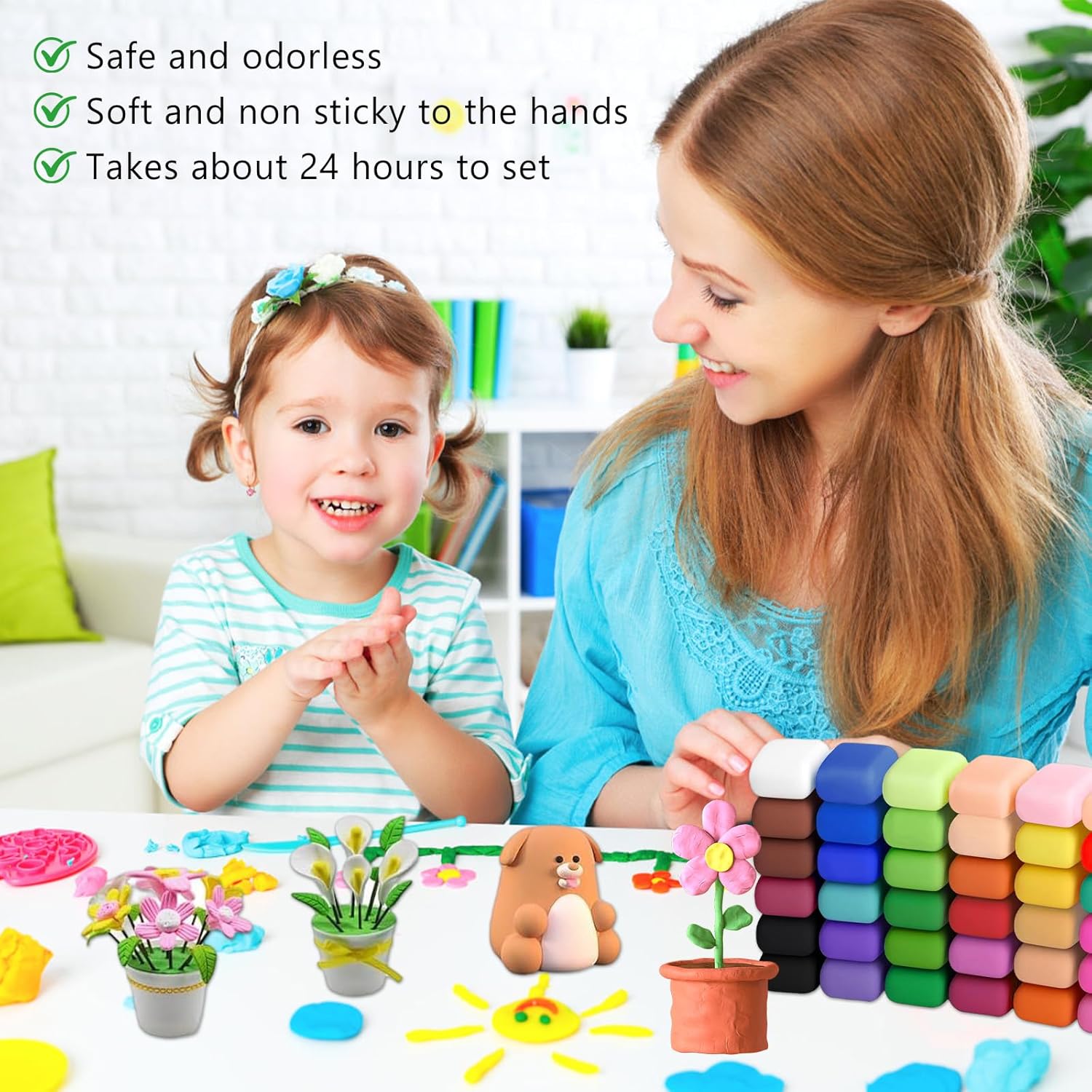 Risultati vivaci e creativi: questo kit completo offre 48 colori di argilla autoindurente pronti all'uso, perfetti per dare vita a tutte le tue idee senza dover mescolare le sfumature, sia per progetti di disegno, decorazioni artigianali o creazioni artistiche avanzate, consentendo a bambini e adulti di sviluppare liberamente la propria immaginazione e godersi un momento creativo unico. Tessitura leggera e facilmente modellabile: L'argilla si distingue per la tessitura fine e ariosa che offre un'ottima estensibilità e limita il rischio di rotture durante la modellatura, garantendo al contempo una finitura liscia; una volta essiccata naturalmente, la pasta mantiene la sua forma senza screpolarsi o deformarsi, garantendo la durabilità e la conservazione delle vostre opere nel tempo. Strumenti pratici e versatili inclusi: La confezione comprende tre strumenti appositamente progettati per facilitare il taglio, la scultura e la realizzazione di disegni dettagliati, rendendo le creazioni accessibili anche ai principianti, che potranno così realizzare pezzi raffinati con facilità e scoprire la soddisfazione di un lavoro manuale ben riuscito. Stimola lo sviluppo e la creatività: ideale per realizzare animali, fiori, cibi in miniatura o decorazioni a tema, questo set di argilla aiuta a migliorare le capacità motorie e la coordinazione occhio-mano dei bambini, fornendo allo stesso tempo un'esperienza divertente che stimola la loro curiosità e fiducia in se stessi nell'esplorazione artistica. Supporto e soddisfazione garantiti: se la tua plastilina non funziona come previsto, non esitare a contattarci; il nostro reattivo servizio clienti si impegna a risolvere rapidamente le tue domande o problemi, in modo che tu possa goderti appieno il tuo kit creativo e condividere momenti felici con la tua famiglia.