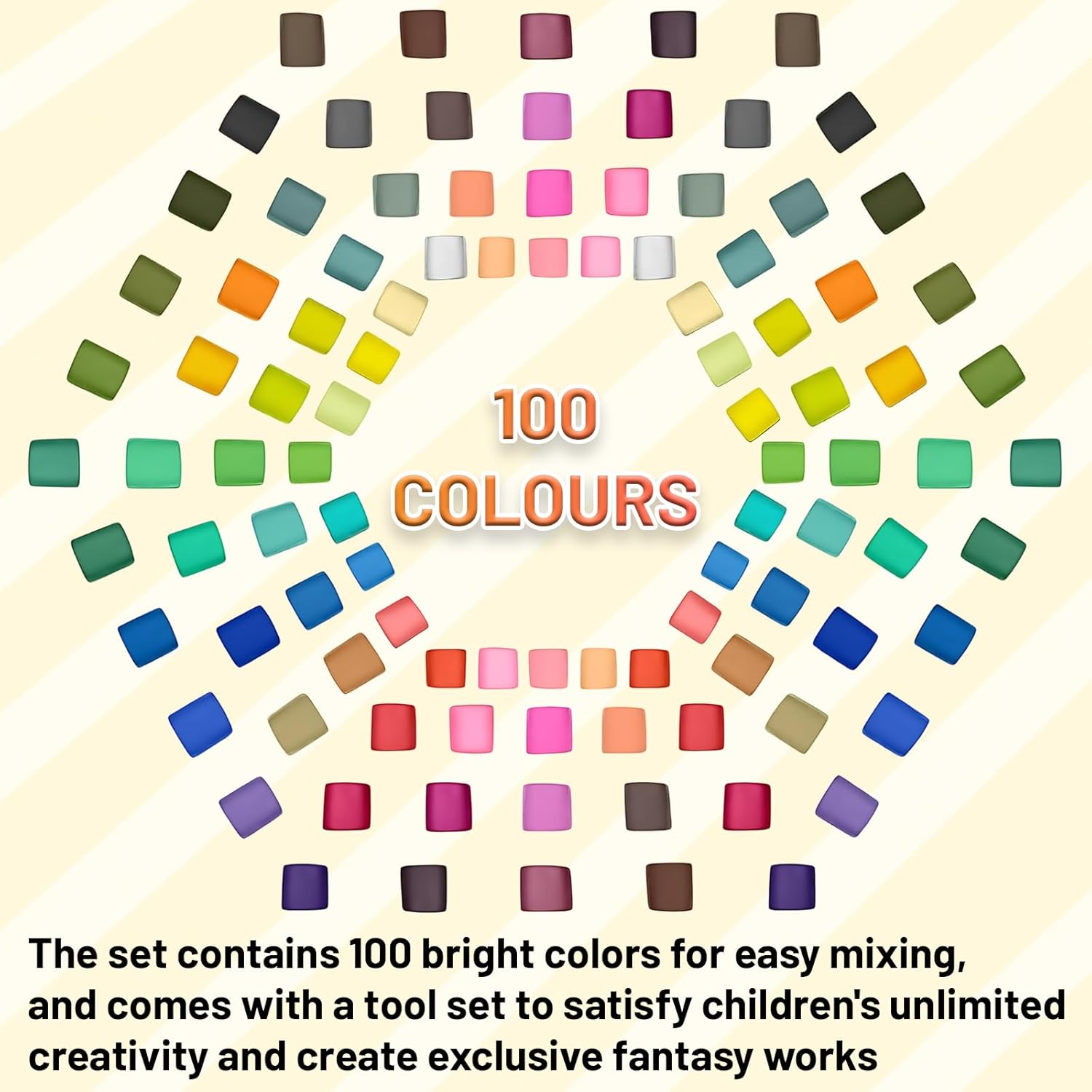 Set di argilla da modellare con 100 colori vivaci: questo kit completo offre una gamma incredibile di sfumature facilmente miscelabili che consentono ai bambini di dare vita a creazioni uniche e originali. L’argilla morbida e flessibile permette di realizzare modelli dettagliati come frutta, animali e decorazioni. La ricca palette cromatica stimola la fantasia e rende ogni attività di modellazione un momento di scoperta e divertimento. Materiale sicuro e atossico per un gioco sereno: l’argilla è prodotta con componenti ecologici di alta qualità, priva di sostanze nocive, completamente inodore e delicata sulla pelle dei bambini. La consistenza morbida ma resistente garantisce una modellazione piacevole, facile da stendere e modellare senza sbriciolarsi. Questo set è stato progettato per proteggere le mani dei più piccoli, offrendo un’esperienza creativa sicura e confortevole che i genitori possono scegliere con fiducia. Asciugatura naturale senza cottura: la nostra argilla da modellare si asciuga completamente all’aria in 24-48 ore senza bisogno di forni o fonti di calore, garantendo un utilizzo pratico e sicuro. Questa caratteristica permette di conservare a lungo le opere realizzate dai bambini, trasformandole in ricordi duraturi. È ideale per attività creative quotidiane, progetti scolastici e lavori manuali che arricchiscono la crescita personale e l’espressione artistica. Stimola la creatività e lo sviluppo: il set di argilla incoraggia i bambini a esplorare la propria immaginazione attraverso il gioco, migliorando la coordinazione occhio-mano, la motricità fine e la percezione dei colori. Grazie agli accessori inclusi, ogni bambino può sperimentare forme e dettagli, creando oggetti tridimensionali che arricchiscono le capacità cognitive. La modellazione diventa così un’attività educativa che diverte e contribuisce alla crescita armoniosa. Regalo perfetto per ogni occasione: con i suoi 100 colori e la vasta gamma di accessori, questo kit è una splendida idea regalo per compleanni, Natale o altre festività. La confezione colorata e completa garantisce ore di divertimento creativo, stimolando i sensi e promuovendo l’apprendimento attraverso il gioco. È un modo speciale per condividere momenti di qualità in famiglia e sostenere lo sviluppo delle capacità artistiche dei più piccoli.