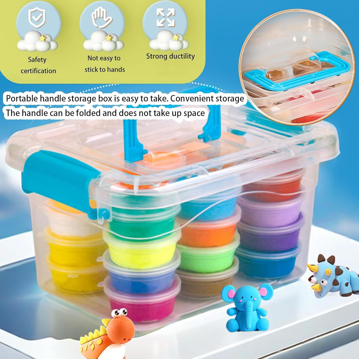 Questo set di modellazione contiene 24 colori vivaci di argilla morbida e leggera, perfetta per modellare e creare affinché i bambini esplorino la loro creatività attraverso l'artista. Realizzato con materiali ecologici, questo Klay è sicuro per i bambini e semplifica la realizzazione di un fantastico giocattolo educativo che supporta le capacità motorie per la coordinazione occhio-mano e il pensiero creativo. Ideale come regalo per compleanno, Pasqua, Ringraziamento o occasioni speciali. Questo set da modellismo è ottimo come contenitore per riporre gli oggetti o come regalo per le feste dei bambini piccoli che amano giocare con fantasia. Ogni colore del set per pianoforte è confezionato singolarmente per evitare che si secchi e per mantenere la consistenza morbida e pieghevole per un uso ripetuto, perfetto per l'aula domestica o il lavoro familiare. Questo set di argilla è una divertente attività indoor che offre ore di intrattenimento aiutando i bambini ad esprimersi e a creare opere d'arte uniche fatte a mano