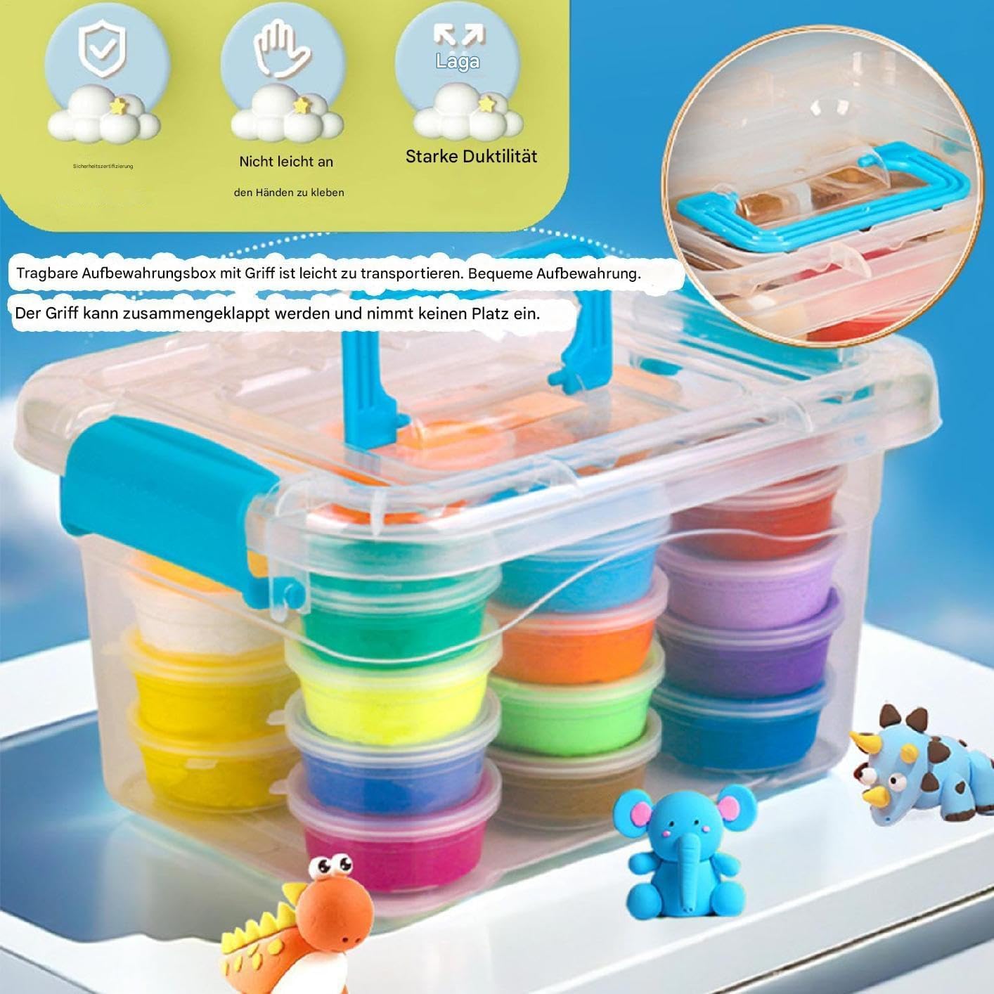 Questo kit di argilla da modellare include 24 colori vivaci di argilla morbida e leggera, perfetta per scolpire, modellare e creare, consentendo ai bambini di esplorare la propria creatività attraverso divertimento artistico pratico in qualsiasi momento. Realizzata con materiali ecologici, questa argilla è sicura per i bambini e facile da modellare, rendendola un fantastico giocattolo educativo che supporta le capacità motorie, la coordinazione occhio-mano e il pensiero creativo. Ideale come regalo per i compleanni, Pasqua, Ringraziamento o qualsiasi occasione speciale, questo set di argilla da modellare funziona benissimo come imbottitura per calze o bomboniera per i bambini piccoli che amano il gioco fantasioso. Ogni colore nell'argilla. il kit è confezionato singolarmente per evitare che si secchi e mantenere la consistenza morbida e flessibile per un uso ripetuto, rendendolo perfetto per l'uso domestico in classe o per i lavori manuali in famiglia. Dalla realizzazione di figurine di animali o ornamenti natalizi, questo set di argilla è una divertente attività indoor che offre ore di intrattenimento aiutando i bambini ad esprimersi e a creare opere d'arte uniche fatte a mano.
