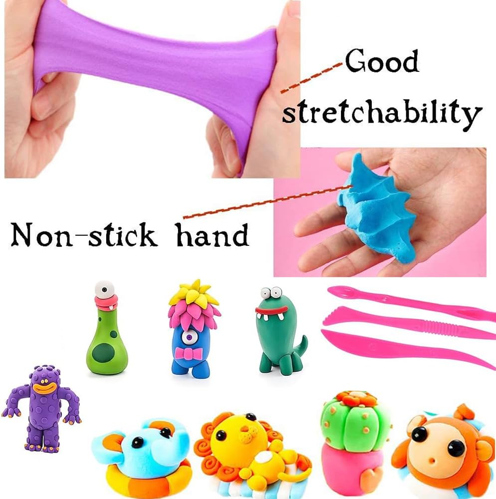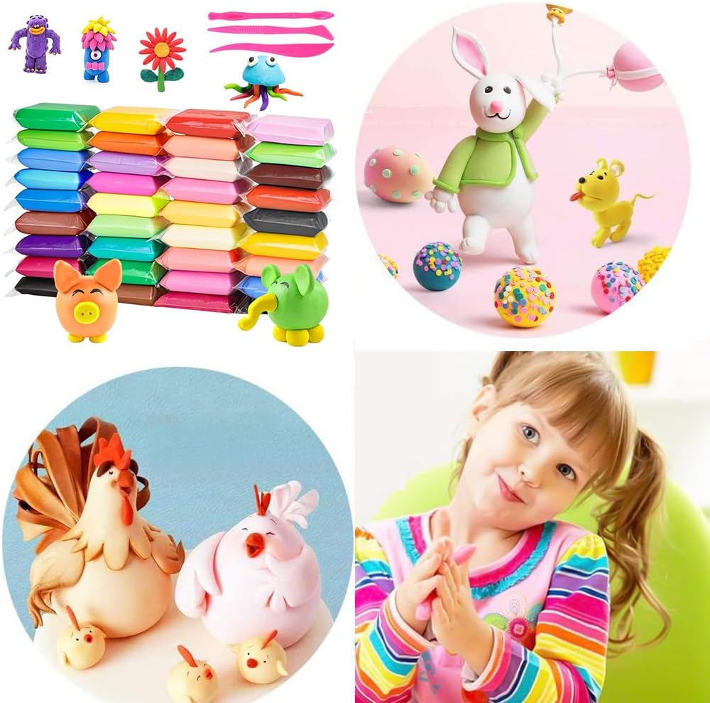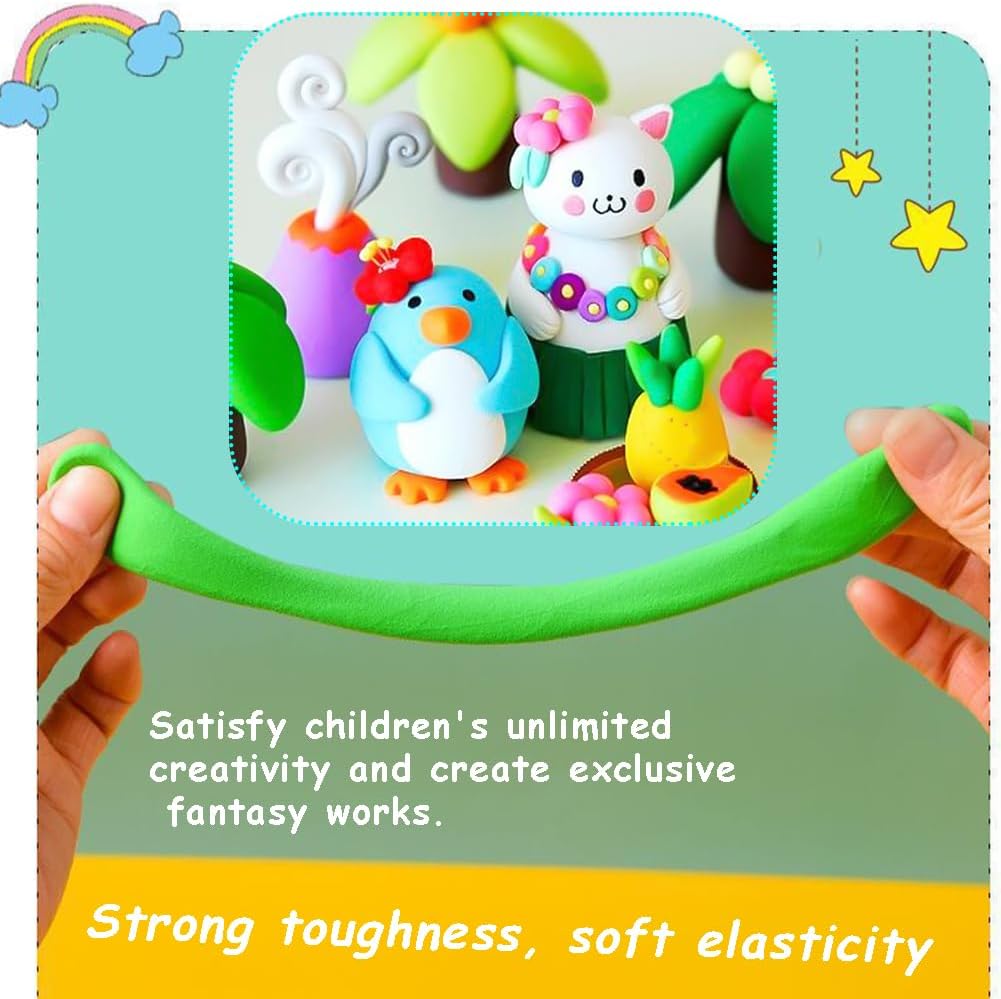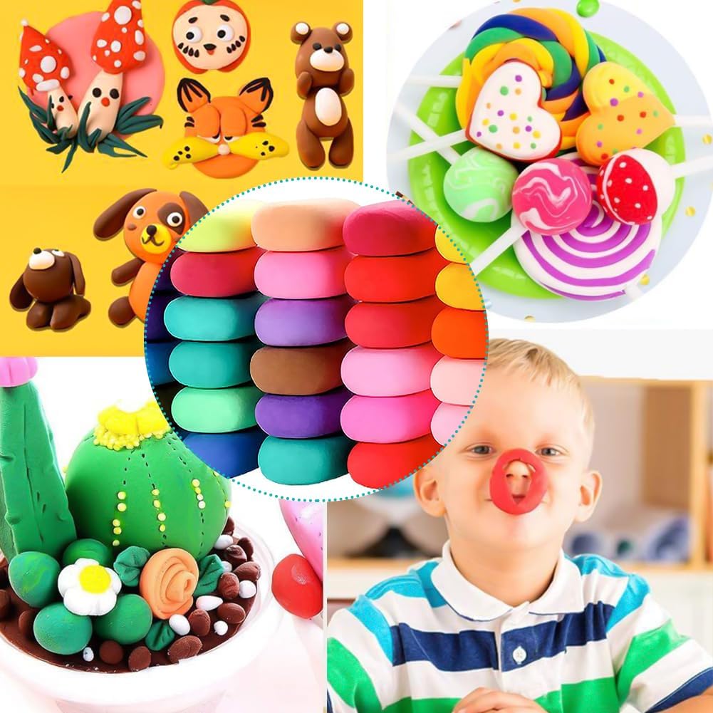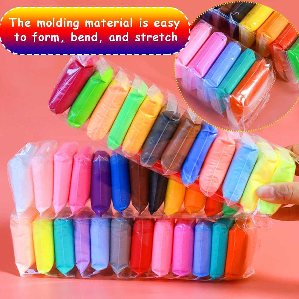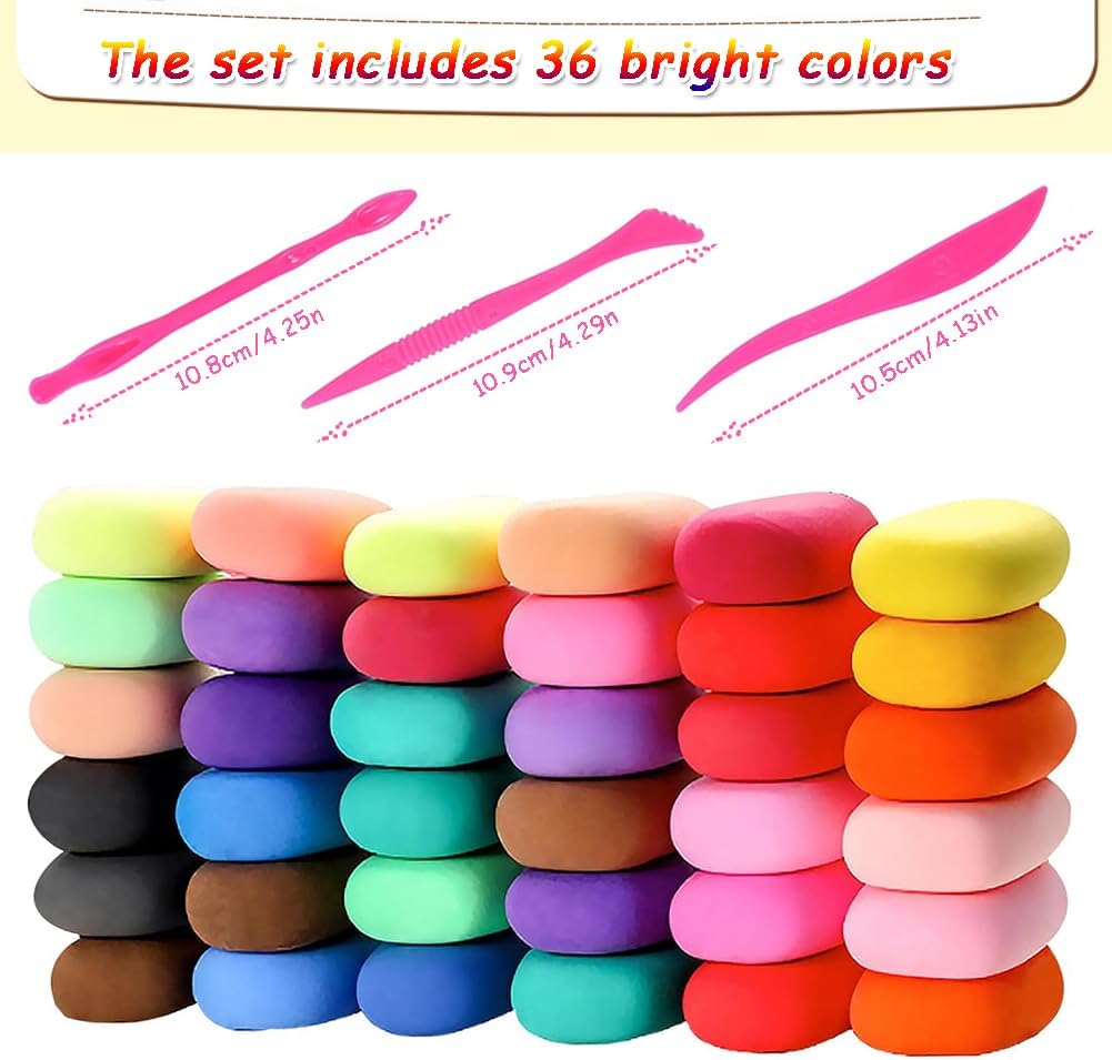 🎁【Materiali】Lavoro manuale modeliermasse für Kinder, erfüllt strikt die Europäischen spielzeugsicherheitsstandards und - Anforderungen. Lehm wird dans Transparenten, versiegelten plastictüten gelagert, die verhindern, dass er zu trocken ist. 🎁【Set di argilla polimerica da 36 colori】Questa argilla che asciuga all'aria contiene 36 colori di argilla da modellare in 36 sacchetti con cerniera e 3 strumenti per impastare per modellare e decorare facilmente. 🎁【Non è necessaria la cottura al forno】Questa argilla secca all'aria si indurisce in 24 ore, senza bisogno di cuocere in forno. L'argilla viene conservata in sacchetti richiudibili per evitare che si secchi. Assicurati di chiuderlo correttamente dopo ogni utilizzo. 🎁【Il Regalo Ideale】Questo impasto autoindurente è il regalo perfetto per i bambini dai 3 ai 12 anni, offrendo ore di divertimento creativo durante giochi, feste di compleanno o attività artigianali di famiglia. 🎁【Scenari ampiamente applicabili】Argilla polimerica Adatta per il tempo libero quotidiano dei bambini, lezioni di fai da te, interazioni genitore-figlio e altri scenari, non solo esercita i movimenti fini e il pensiero spaziale dei bambini, ma rafforza anche le relazioni genitore-figlio.