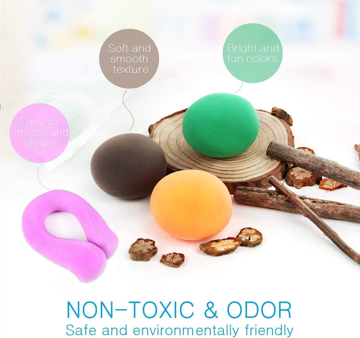 Kit di argilla essiccata all'aria da 36 colori: questo kit di argilla da modellare viene fornito con 36 colori tenui in tazze e 3 strumenti di modellazione e una brochure del progetto in inglese. Ogni colore pesa 15 g, peso totale 540 g. Materiale sicuro: certificato CPSC e ASTM D-4236 e certificato CE. Il suono magico dalla forma ultraleggera è adatto ai bambini e approvato dai genitori. Atossico, morbido al tatto. Creatività e immaginazione: il tono è facile da modellare, piegare e allungare. Dalle forme semplici, presto realizzeranno incredibili forme di argilla. Può liberare la creatività e l'immaginazione dei tuoi bambini! Idee regalo per bambini: il kit di argilla leggera da 36 colori è il miglior giocattolo educativo per ragazzi e ragazze, un regalo unico. Può essere inviato come regalo per la Giornata dei bambini. Garanzia di qualità al 100% - Se il tuo prodotto non funziona correttamente, contattaci per una sostituzione