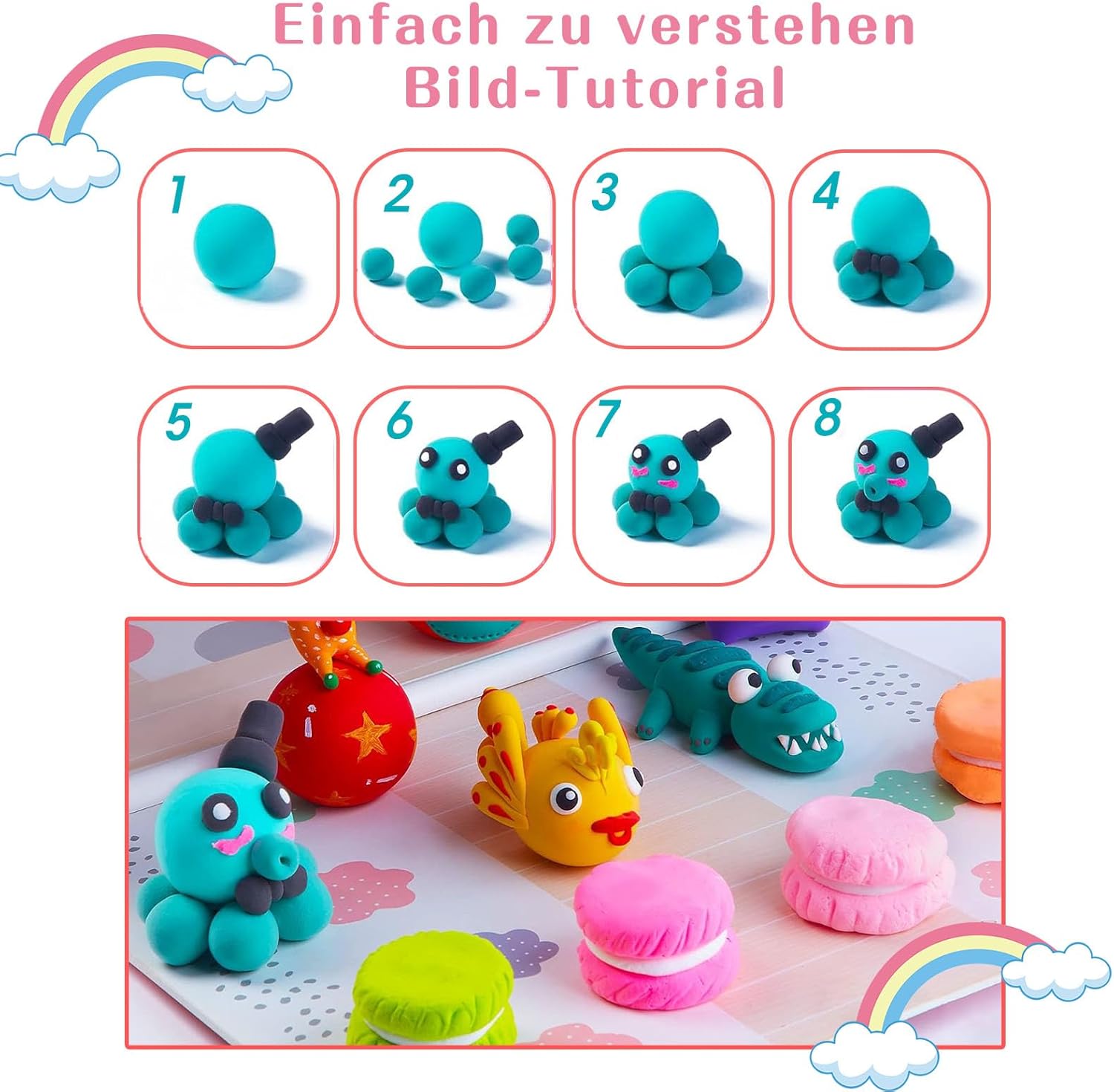 🌟 【Colori vivaci】: set di argilla essiccata all'aria in 24 colori vivaci, ogni blocco pesa 10 g. Una volta perfezionata la tua creazione, lasciala semplicemente asciugare. 🌟【Sicuro e di alta qualità】: le nostre argille essiccate all'aria sono morbide al tatto, non tossiche e rispettose dell'ambiente, non appiccicose e leggere. L'aria si asciuga completamente in 24 ore, quindi puoi ottenere ciò che hai creato. 🌟【Crea il tuo capolavoro】: il set di argilla magica è tutto ciò di cui hai bisogno per ore di costruzione creativa. Espandi le possibilità della tua immaginazione, stai lontano dall'elettronica e migliora la capacità creativa 🌟 【Educativo eccellente】: aiutali a sviluppare il riconoscimento del colore e della forma, la coordinazione occhio-mano, l'immaginazione e la creatività, il pensiero logico spaziale. 🌟【Regalo ideale per】: regalo perfetto per Natale, Ringraziamento, Halloween, Natale, Capodanno e Compleanno. QUESTO ARTICOLO NON È DESTINATO A UTENTI SOTTO I 12 ANNI