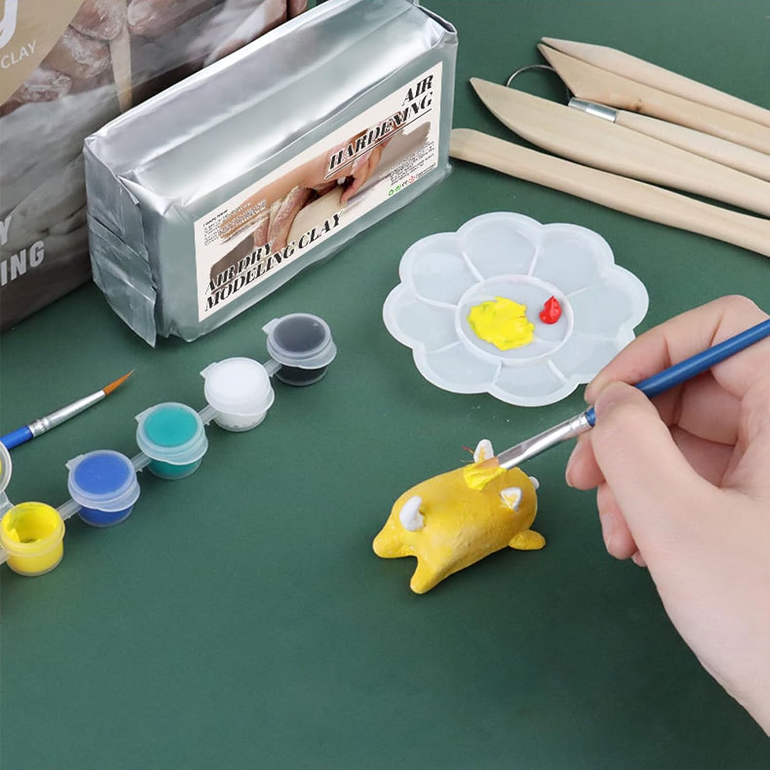 Elementi essenziali per l'artigianato: dotato di 12 colori acrilici, pennelli a doppia faccia, vernice sigillante, flacone spray e strumenti multifunzionali, questo set supporta i bambini con creazioni dettagliate e risultati brillanti con un'applicazione a prova di errore. Design accurato: incoraggia la creatività attraverso la libera miscelazione dei colori e il controllo preciso del pennello, consente texture multidimensionali per opere d'arte personali con l'uso versatile degli strumenti. Consistenza delicata, sicura: realizzata con materiali innocui, questa argilla asciugata all'aria sicura per i bambini offre una consistenza morbida ed elastica. Si asciuga senza screpolarsi e quindi preserva in modo permanente le opere creative dei bambini. Ideale per progetti artistici di lunga durata senza ingredienti nocivi. Applicazioni flessibili: supporto ottimale per l'artigianato 3D/2D, l'apprendimento artistico, il rafforzamento delle capacità motorie e progetti di vacanza congiunti per l'interazione genitore-figlio. Stampo per spugna incluso: l'impasto che asciuga all'aria con stampo per spugna e forme semplici consente lavoretti rapidi senza cottura, incoraggia il gioco fantasioso grazie alla facile manipolazione