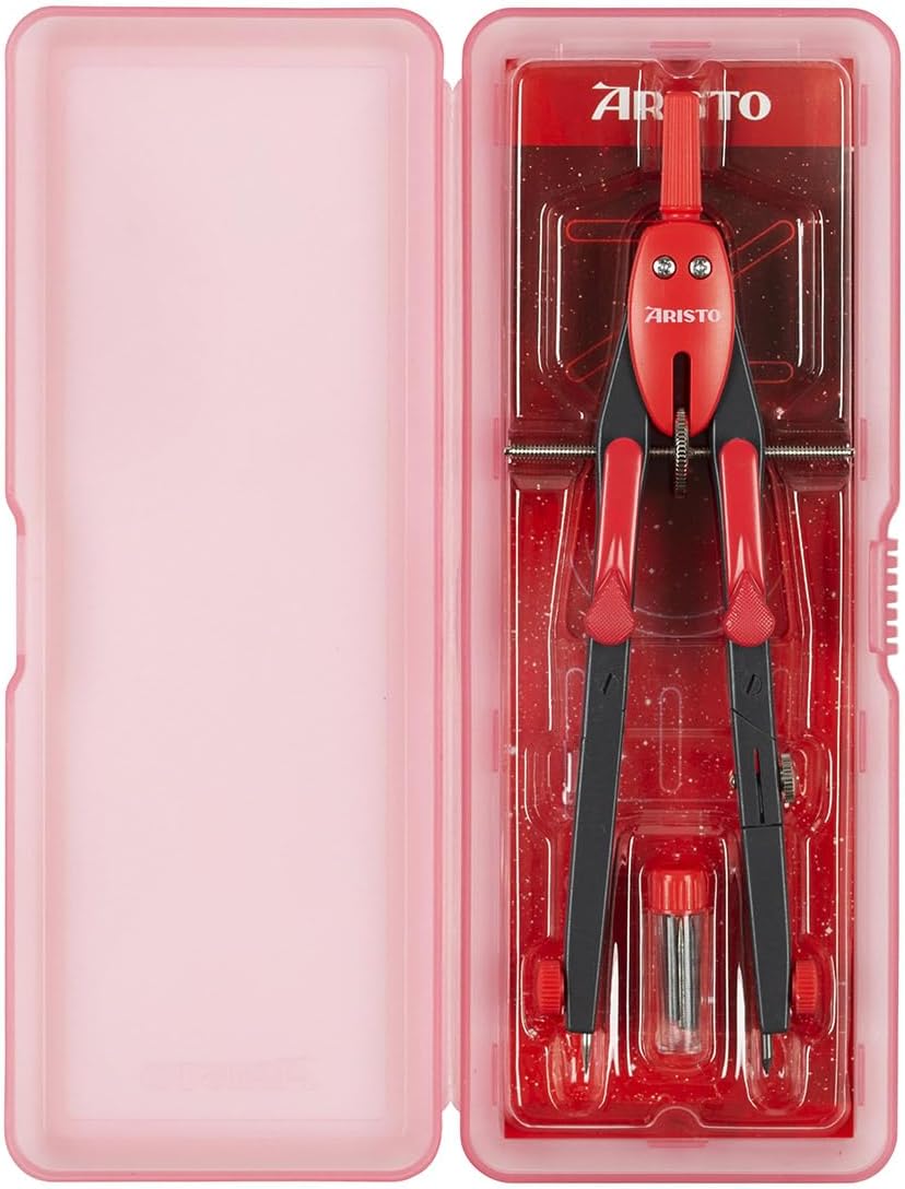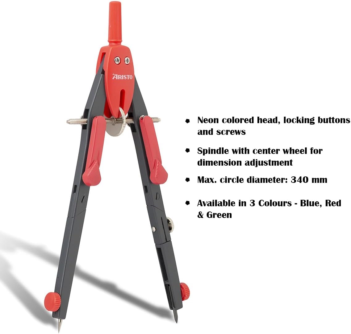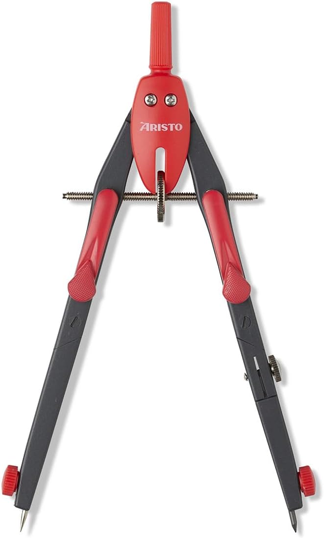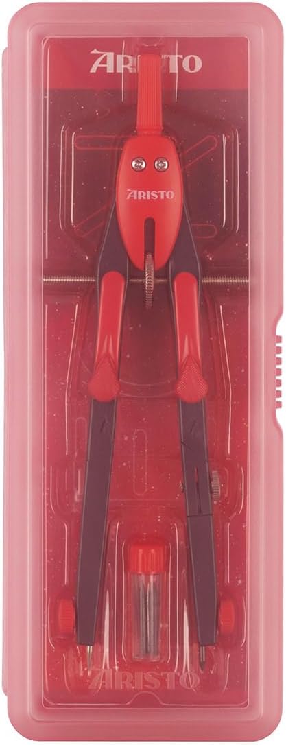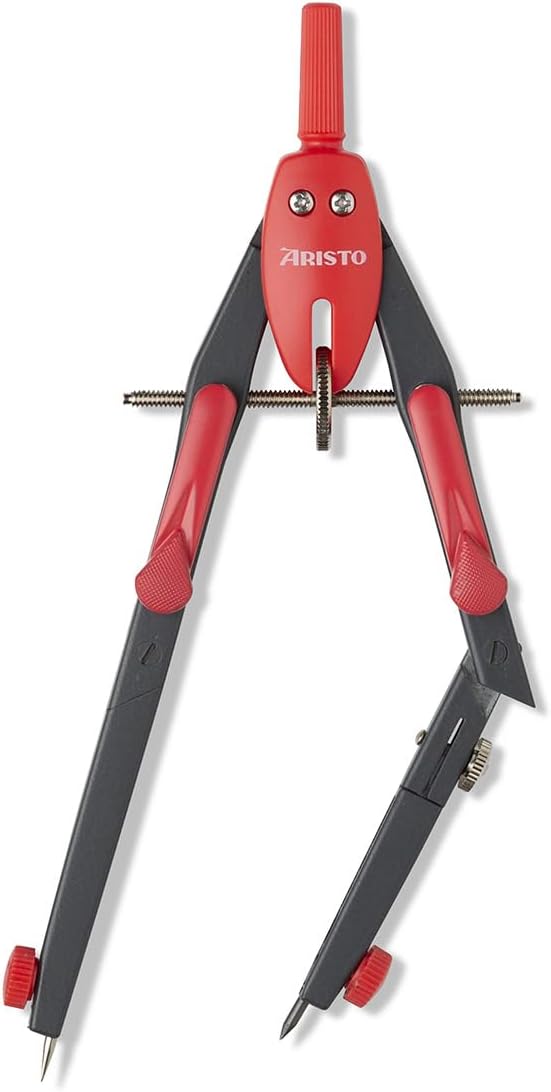 La bussola a regolazione rapida Aristo BTS funziona con precisione e soddisfa quindi le elevate esigenze delle lezioni di matematica e geometria a scuola e all'università. Entrambe le gambe hanno un'articolazione. Una coscia può ospitare inserti fino a 4,0 mm di diametro, ad esempio un'asta di prolunga o un adattatore per disegnare con penne a pigmenti o penne a inchiostro. La regolazione rapida viene attivata premendo i due pulsanti di bloccaggio e la regolazione fine viene effettuata sulla rotella centrale. Durante l'installazione le dimensioni rimangono invariate. Con il compasso puoi disegnare cerchi fino a 340 mm di diametro. Ago e piombo sono fissati con una presa antiscivolo. I prodotti internazionali hanno termini separati, sono venduti dall'estero e possono differire dai prodotti locali, tra cui vestibilità, fascia d'età e lingua del prodotto, etichettatura o istruzioni.
