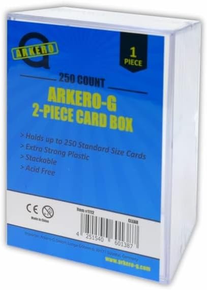 ✅ Scatola per carte Arkero-G da 250 conteggi per riporre in sicurezza le tue carte collezionabili Caratteristiche: Contiene oltre 250 carte, scatola opaca Protezione: L'elevata durezza superficiale fornisce protezione da graffi, ammaccature o ammaccature - Durevole Dimensioni: Larghezza ca. 6,9 cm; altezza: ca. 9,4 cm - Profondità a seconda del modello - Adatto per carte di formato standard 3,5" x 2,5" (ad es. Pokemon, Magic, Dragonball, Digimon, bianco, nero, One Piece...) Utile: impilabile - l'elevata durezza della superficie fornisce protezione da graffi, ammaccature o ammaccature