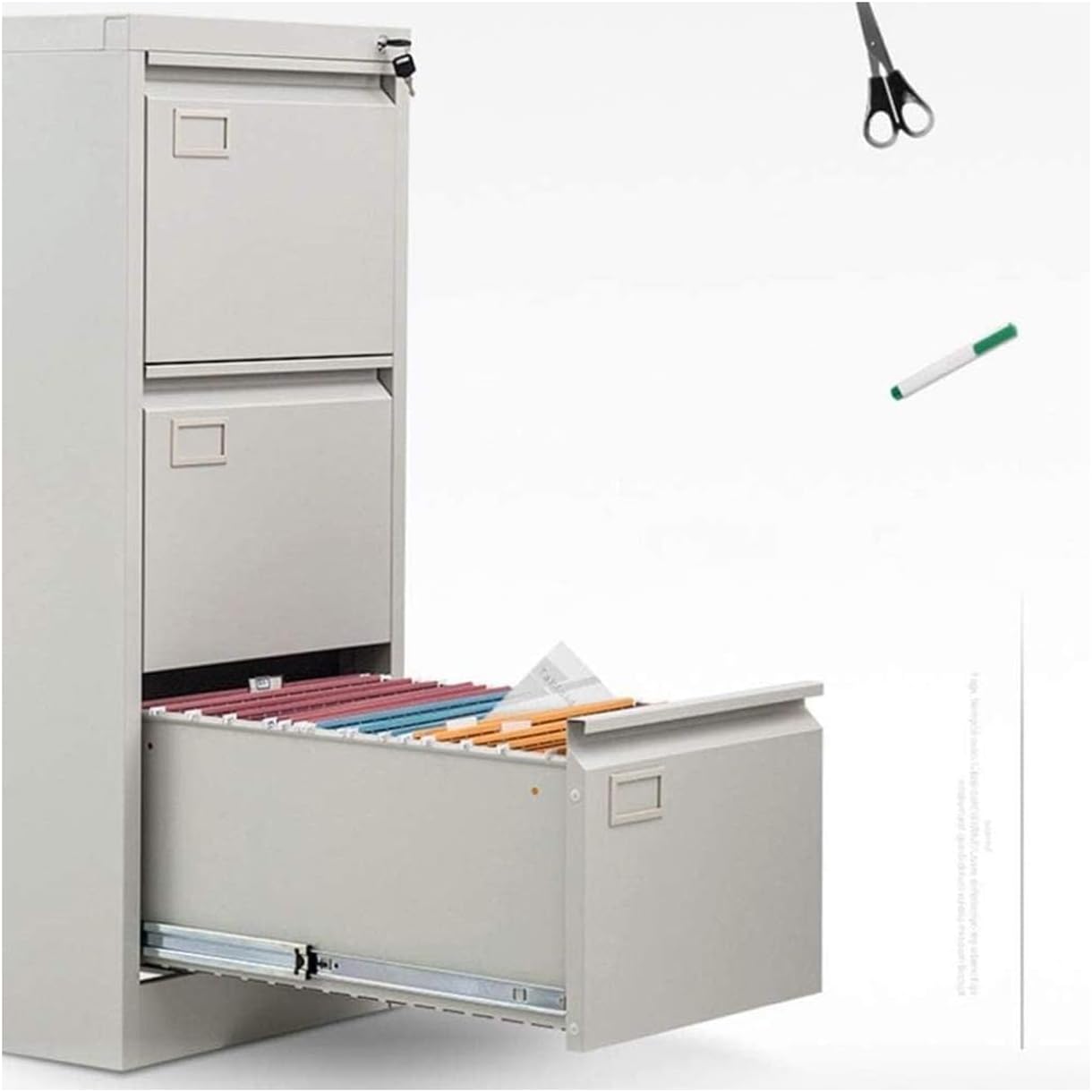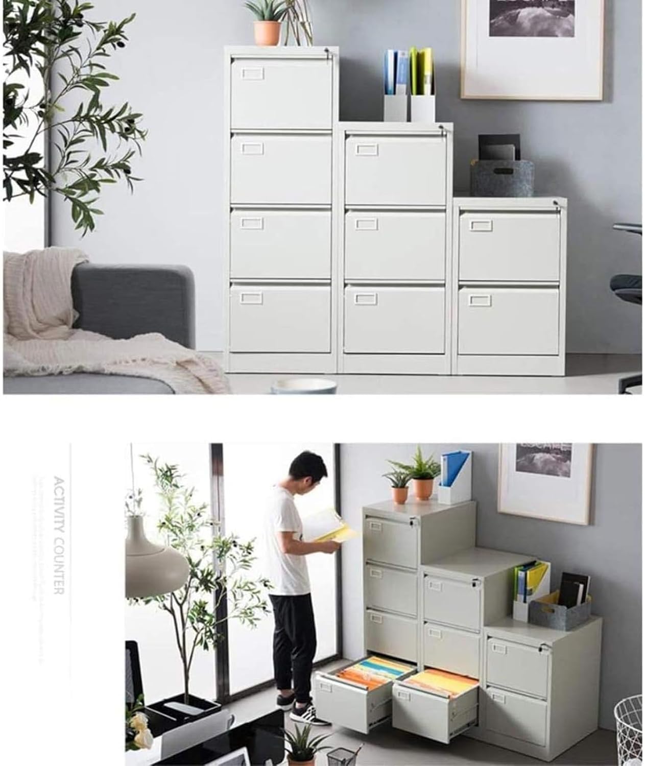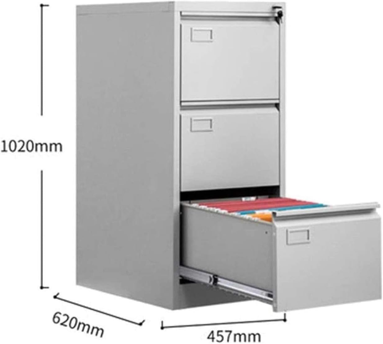 Archiviazione sicura e organizzata: questo schedario verticale include tre cassetti progettati per ospitare documenti in formato A4. I cassetti con chiusura mantengono i tuoi file al sicuro, rendendolo ideale per informazioni sensibili o riservate Struttura in acciaio durevole: Realizzato in acciaio di alta qualità, questo armadio offre durata e resistenza di livello commerciale, adatto per un uso quotidiano intenso in ambienti d'ufficio Design verticale efficiente: L'orientamento verticale massimizza la capacità di archiviazione occupando uno spazio minimo, rendendolo perfetto per piccoli uffici o uffici domestici Comodità mobile: Progettato per viaggiare facilmente, questo armadio è mobile, consentendo un posizionamento e un riposizionamento flessibili nel tuo spazio di lavoro Dimensioni compatte: Con dimensioni di 45,7 x 72 x 62 cm, offre ampio spazio di archiviazione senza ingombrare lo spazio sulla scrivania, adattandosi perfettamente sotto le scrivanie o in spazi ristretti