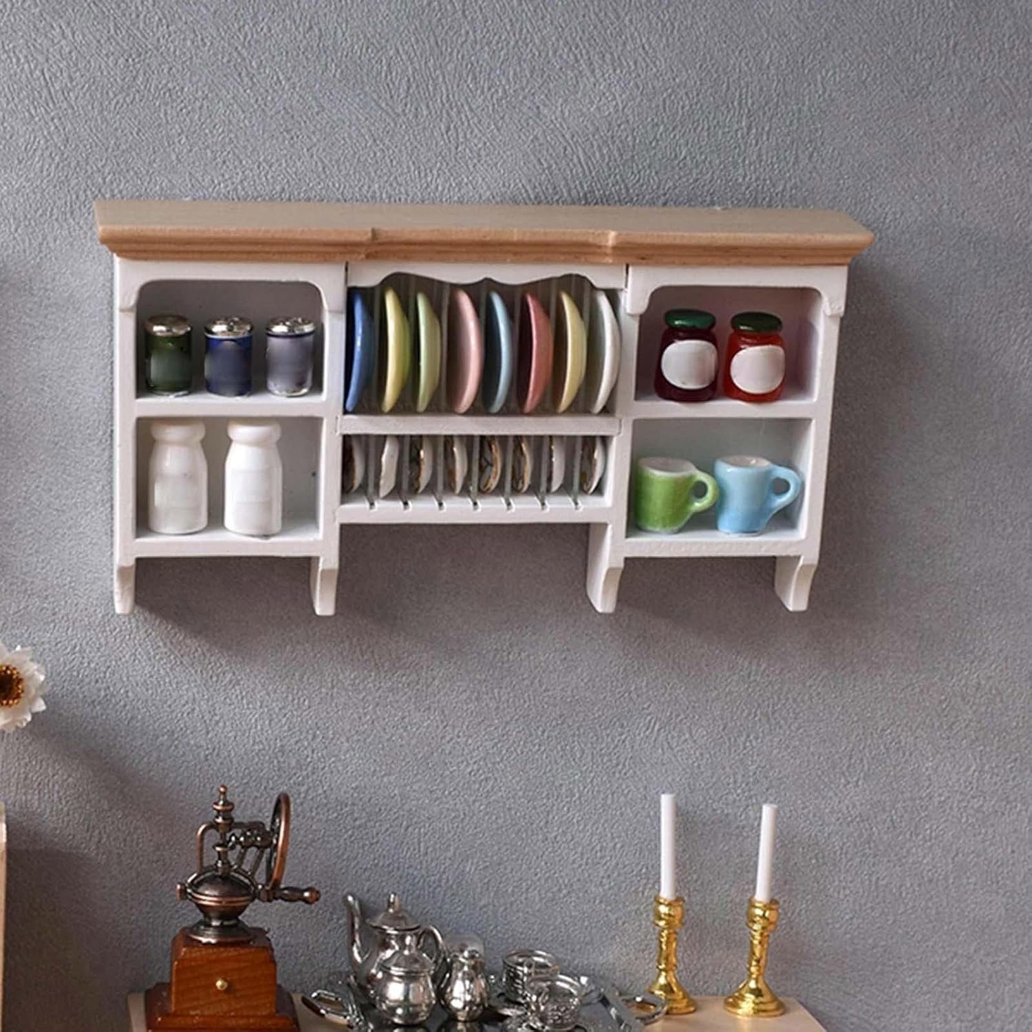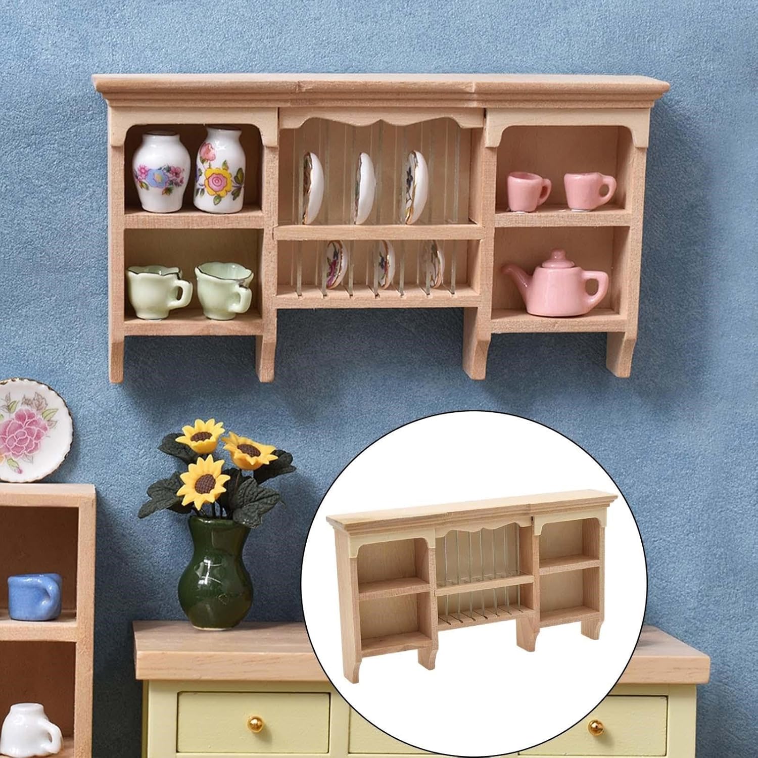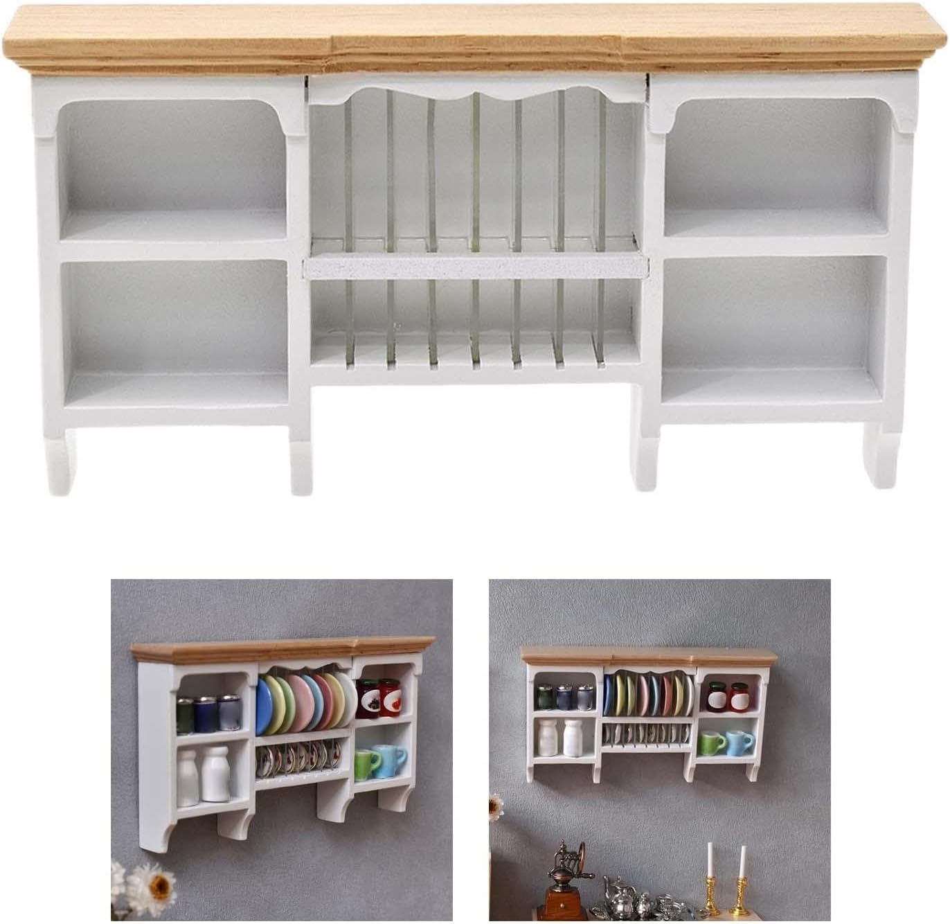 Gli accessori per case delle bambole in miniatura dall'aspetto realistico aggiungono semplicemente più fascino e divertimento alle tue case delle bambole. I nostri mobili da cucina per case delle bambole sono adatti per case delle bambole in scala 1:12, un regalo molto pratico per gli amanti dei modelli, il modello dall'aspetto eccellente dei Decoratori delle case delle bambole molto vicino alla realtà. Ottimi oggetti di scena fotografici realizzati con materiali in legno, questo espositore visivamente accattivante