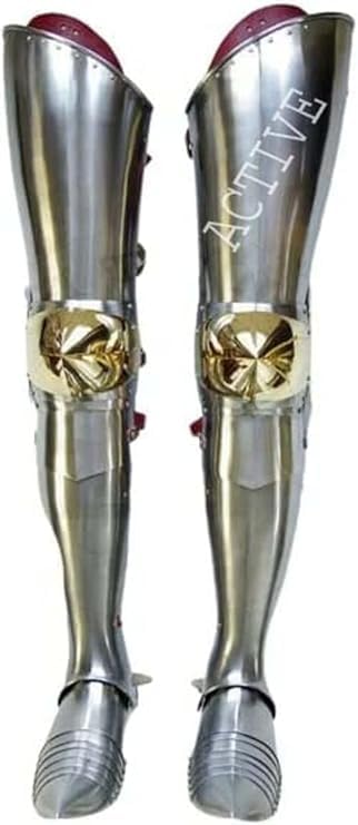 Taglia: Adulto Colore: Argento lucido Tipo: Armatura gamba intera Materiale: Armatura da cavaliere medievale in acciaio calibro 18, Armatura Sabatone, Armatura Larp, Armatura funzionale, Regali di Halloween Armatura da cavaliere medievale, Armatura Sabatone, Armatura Larp, Costume da cavaliere in acciaio per armatura funzionale di design
