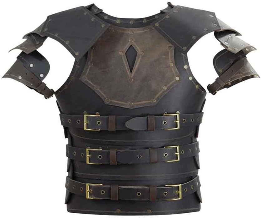 1. Realizzato in pelle PU, resistente e comodo da indossare. può fornire protezione per il torace. e sarà un complemento perfetto per l'abbigliamento medievale 2. Colletto rotondo + protezione per le spalle + design con fibbia della cintura regolabile, molteplici abbellimenti con rivetti, eleganti e innovativi 3. Dona un tocco di straordinario temperamento punk e combattente medievale e ti fa sembrare ancora più eroico 4. Perfetto per Halloween, cosplay, feste vichinghe, equitazione, feste in maschera, club, feste, armature di arti marziali o altre occasioni 5. Oltre all'aspetto fantastico, fornisce protezione di base e buona agilità, indossalo per prepararti alla battaglia!