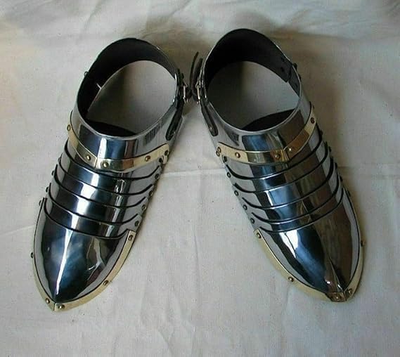 Dimensioni: standard (adatta alla maggior parte degli adulti), finitura argento Acciaio di alta qualità: realizzate in acciaio resistente, queste scarpe medievali offrono una protezione superiore del piede e un tocco realistico a qualsiasi costume o rievocazione. Autentico design medievale: ispirate alle tradizionali calzature da cavaliere, queste scarpe armature in acciaio sono perfette per rievocazioni storiche, LARP, cosplay e fiere rinascimentali. Vestibilità comoda: progettate pensando al comfort, queste scarpe armature indossabili garantiscono facilità di movimento mantenendo la precisione storica. Perfette per costumi: ideali per cosplay, Halloween, fiere rinascimentali o spettacoli teatrali, queste scarpe armature aggiungeranno un tocco di autenticità al tuo vestito da cavaliere o guerriero. Regolabile e indossabile: completamente indossabile con cinghie regolabili per una vestibilità sicura e personalizzata, rendendoli pratici sia per l'esposizione che per l'uso funzionale.