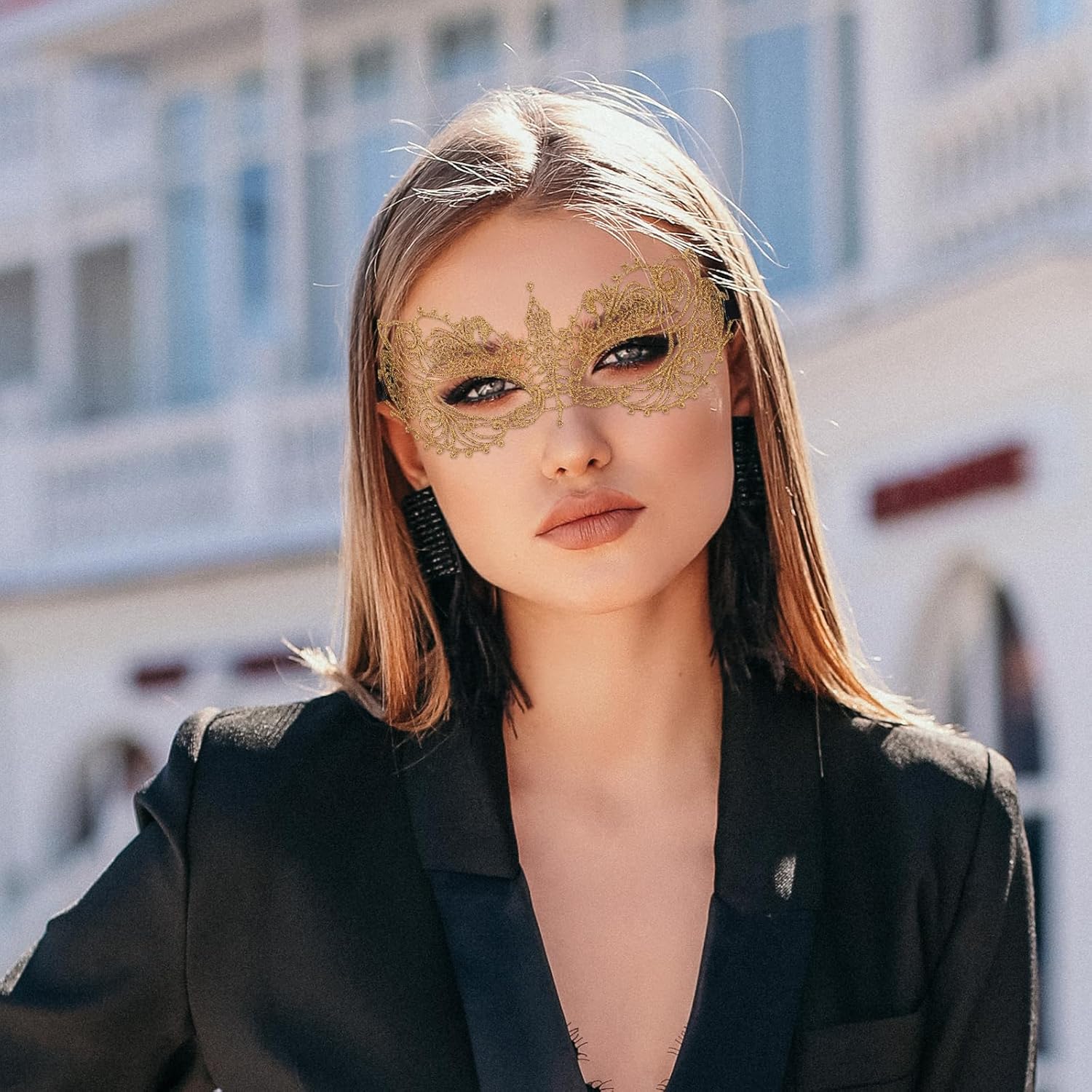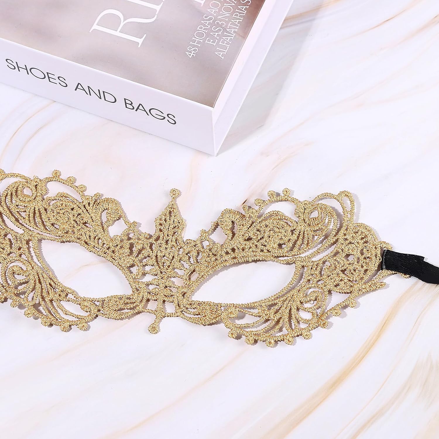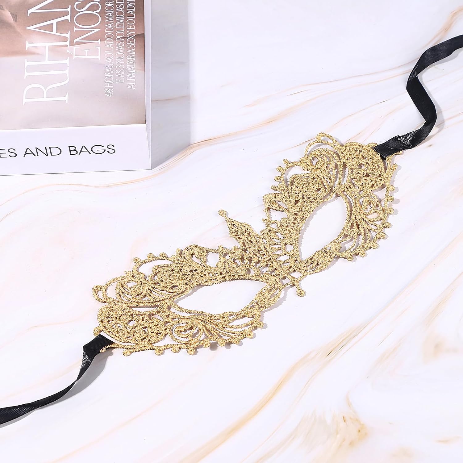 Aroncent Maschera Veneziana in Pizzo: Maschera da Donna con Pizzo per Carnevale Halloween Feste Ballo in Maschera Cavaliere Italiano Mezza Maschera Veneziana Oro