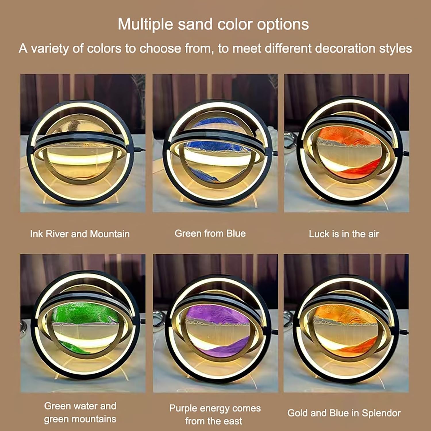 ROTAZIONE DI 360°: il dipinto di sabbia può essere ruotato di 360°, in continua evoluzione. Ogni volta che ruoti la cornice dinamica del dipinto di sabbia, ottieni un'immagine diversa. Goditi il movimento rilassante di una clessidra 3D, che illumina un dipinto con il suo display dinamico. LUMINOSITÀ REGOLABILE: la luminosità della lampada da scrivania è regolabile, con 3 modalità di illuminazione e una luce soffusa, senza sfarfallio e senza abbagliamento, che può creare un ambiente di riposo ideale, aiutare le persone ad addormentarsi rapidamente e migliorare la qualità del sonno. Può essere posizionata anche nella cameretta dei bambini, i vostri bambini la adoreranno! ARREDAMENTO for LA CASA: la lampada Sandscape è perfetta for la tua camera da letto, soggiorno, ufficio, cucina, sala da pranzo, tavolino da caffè, ecc. Può essere utilizzata come luce notturna o illuminazione decorativa in qualsiasi stanza. COMODITÀ DELL'ALIMENTAZIONE USB: accendi senza sforzo il tuo paesaggio in movimento con una semplice connessione USB. Il flusso continuo di pittura su sabbia può alleviare la pressione e l'affaticamento degli occhi, adatto a impiegati, studenti e persone che lavorano lunghe ore davanti al computer. Possono essere utilizzati come decorazioni per decorare il salotto, la camera da letto, il piano del tavolo