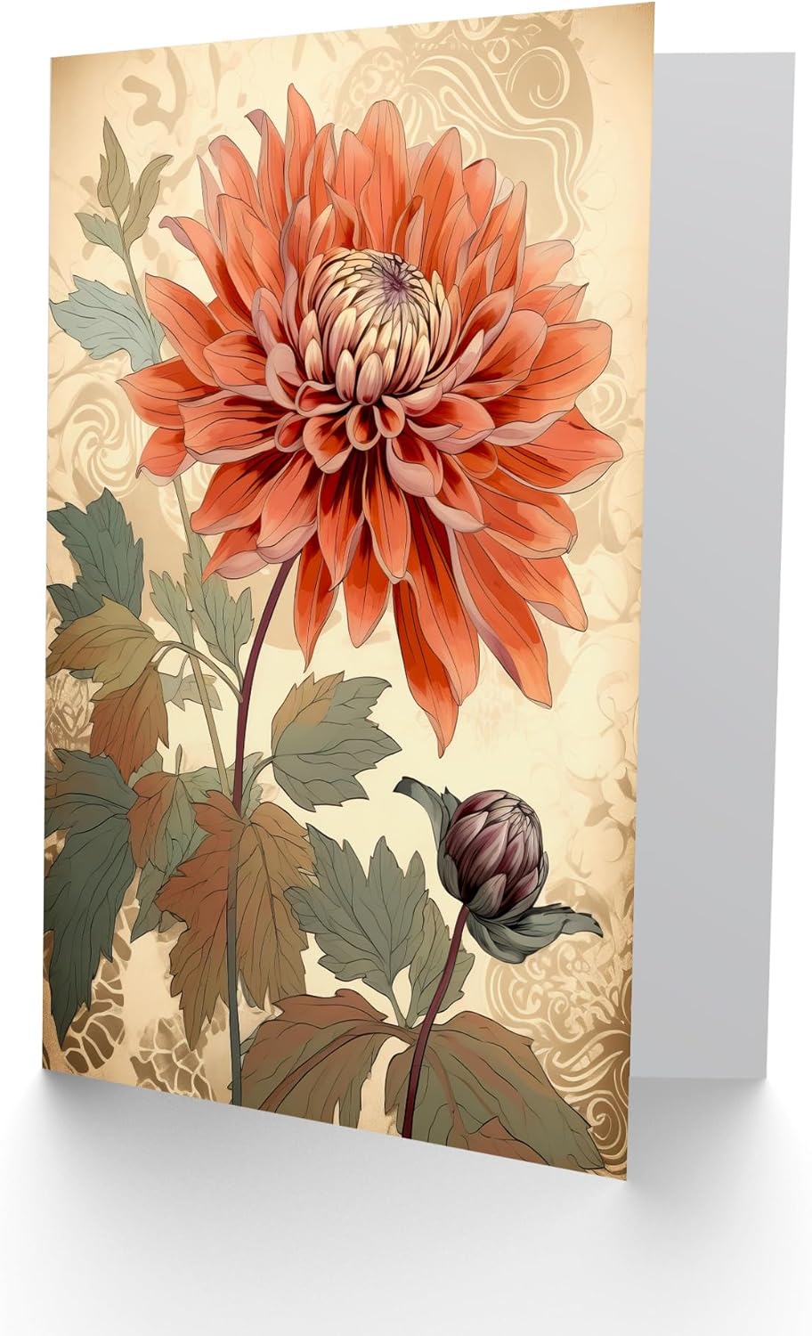 Artery8 Pastel Orange Dahlia Flower Patterns for Wife Her Mum Sister Daughter Mom Gran Nan Birthday Thank You Congratulations Blank Art Greeting Card