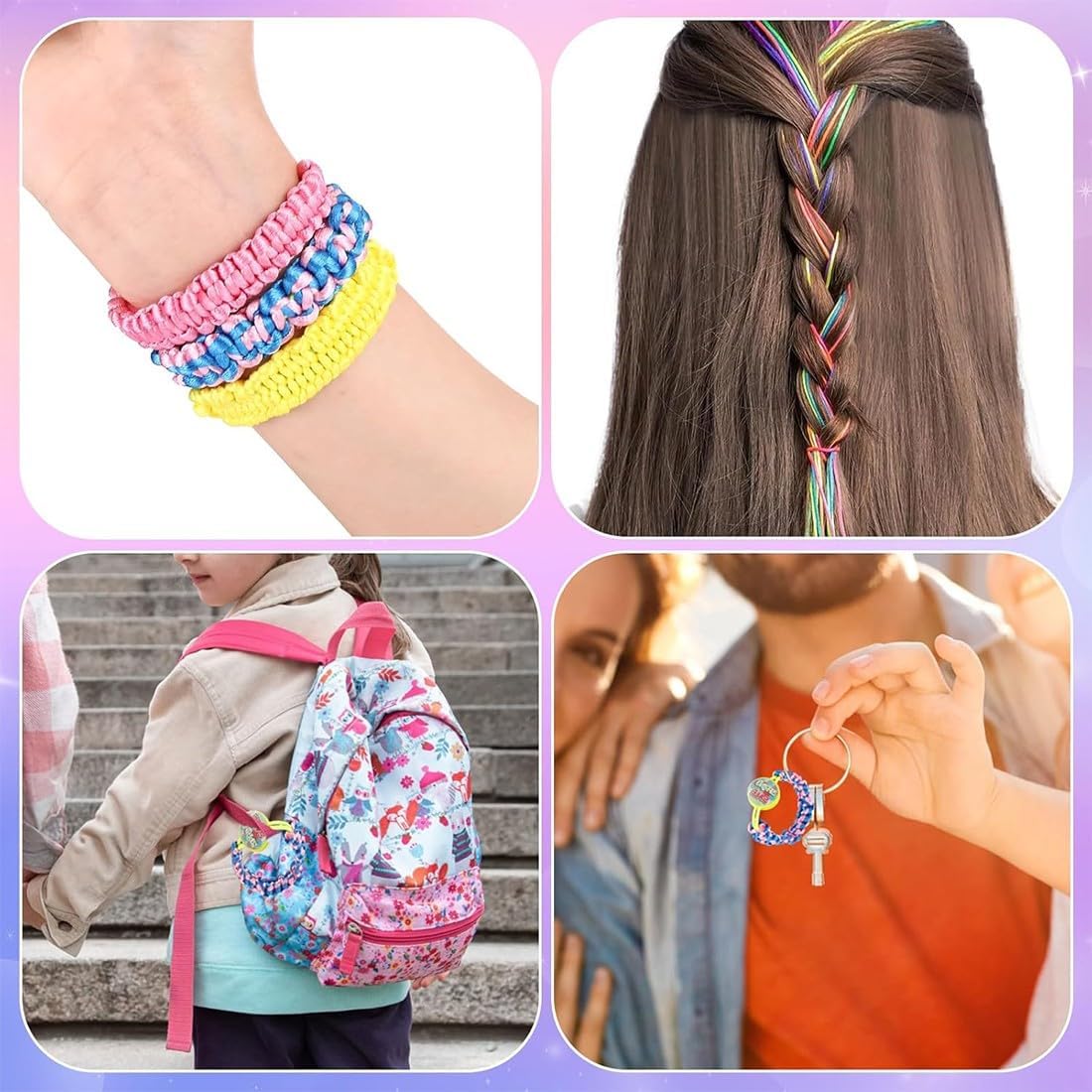 Idee fai da te: intrecciate braccialetti unici! Create il vostro stile! È possibile realizzare una varietà di nodi per adattarsi alle preferenze delle bambine. FACILE DA REALIZZARE: il kit per la creazione di braccialetti è dotato di un telaio con perni mobili per tenere il braccialetto in posizione e per separare e organizzare i fili. PROGETTO SIGNIFICATIVO: abbiamo progettato il kit per la creazione di braccialetti per avvicinare i bambini ai genitori e agli amici. KIT PER LA CREAZIONE DI BRACCIALETTI PER RAGAZZE: include telaio per braccialetti, filo per braccialetti, passanti espandibili, chiusura con bottoni, adesivi con motivi di moda, spille mobili e libretto di istruzioni passo-passo. GRANDE REGALO PER LE RAGAZZE: kit di artigianato fai-da-te ideale per il compleanno delle ragazze, il ritorno a scuola, i giochi in famiglia e le feste di Natale.