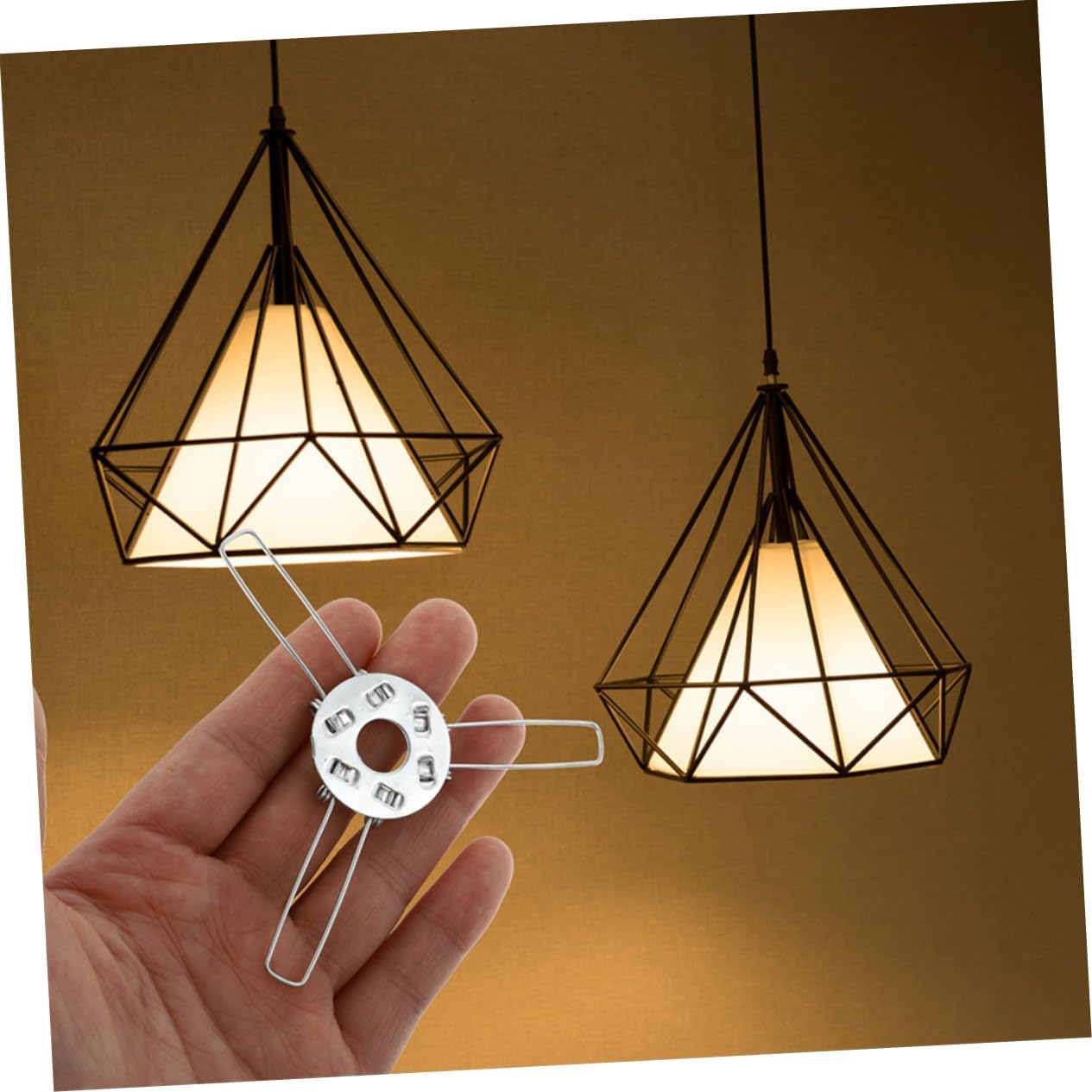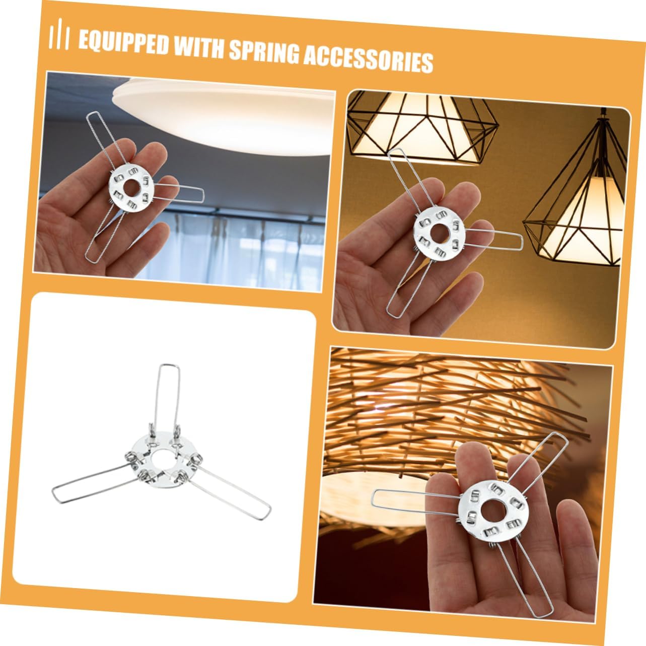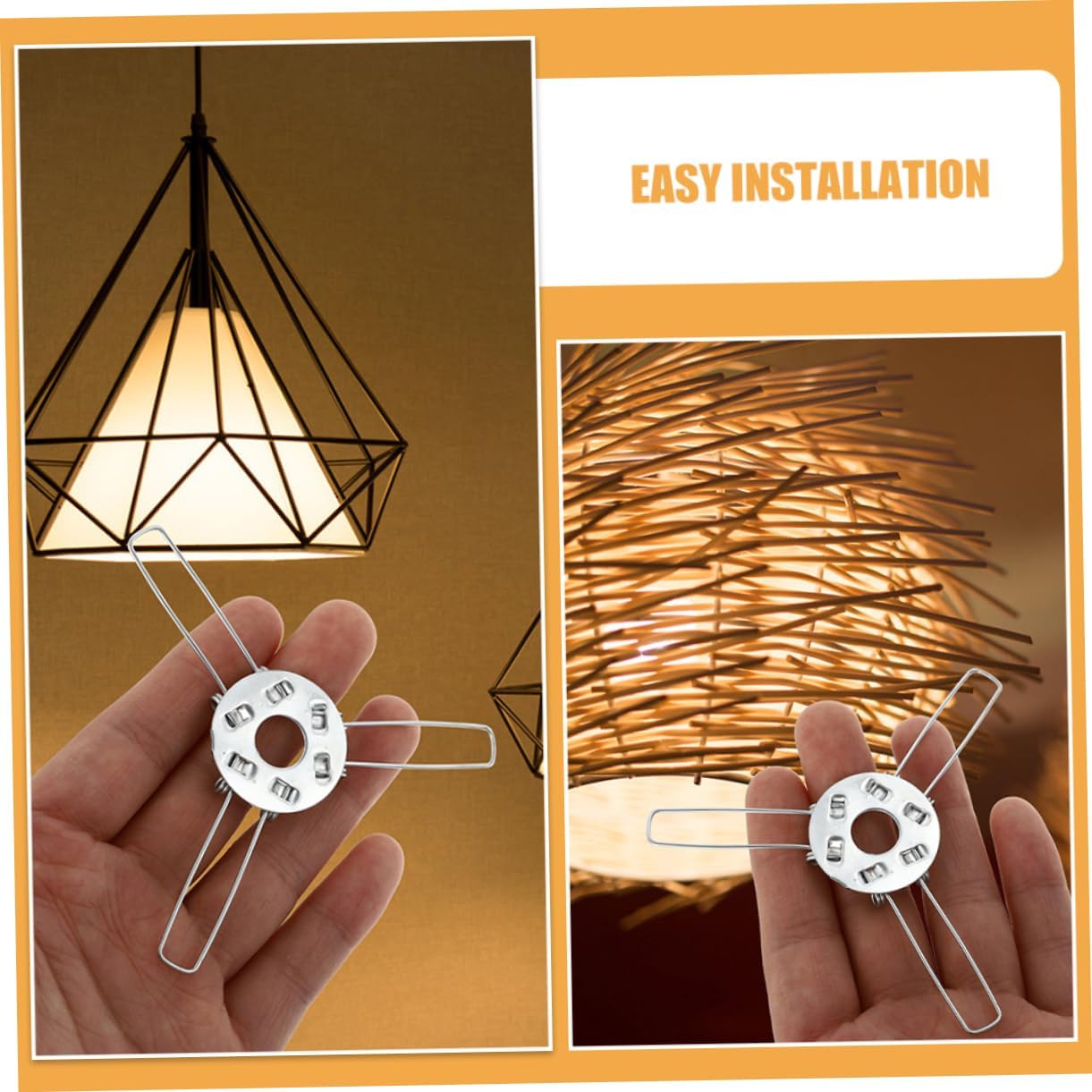 Connessione sicura: il design a tre punte garantisce un saldo fissaggio tra il portalampada e il paralume, prevenendone qualsiasi distacco accidentale Configurazione semplice: con i componenti a molla inclusi, il processo di installazione è semplice e consente una configurazione semplice e veloce di paralumi con sfera in rattan, bambù e Ampia di usi: ideale per vari paralumi in rattan, bambù e sfere di , questo prodotto è ideale per la decorazione domestica, sale da pranzo, spazi abitativi e camere da letto Miglioramento estetico: la clip del portalampada realizzata non solo fornisce stabilità ma aggiunge anche fascino visivo all'apparecchio di illuminazione Durevolezza di : costruito con materiali solidi, garantendo resistenza e una durata di vita prolungata
