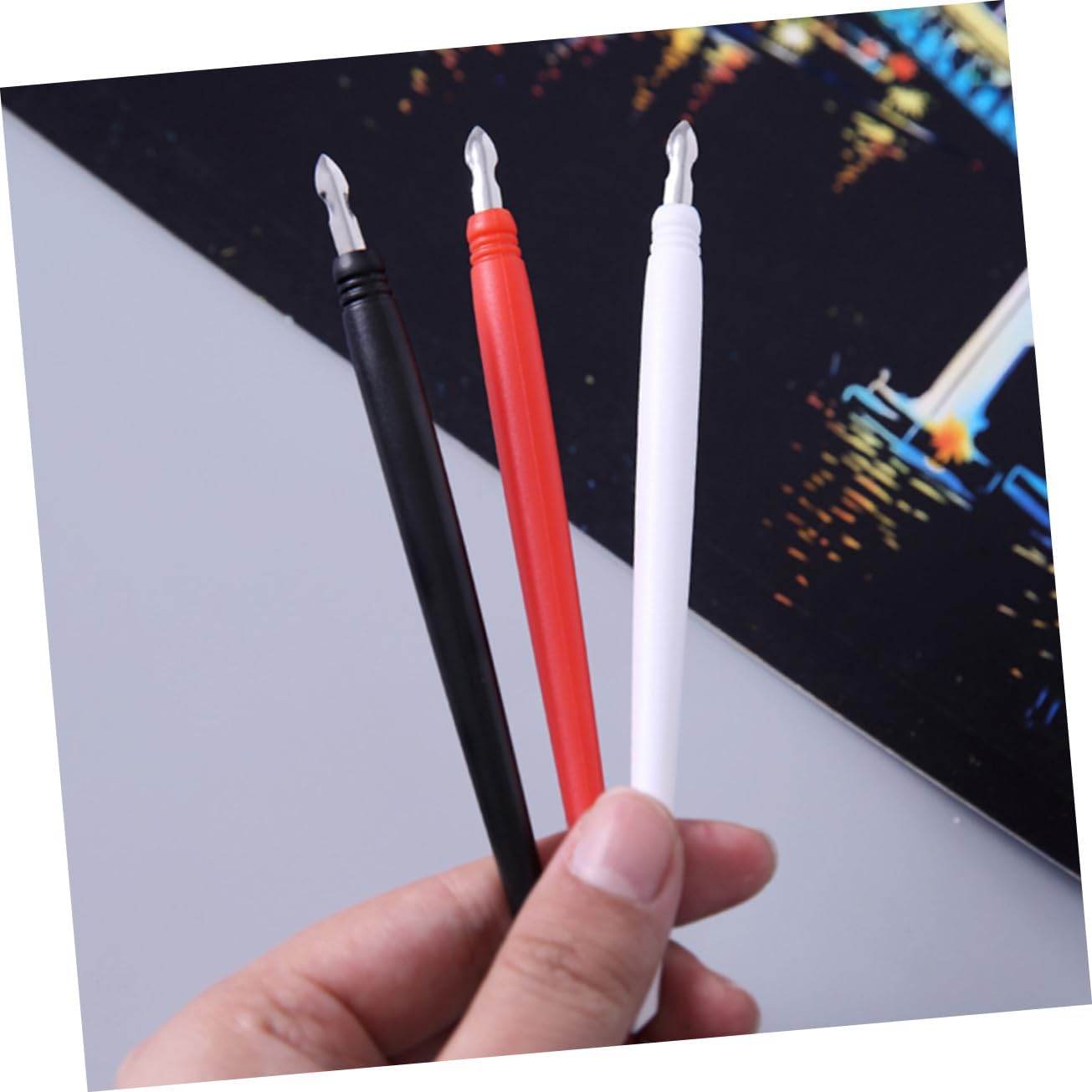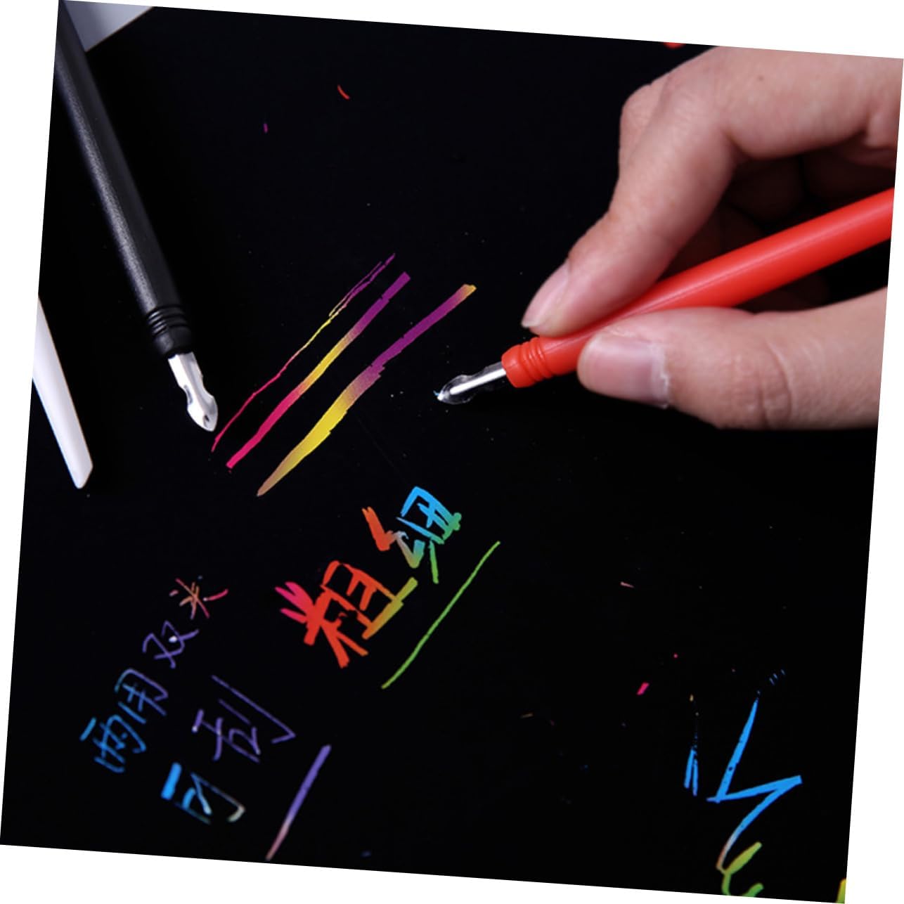 Strumento di disegno a : la punta della penna è relativamente sottile, in modo da poter disegnare il motivo con attenzione senza rovinarlo, graffiando Strumento per graffiare e dipingere: il design della penna per graffiare rende i graffi più facili, penna per graffiare Pennarelli da disegno: adatti per progetti fai da te con una varietà di combinazioni di e stili, pennarelli da grattare Pennarelli: è uno strumento speciale molto pratico per la pittura a , penne per disegno e raschiatura Penna per pittura: design a doppia punta, la punta può essere utilizzata per disegni dettagliati e viene fornita anche per proteggere le penne per pittura