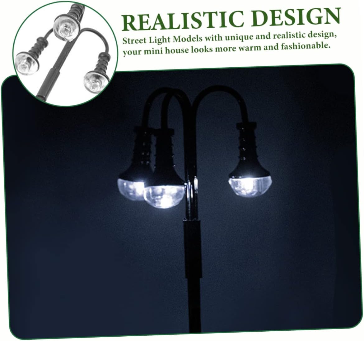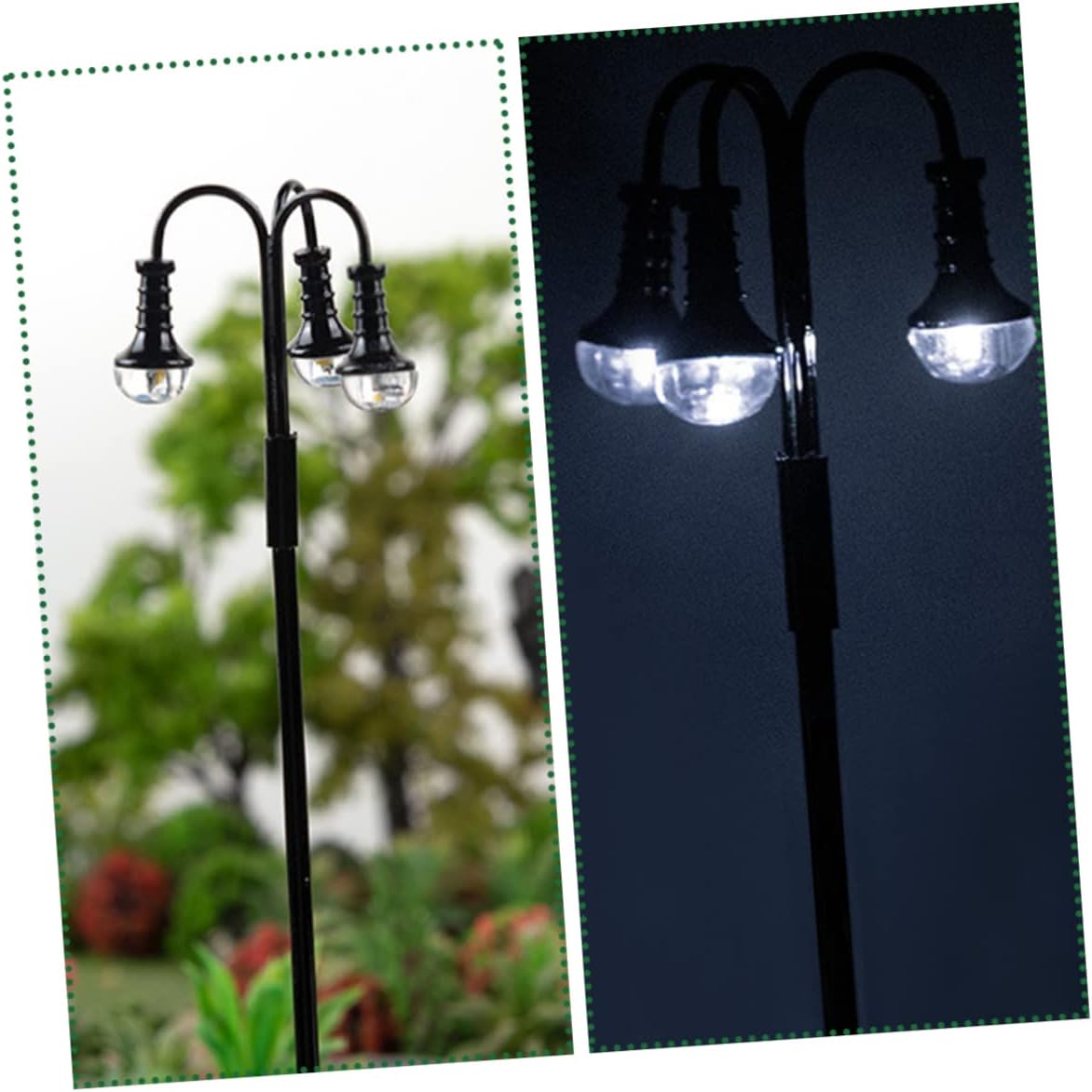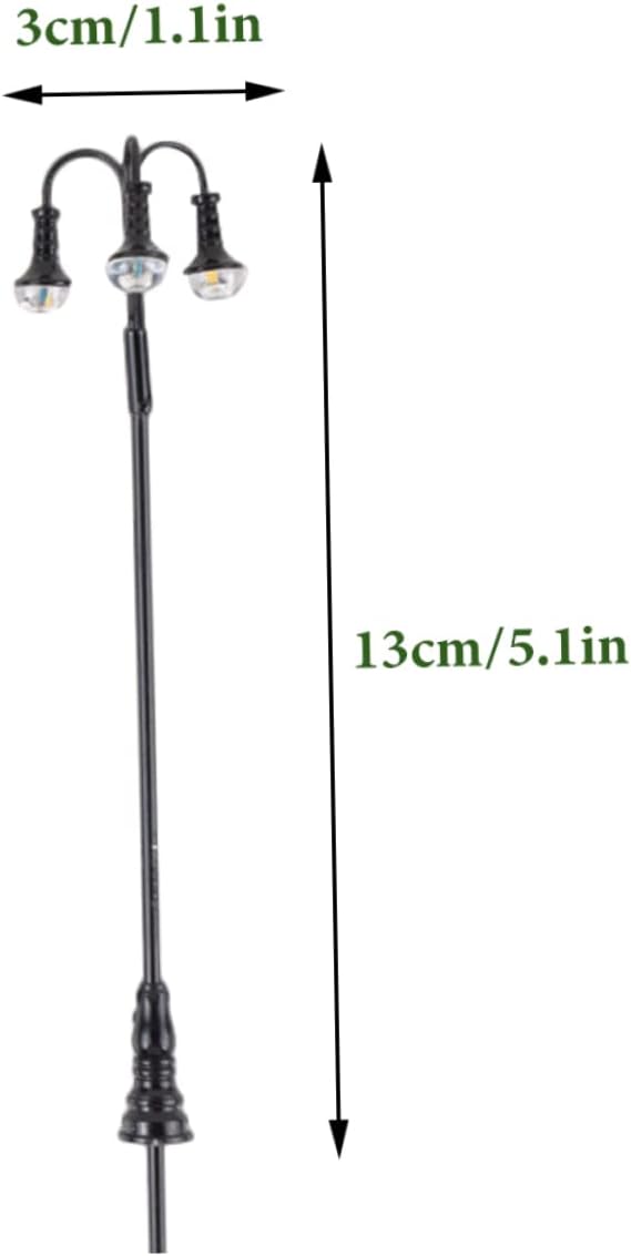 Modellino di lampione ferroviario: questo modello di lampione stradale in miniatura è un'opzione fantastica per te o per la tua famiglia che ama i mini lavori manuali e le lampade per layout ferroviario Ornamento lampione stradale: il modello di lampione stradale è composto da modelli di lampioni stradali in miniatura, molto pratici per la decorazione. Mini lampioni stradali: questo modello mini lampione può essere l'ornamento decorativo per il tuo modello di interni di mini casa, luci ferroviarie.