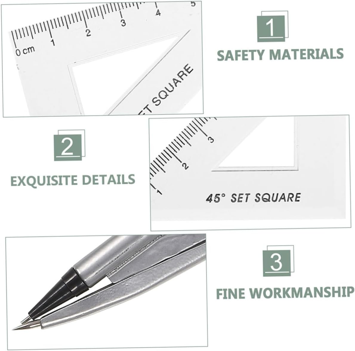 Set completo di compasso: questo set include più righelli e un goniometro, fornendo una soluzione completa per tutte le tue esigenze di disegno e misurazione, righello per matematica geometrica, compasso per matematica per geometria Gomma integrata: con una gomma integrata, questo set semplifica la correzione degli errori, assicurando che i tuoi disegni rimangano puliti e precisi, compasso matematica, materiale scolastico Strumenti di disegno versatili: questo set completo di compasso e righello include tutto il necessario per un disegno e una stesura precisi, rendendolo ideale sia per studenti che per professionisti, compassi per geometria, strumenti di disegno Gomma incorporata: dotato di una gomma incorporata, questo set ti consente di correggere facilmente gli errori, assicurandoti che i tuoi disegni siano sempre precisi e puliti, kit di geometria, compasso matematico E affidabile: questo set è progettato per durare, rendendolo una scelta affidabile per l'uso quotidiano in vari ambienti, goniometro per lavorazione del legno, bussola per disegno