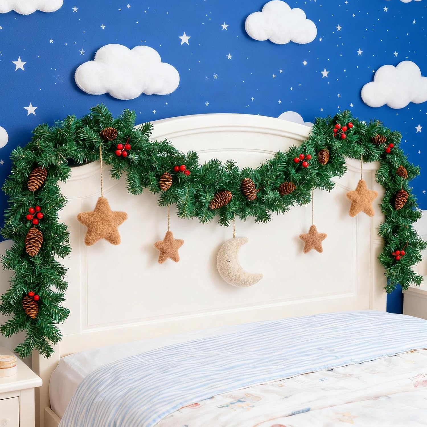 Decorazione festiva: questa ghirlanda di Natale features fake green pine rames, paired with red berries and pine cones, for a real istic design that enhances the fun, festive atmosphere in case or parties, adding warmth and charm to any setting during the holiday season Area di copertura estesa: The Christmas garland for mantle features a 2.7-meter vine design that covers a large area, ens uring your mantelpiece look festive and full while enhancing holiday decor in living rooms or hall Ampia gamma di applicazioni: questo garland all'aperto serve come decorazione per portare warmth e arm a varie aree come fireplace, portici, bedrooms, tavoli da pranzo e pareti, ensuring versatile use for holiday-themed environments Grande materiale: Featuring a robust design, this Realistic Christmas Garland withstands frequent handling and harsh conditi ons; crafted with waterproof red berries and pine cones, it retains its charm through rain or shine, perfect for creating cheerful holiday scenes indoors or outdoors; enhance your celeations with decorations Convenient to Clean: These Christmas garlands allow users to maintain their beauty by wiping with a dry cloth, and store th em efficiently by folding, offering a convenient way to preserve holiday cheer without compromising on elegance or practicality